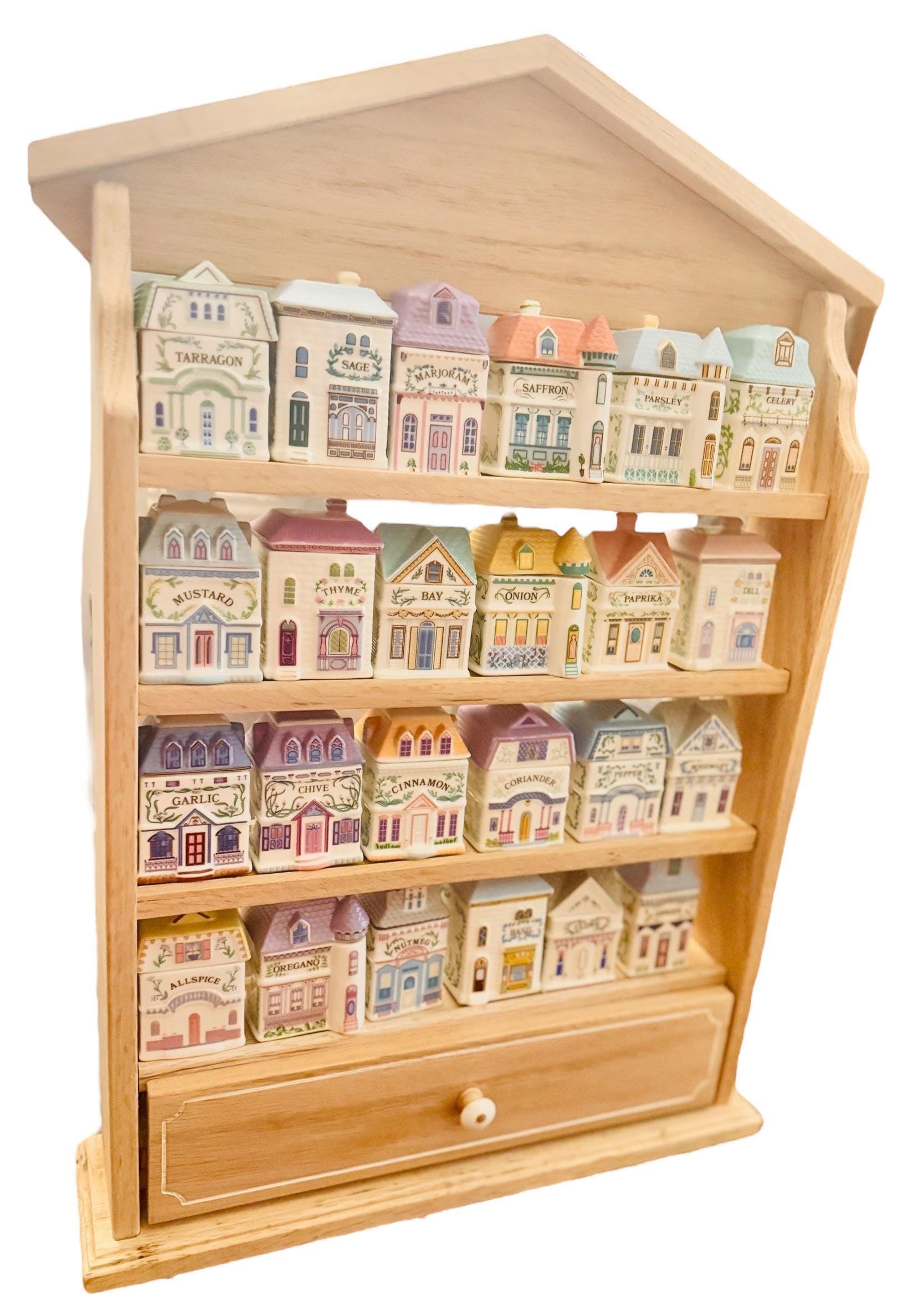 Rare Vintage Lenox inspired Spice Village β wooden wall rack for your Spice Jars - perfectly customized and handmade with love, inspired by the Lenox Spice Village Set. This rack is customized for 2025 Lenox spice jars to perfectly house all the 24 jars (Does not come with the jars.)