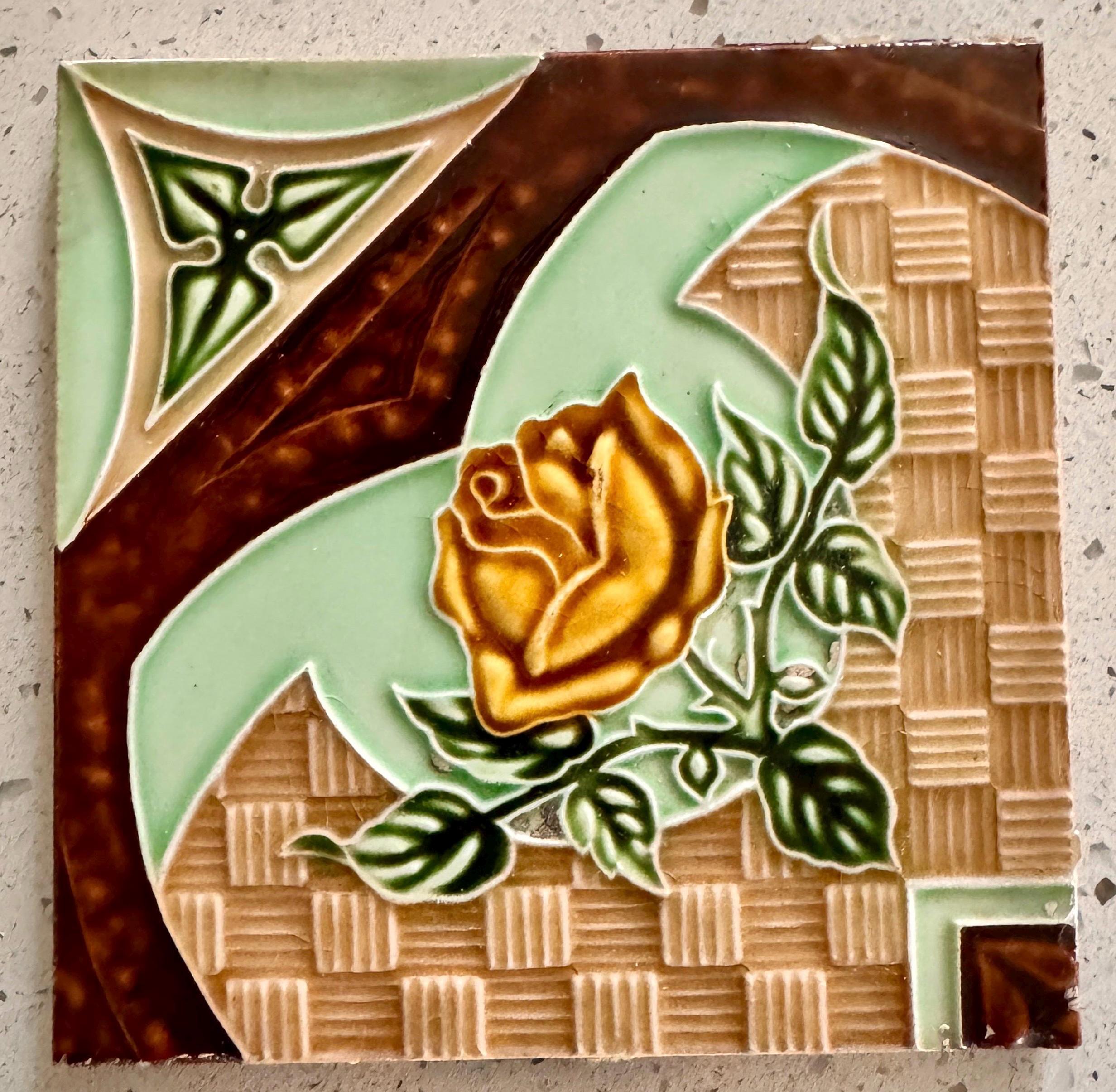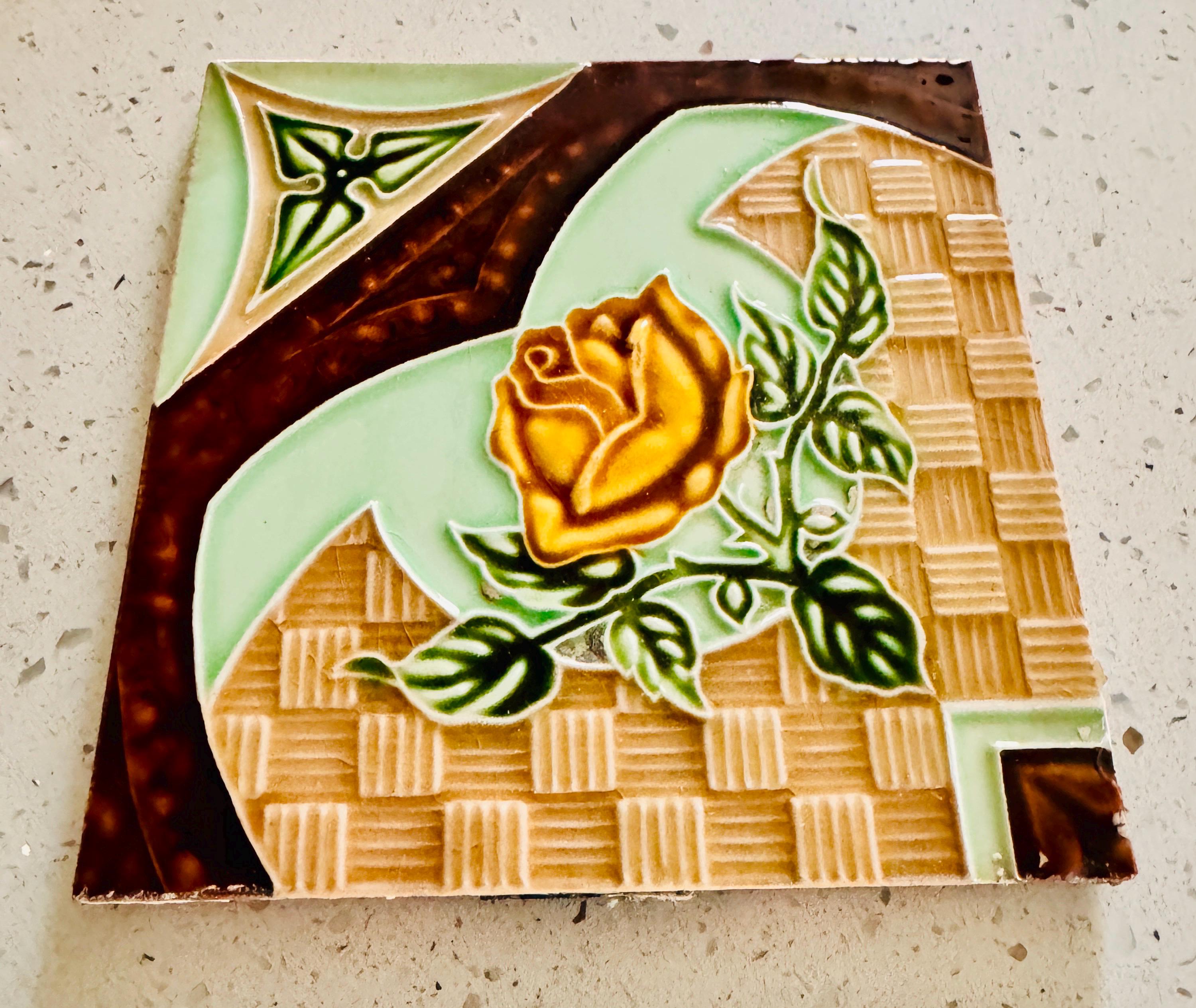 Vintage Old Majolica Tile Rose Flowers Patterns statue of liberty Style Mark.