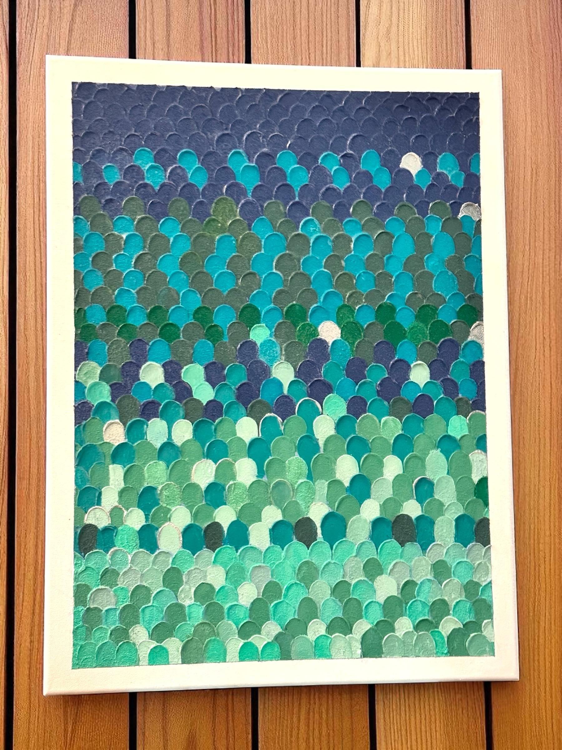 Silence of the ocean- It conjures a stillness that’s not truly silent, but layered with whispers: the hush of waves, the breath of salt air, the distant rhythm of life beneath the surface. I’ve used subtle layers to capture the essence of colors of the mighty ocean.