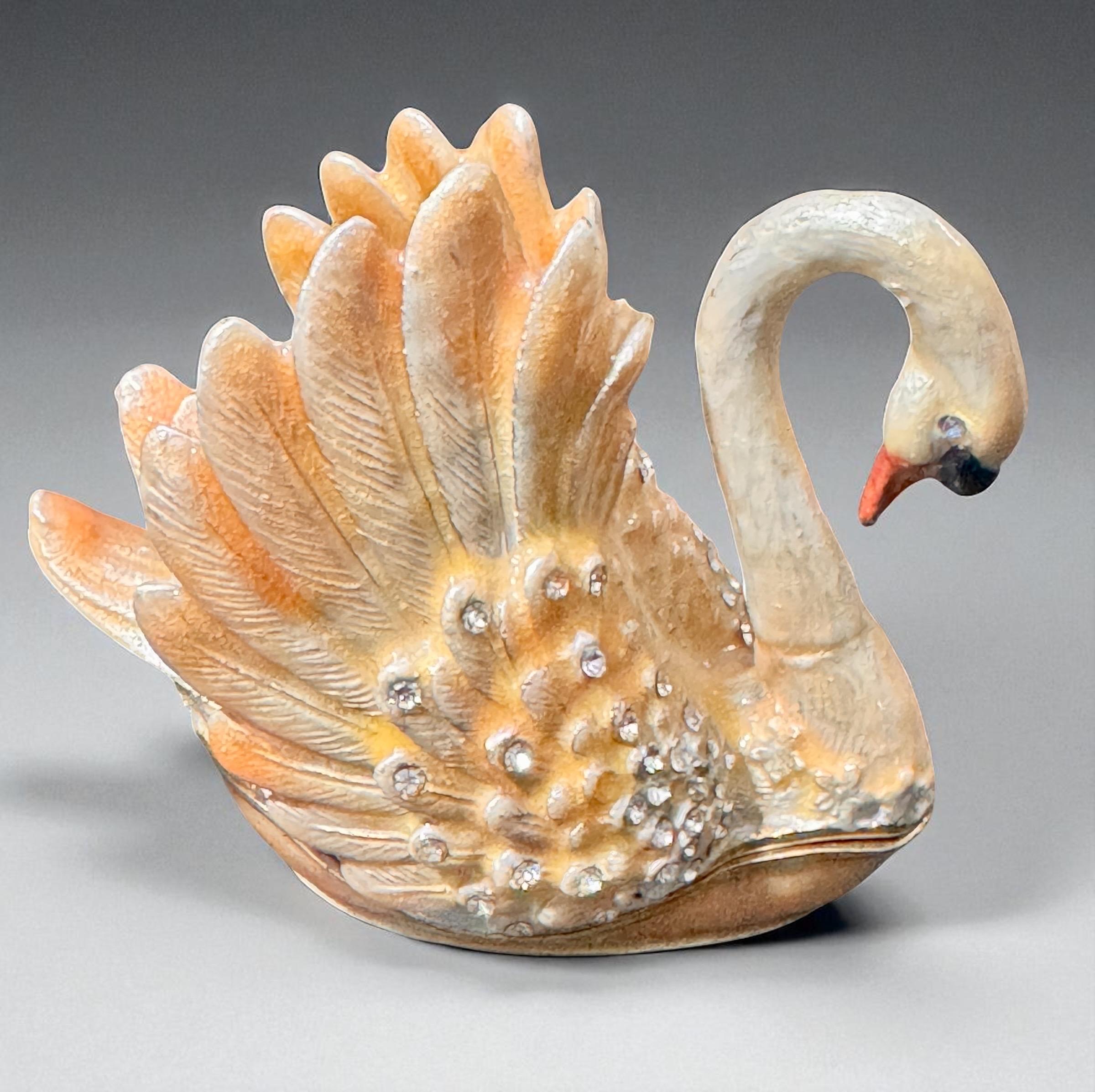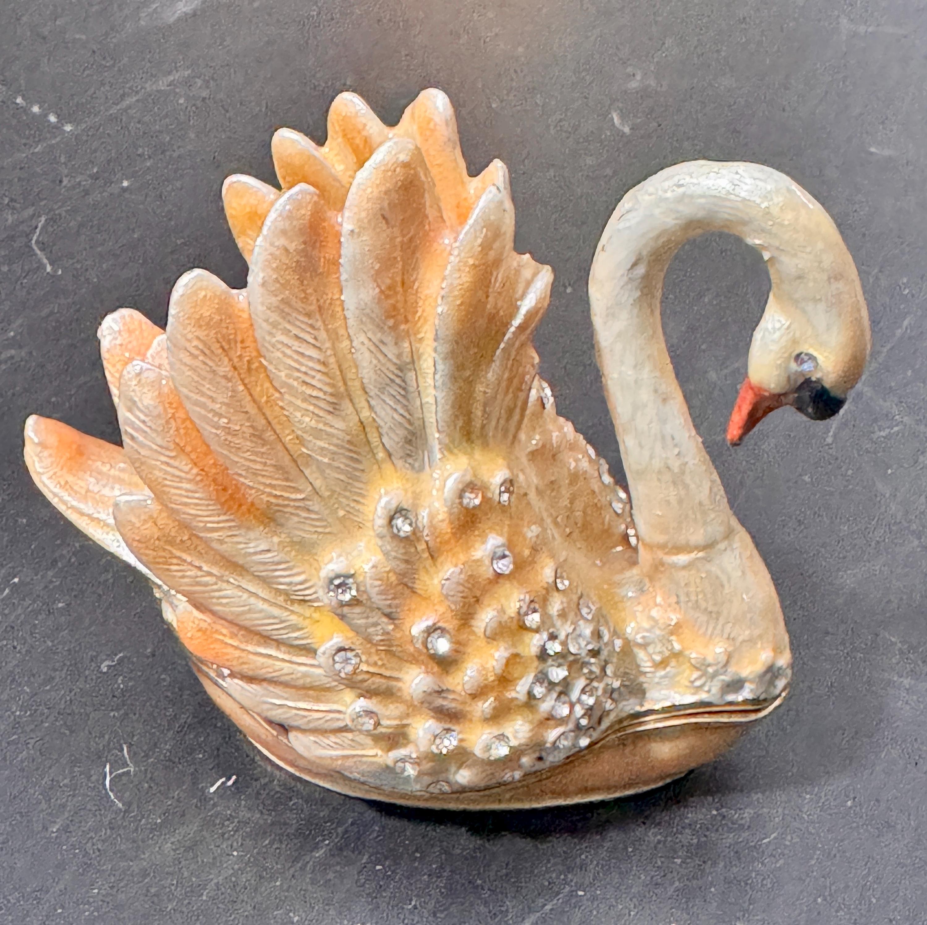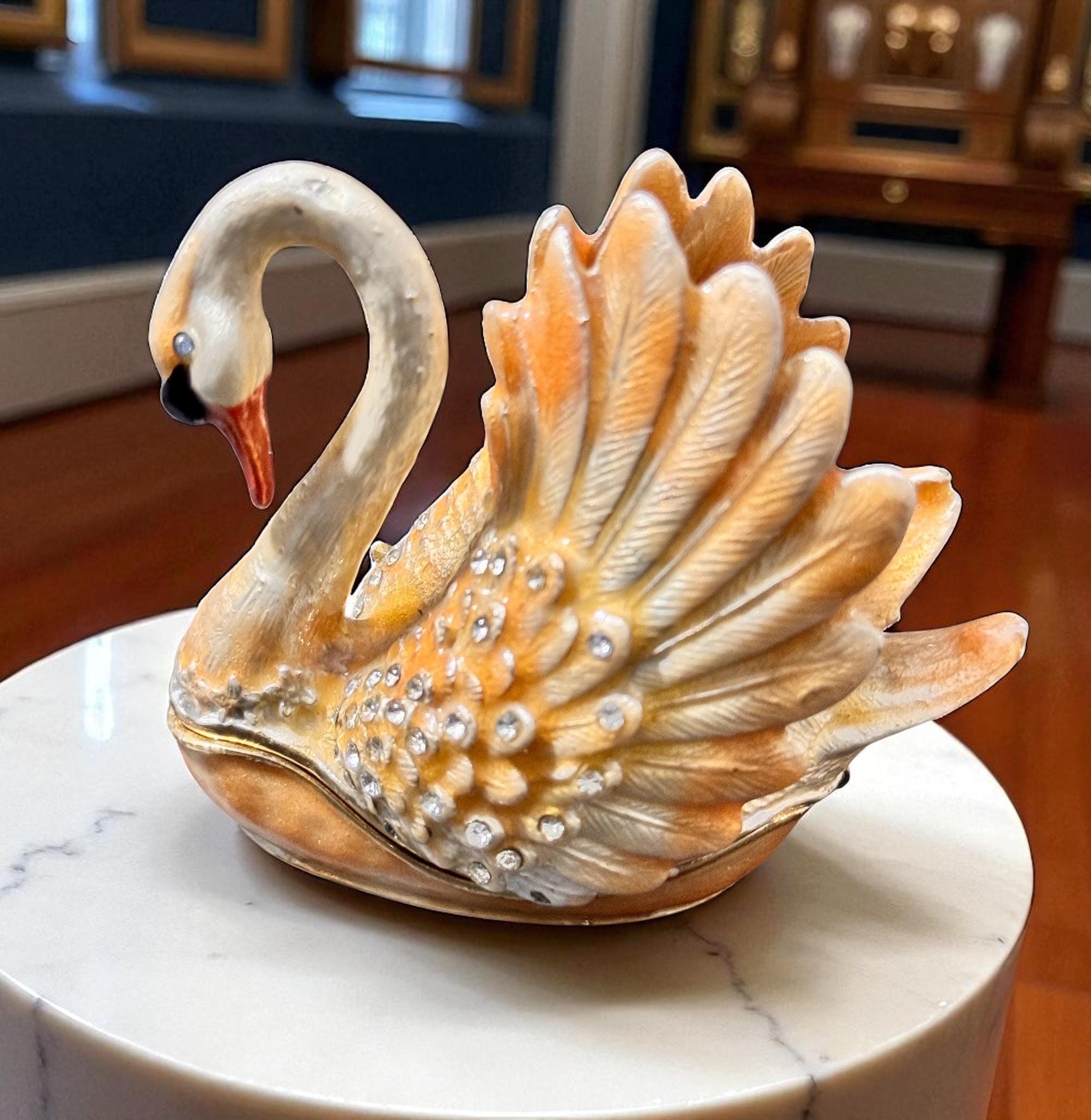 * Vibrant Display: Handcrafted swan showcasing intricate enamel work with vivid colors and eye-catching details. * Very beautifully made using high quality metal & bejewelled with stones. * Size - Height-8 Cms. Width-8 Cms. Length (approx)-5 Cms. Weight-180 Grams Approx. * This Bejeweled Swan Showpiece Has 1 secret wish compartment on the top.Opening the compartments reveals a secret compartment (magnetic) where one can place written desires in hopes of having them fulfilled. * Premium Alloy Materials: The trinket box made by eco-friendly alloy and high quality crystals, nickel-free and lead-free, non-toxic and safe * Handmade Craft: The jewelry box is thick plated, enameled with different colors, and mosaic with crystals- detailed, vivid and realistic, last for long time * Home Decorations:Very suitable for home decoration;Great Gifts: The trinket box come in a nice gift box, for the one who love wearing jewelry and love animals, wonderful present for wedding, anniversaries, birthday, holidays, or any other gift giving occasions;