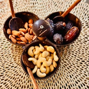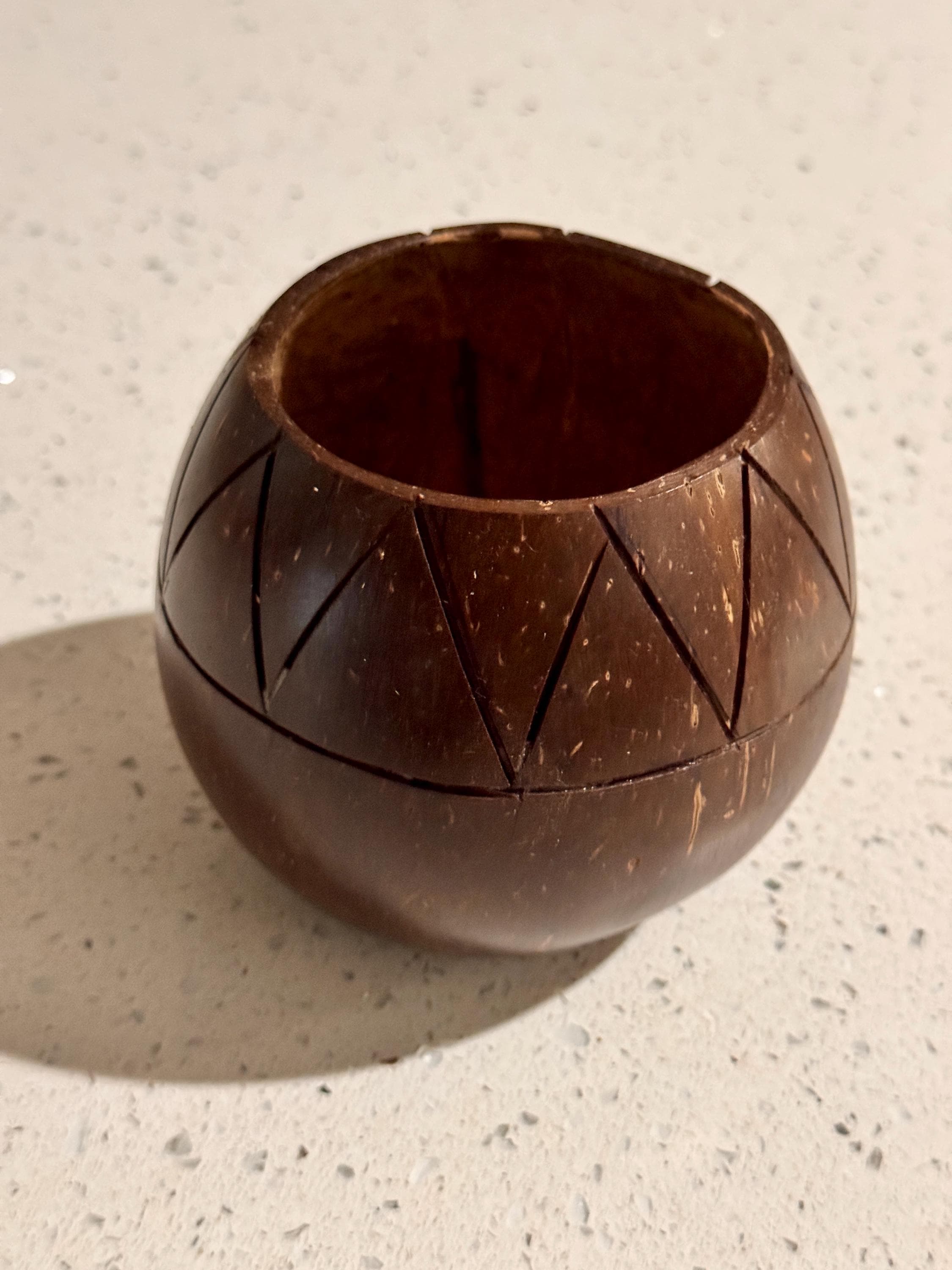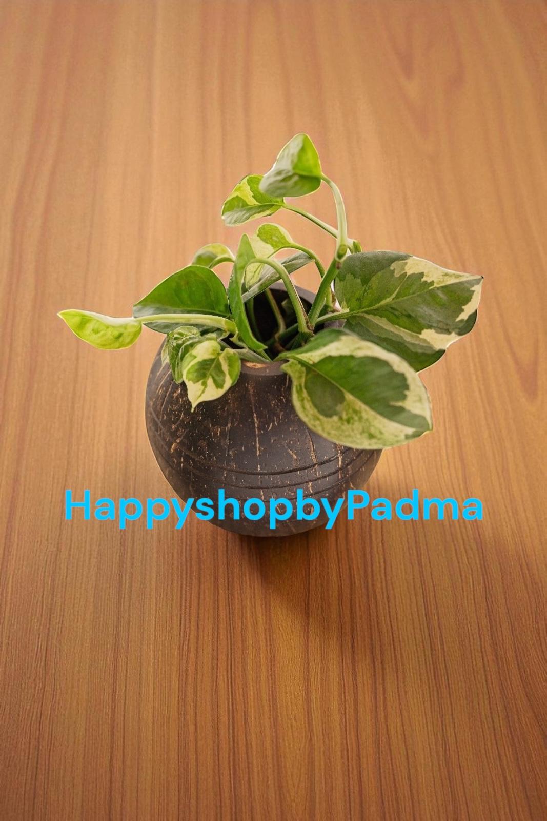 • 1 Planter Pot • Pot - 5(L)X5(W)X5H) in • Weight – 0.40lb Coconut Shell Planter Pot – Handcrafted & Eco-Friendly Add a touch of rustic charm to your space with this handcrafted planter made from upcycled coconut shells. Featuring a unique three-line design, each pot showcases the natural grain and texture of the shell — no two are exactly alike. Perfect for succulents, herbs, small cacti, or decorative arrangements, this eco-friendly planter is ideal for indoor gardening and earthy home décor. Sustainably sourced and skillfully crafted by artisans, it’s a beautiful way to green your space while embracing conscious living.