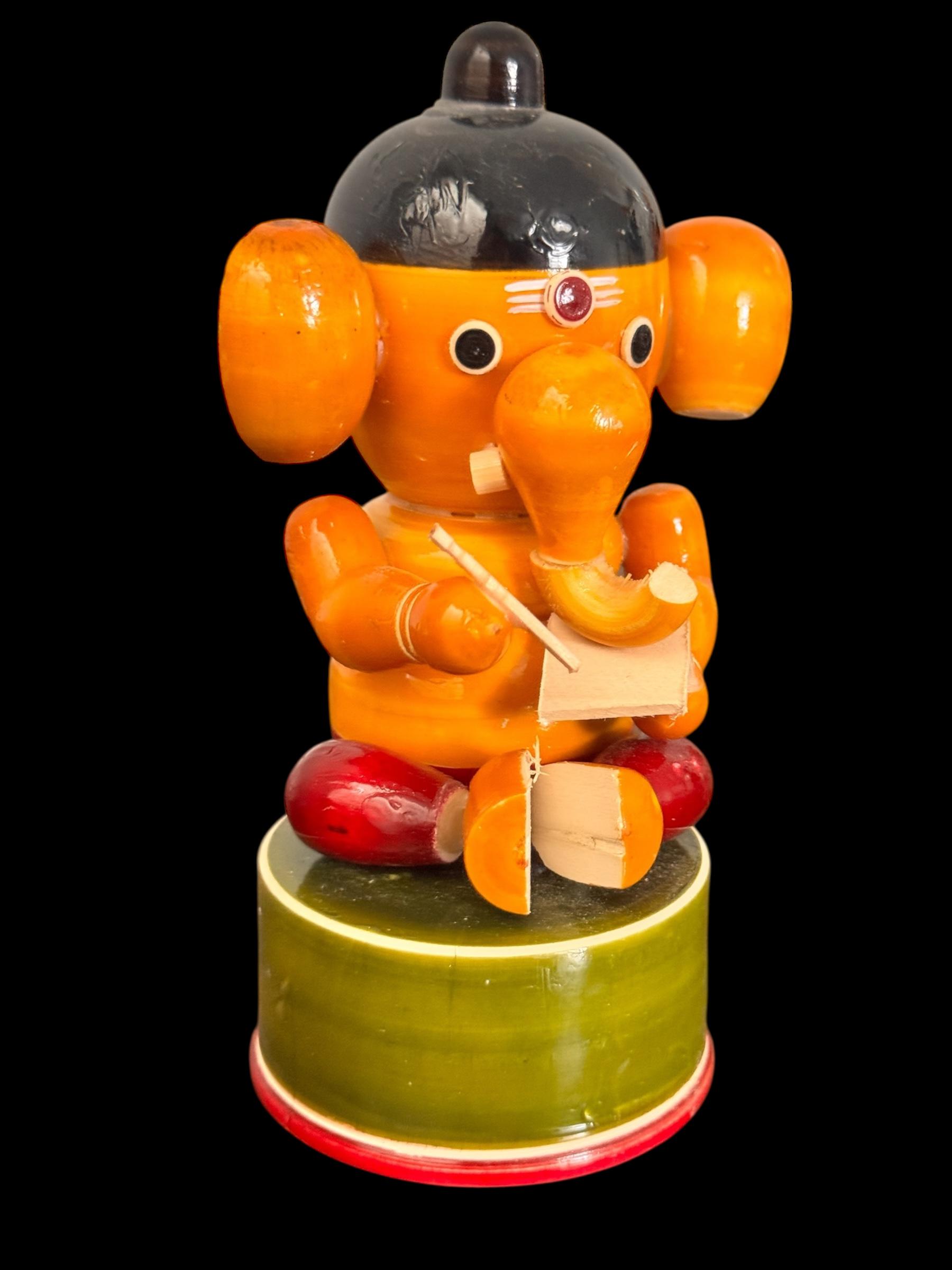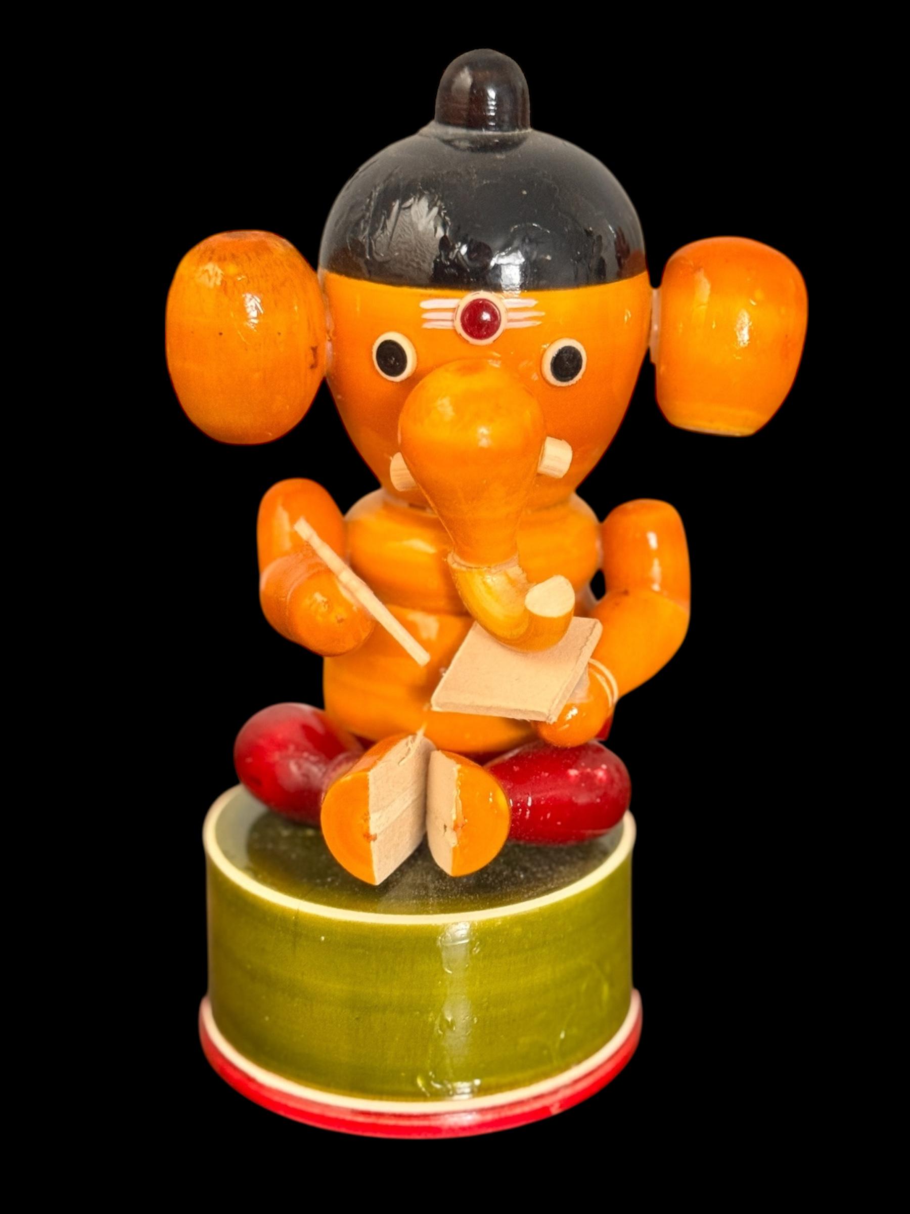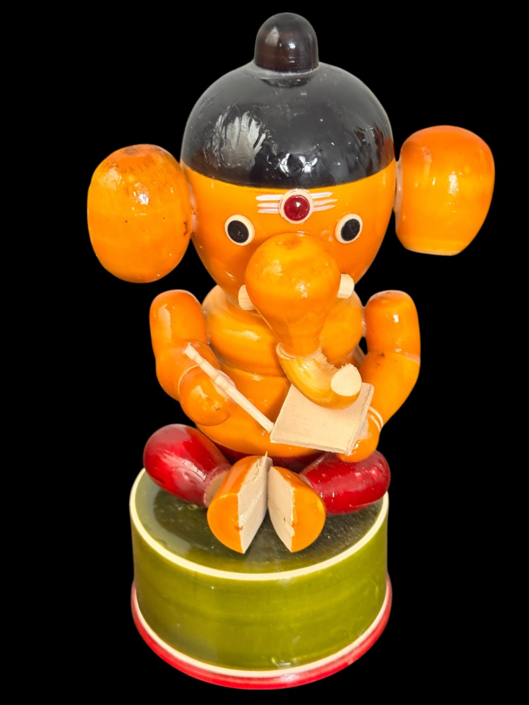 Seated in serene contemplation, Lord Ganesha—as Vidya Ganapathy—is depicted writing a book, symbolizing the pursuit of knowledge and learning. Revered as the treasurer of wisdom, this idol is often placed to inspire children and learners to embrace education with devotion and joy. The primary color—yellow—is derived from turmeric, radiating purity, intellect, and auspiciousness.