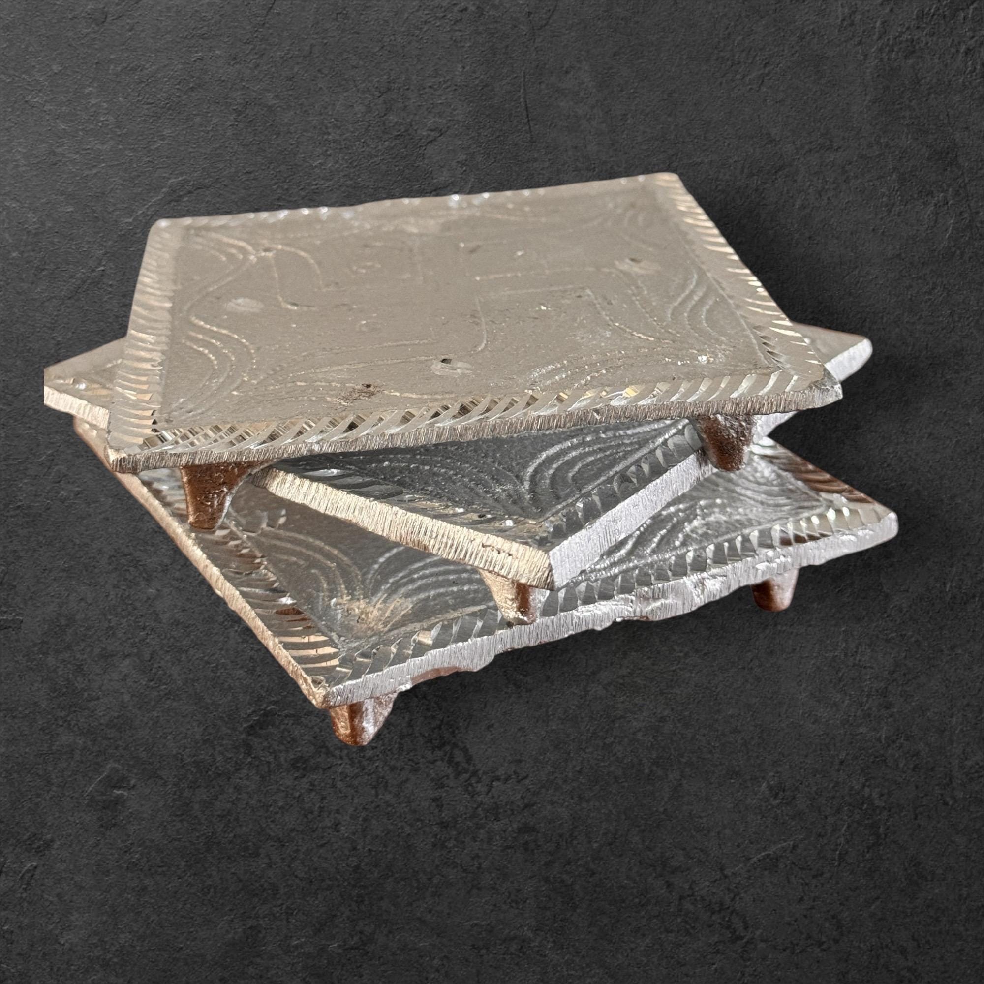A beautiful base to keep your idols, Diya’s or Deepam and for a variety of purposes. It’s made of white metal which keeps its bright sheen for a long time. Hand washable with just water and mild soap. Perfect for home or puja or housewarming gift.