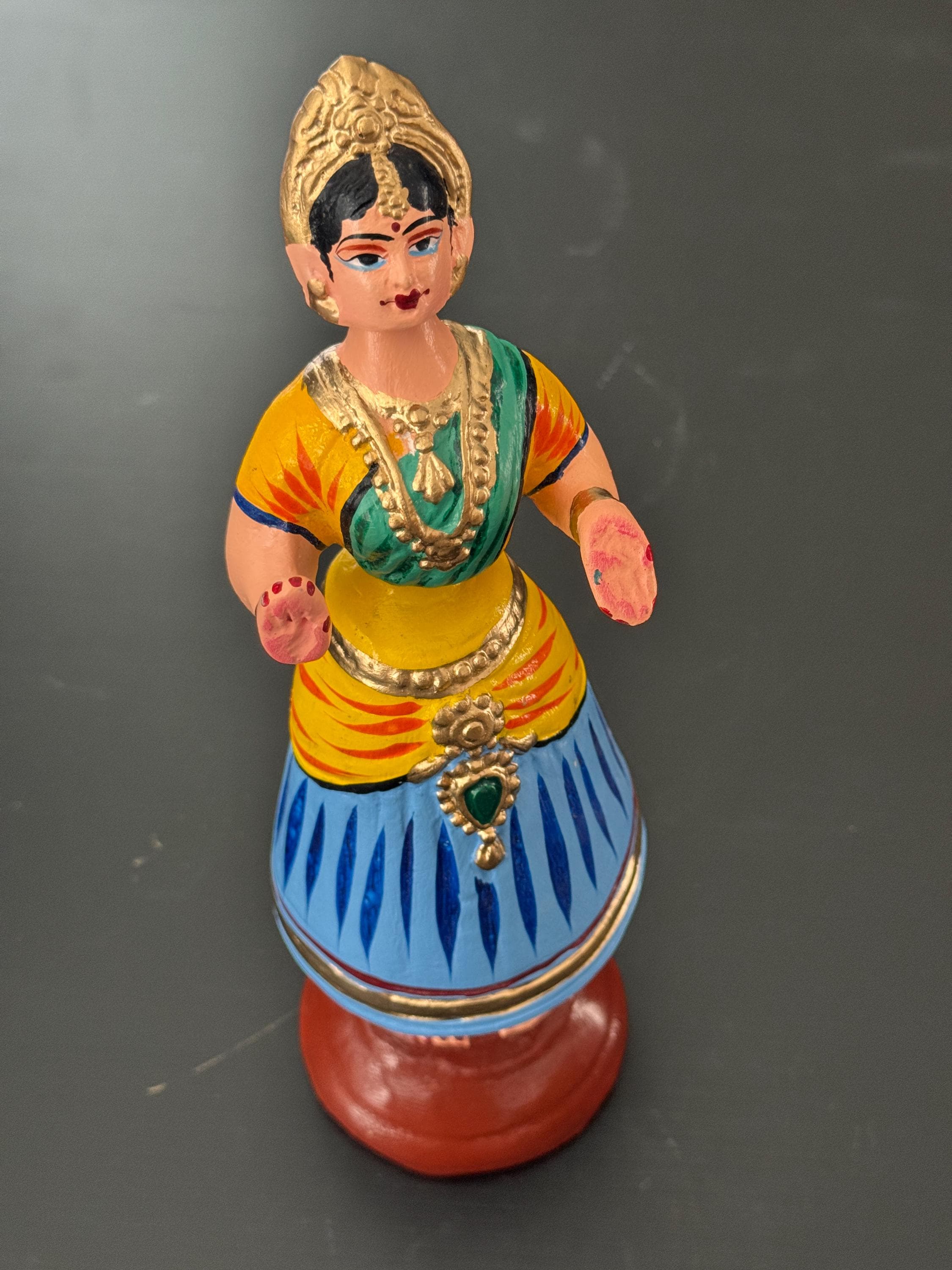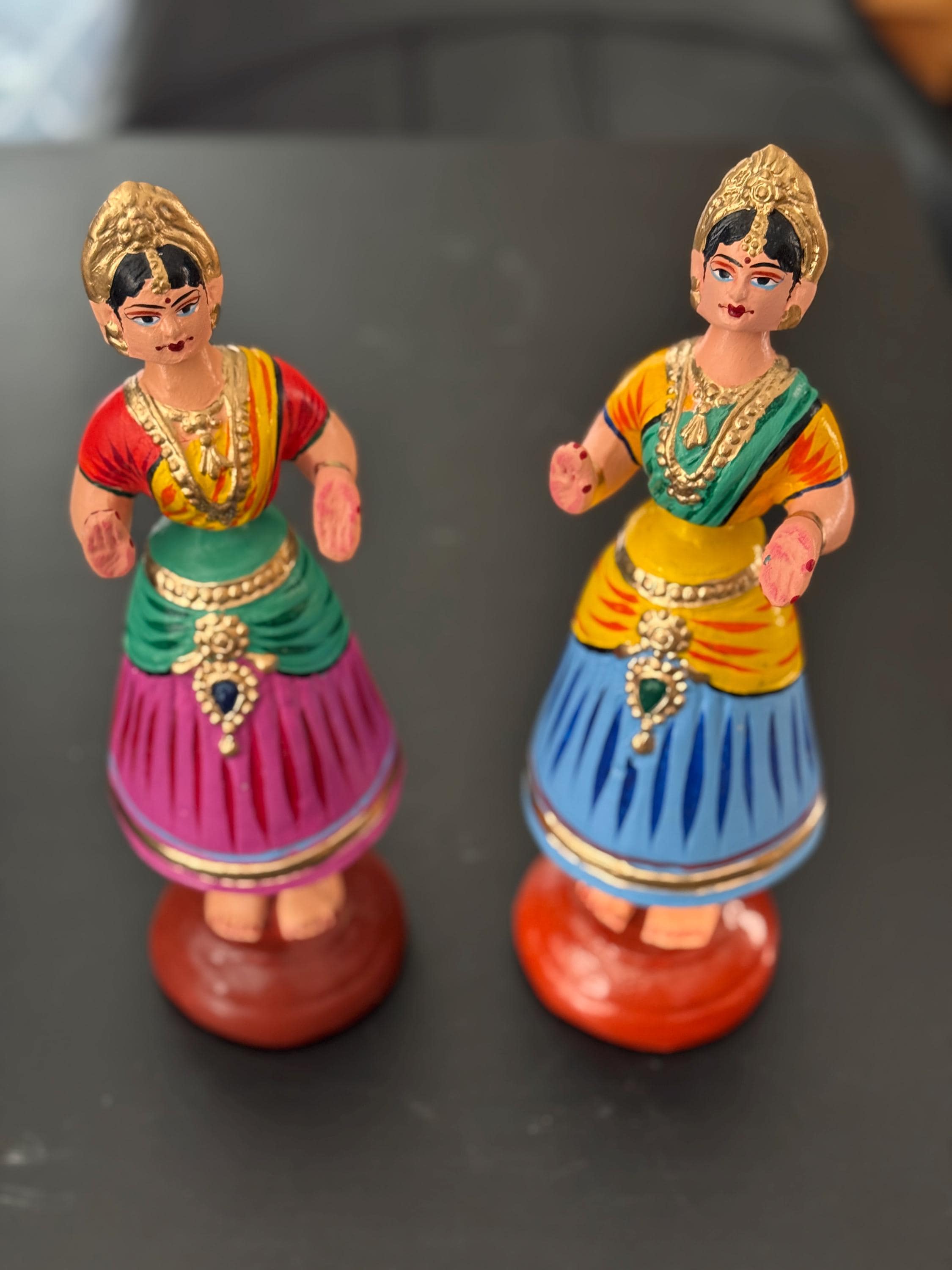 Expertly crafted Paper Mache dolls. Listing is for one dancing doll. Add a touch of culture and beauty to your home with our 15-inch Thanjavur Dancing Doll. Handcrafted in the tradition of Thanjavur art, this doll is a stunning piece of home decor and makes for a unique and thoughtful gift. Perfect for those who appreciate traditional craftsmanship and design.