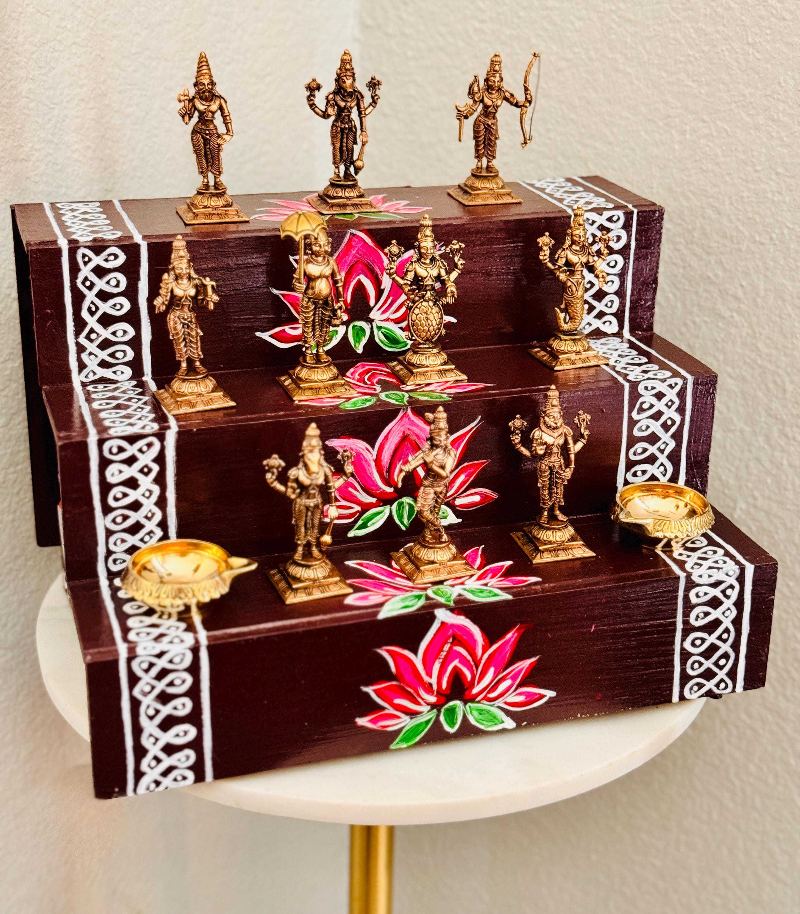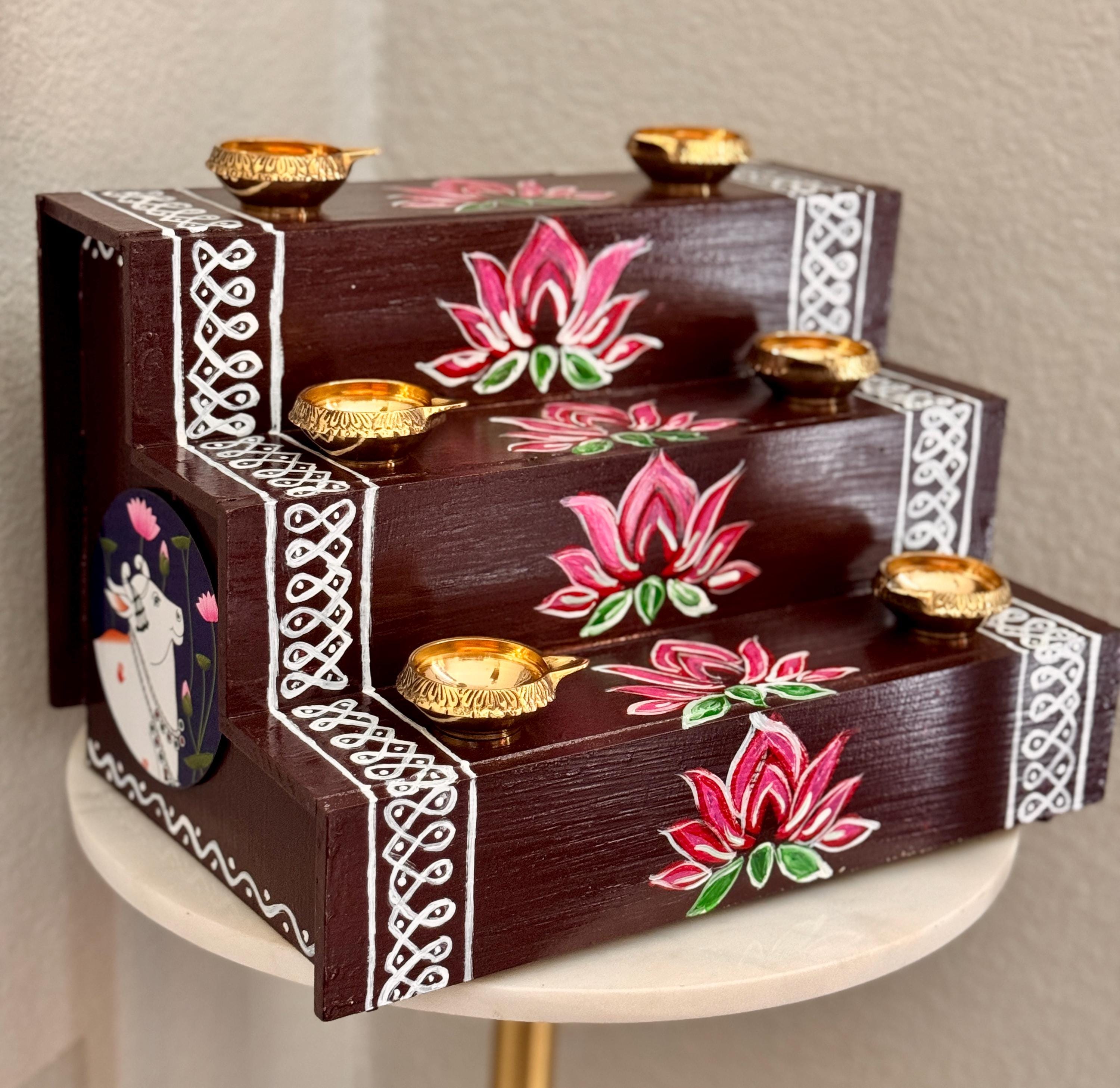 Handcrafted Traditional Padi/ Steps - 3 step design for celebrating Diwali/Dusshera / Navratri festival or puja/home decor.