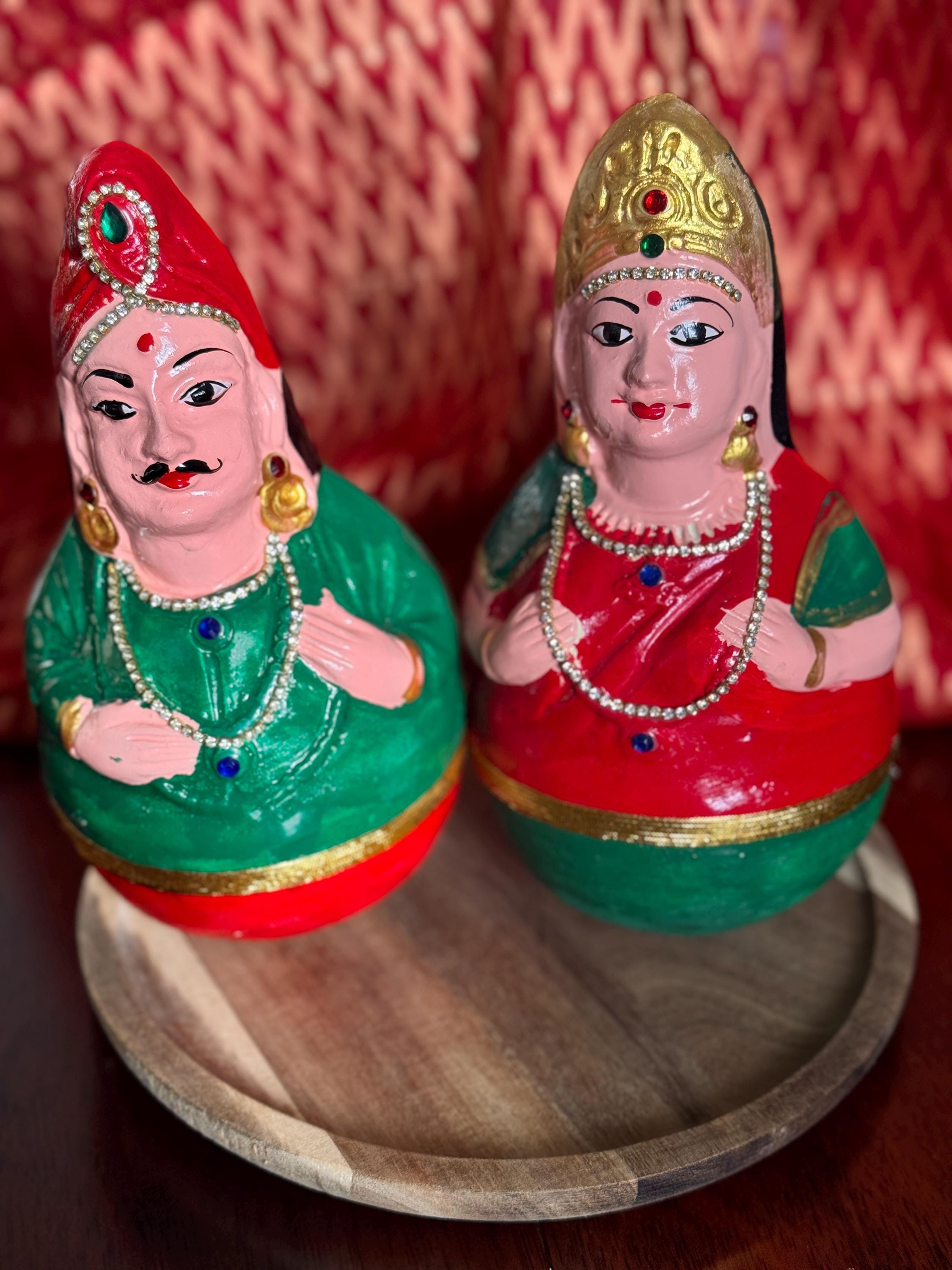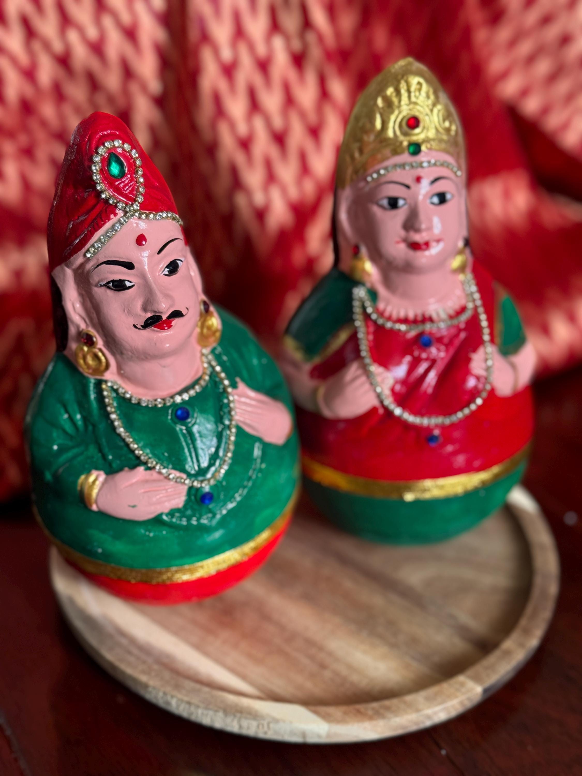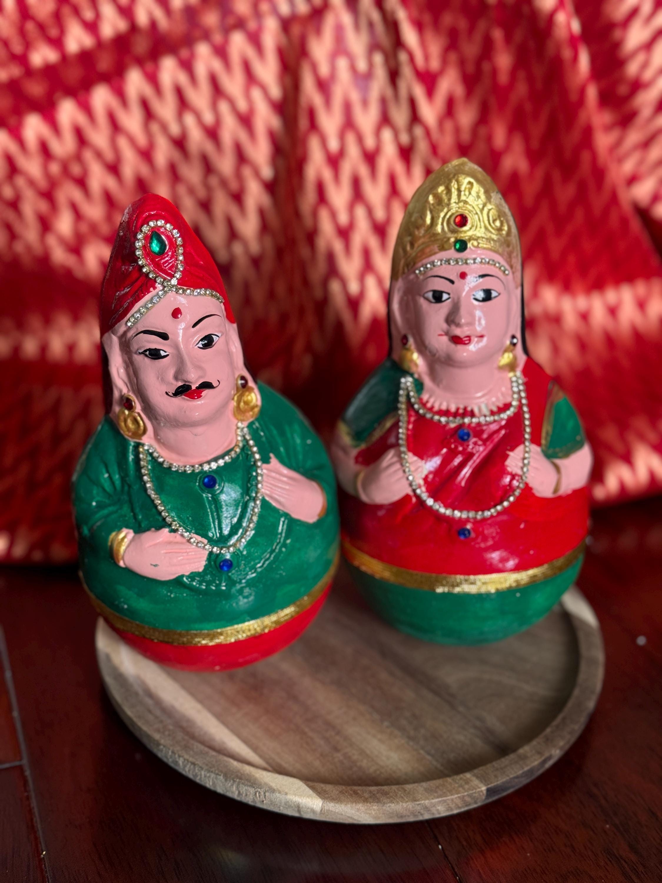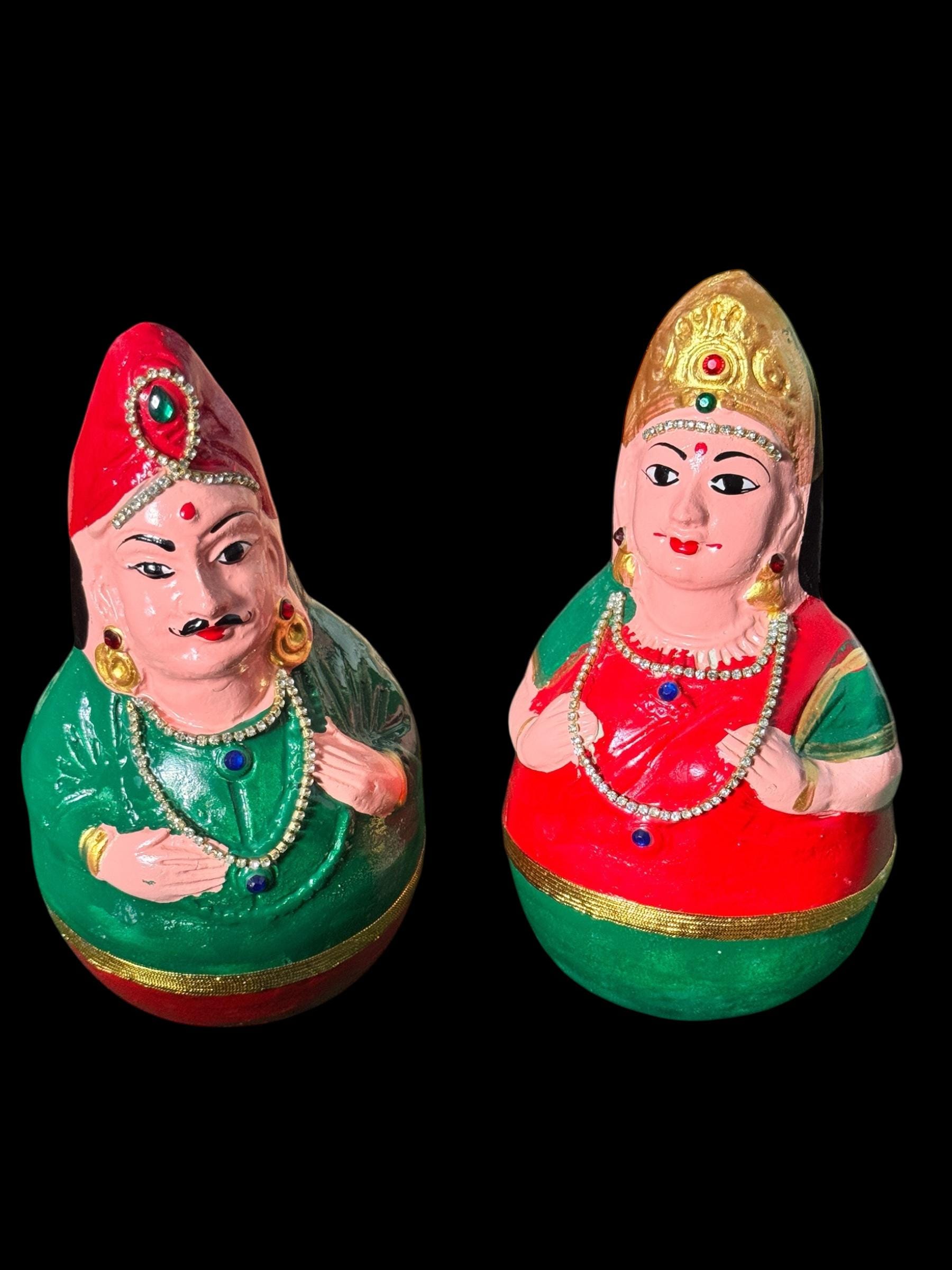 Ancient Thanjavur dolls - created using science of gravity. These clay sculptures to stand back when moved just by using the force of gravity, combined with wood Pulp and Clay. One of the best gifts for curious young minds and brings back a sense of nostalgia to all others, who would have played with similar toys back in childhood.