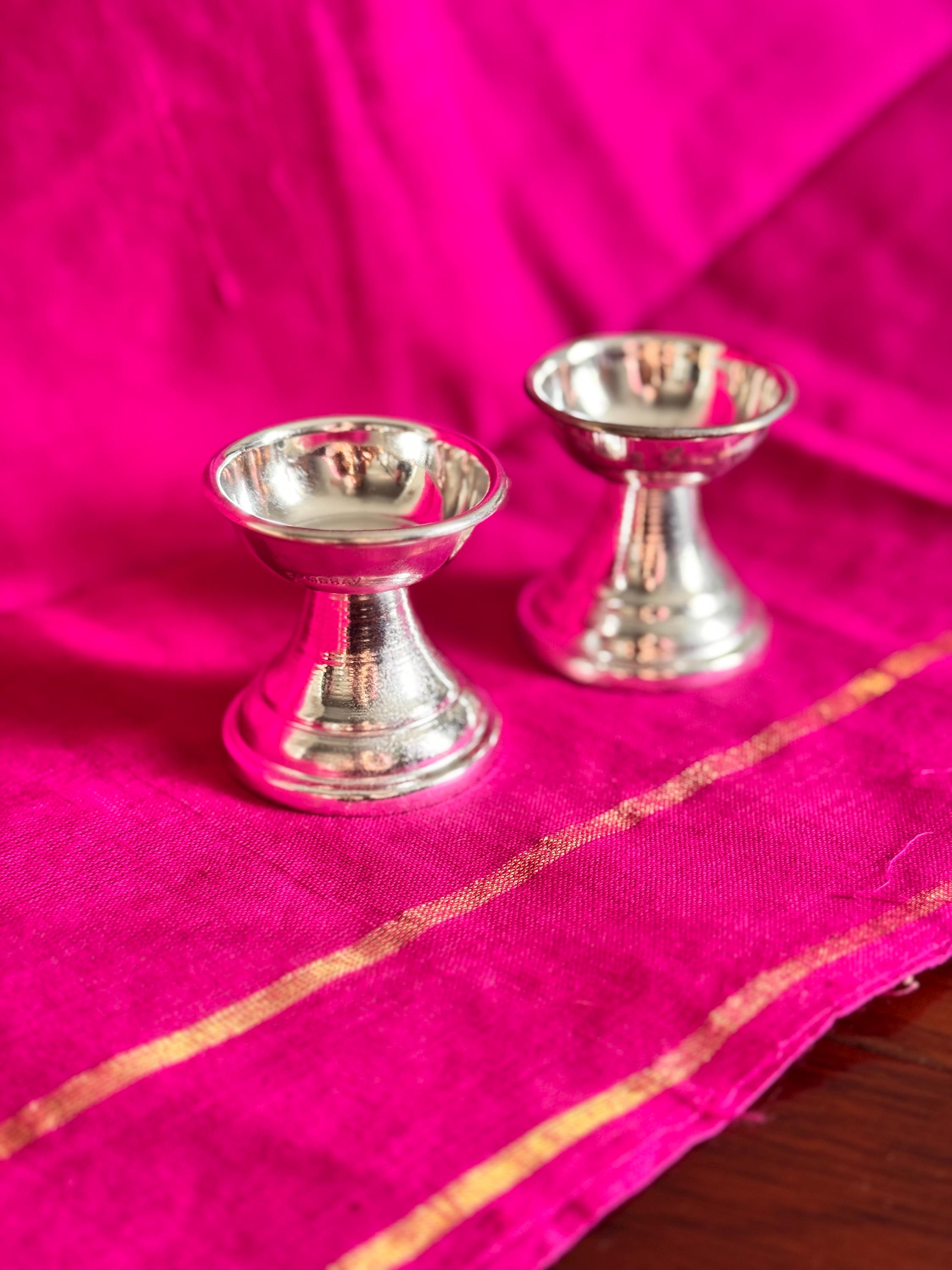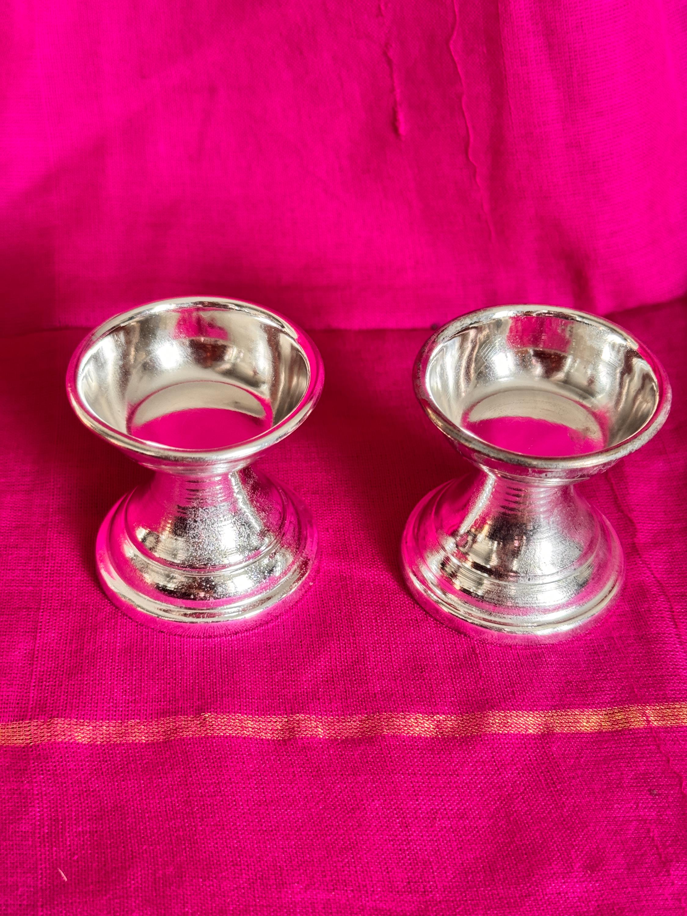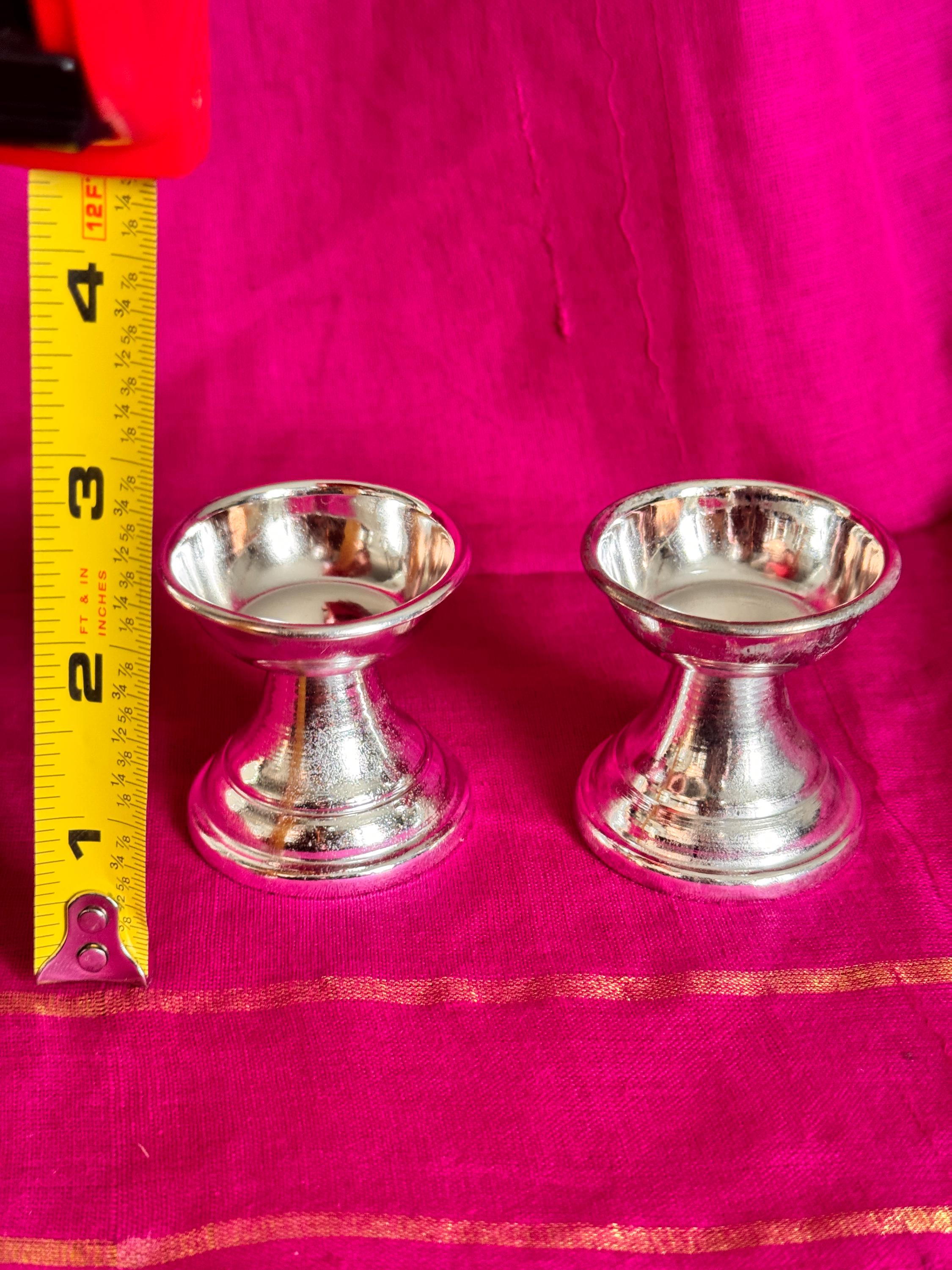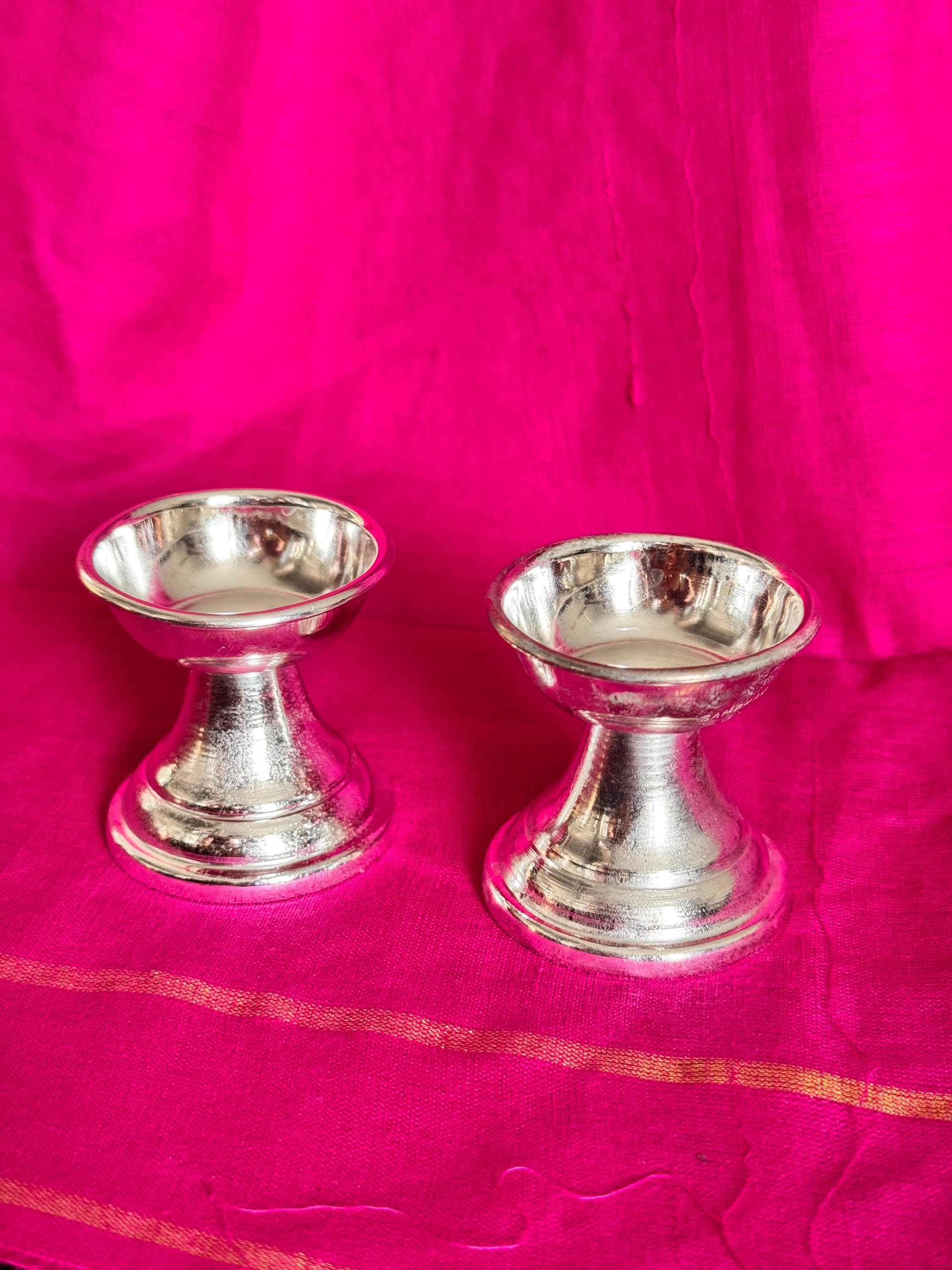 Vibrant German silver pair of lamps. Auspicious for home and brings prosperity. Use in prayer room or for gifting for your loved ones. Wishing you good luck and prosperity. 🙏