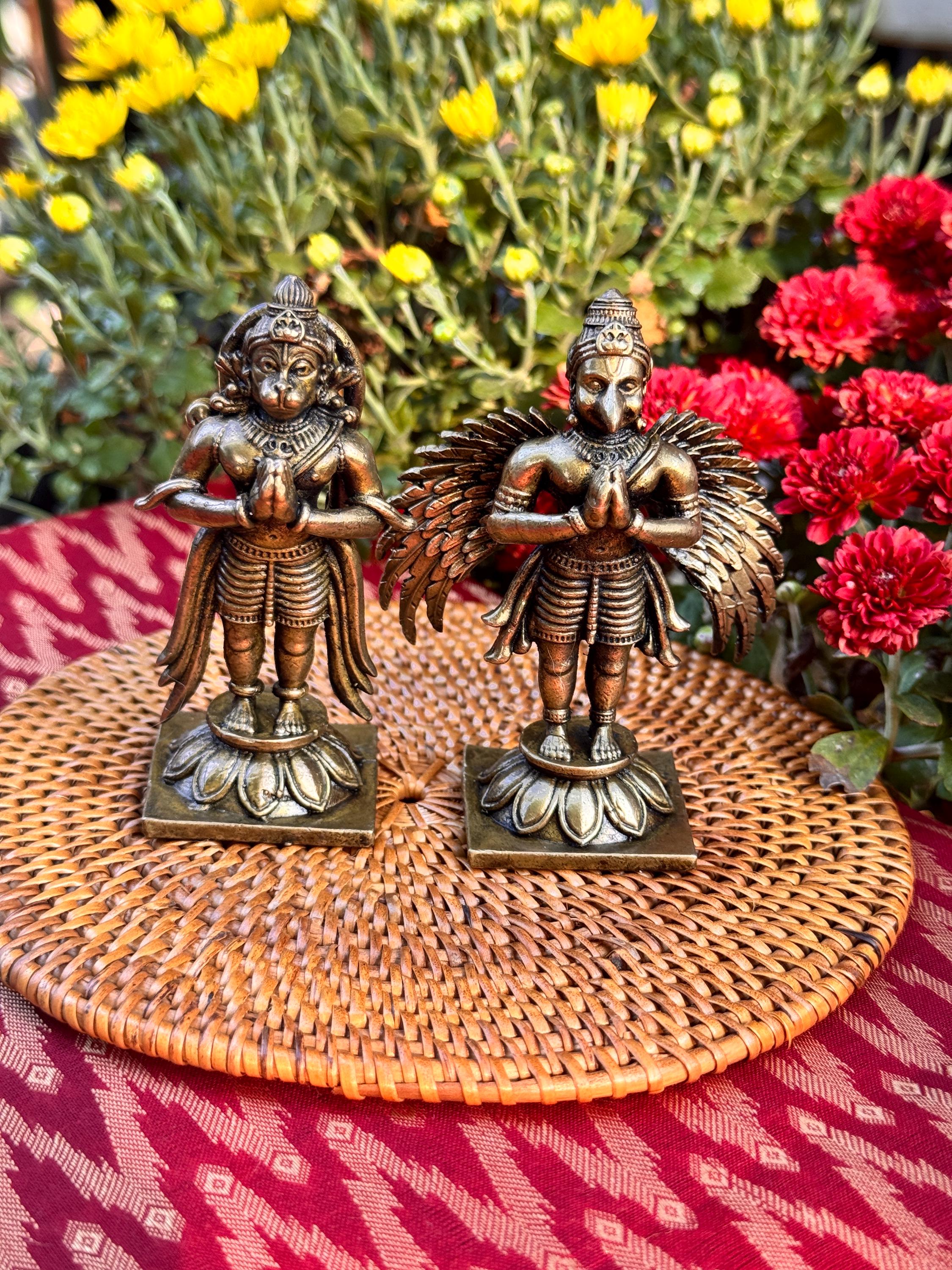 Featuring our rare collection of compact and elegant brass idols for your home. This is a rare find - beautiful pair of Hanuman and Garuda. Please check the pics for details of size. What you will receive: A pair of idols, one Hanuman and one Garuda in medium size as per size/measurements above. You can also choose Hanuman idol in the dropdown below.Please DM for any questions.