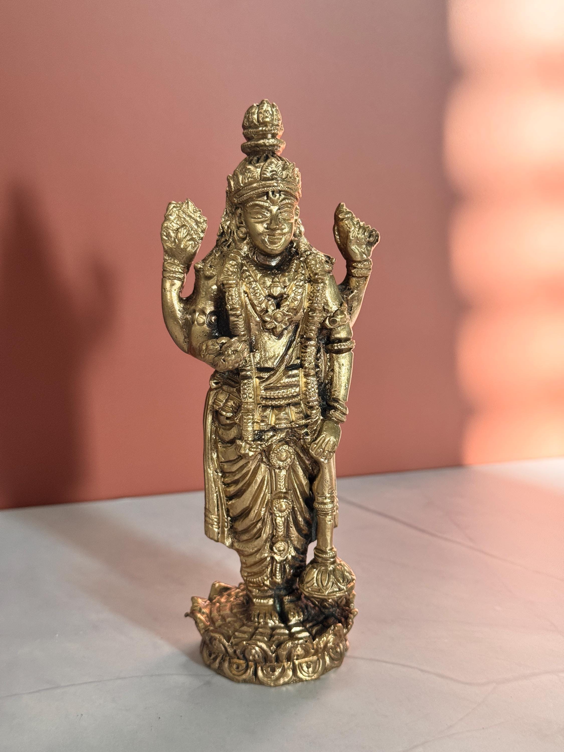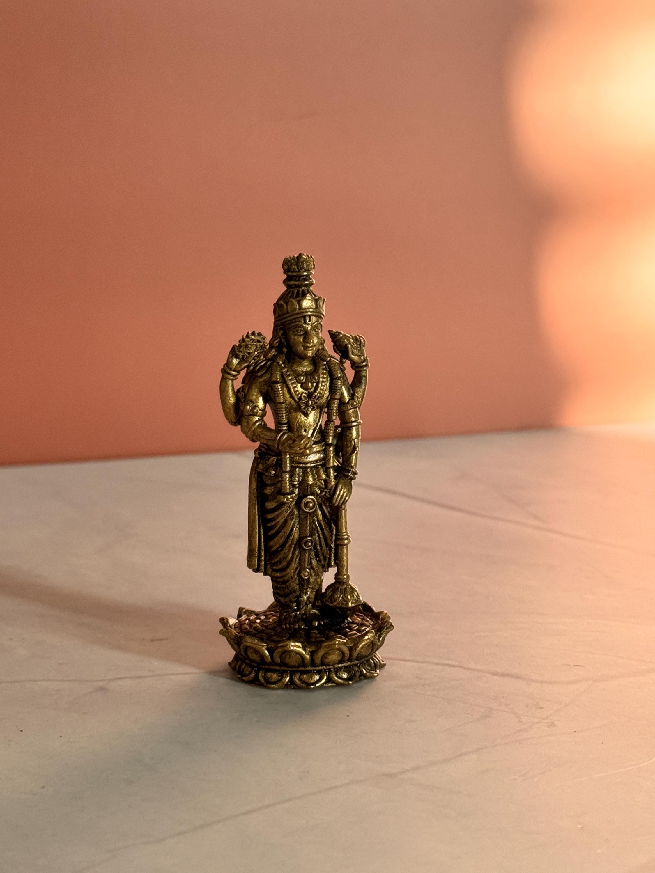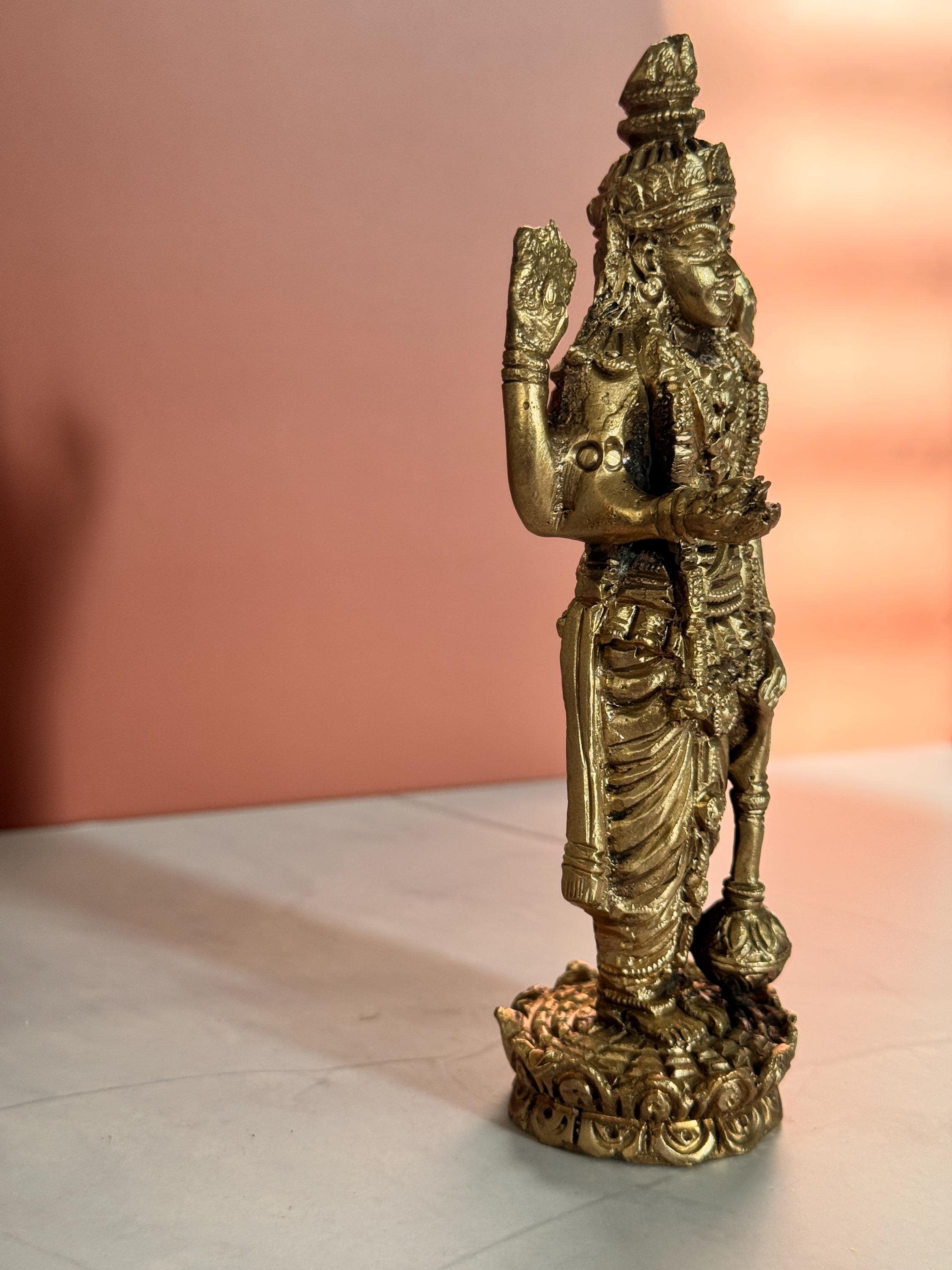 Featuring our rare collection of compact and elegant brass idols for your home. This is a rare find - beautiful Guruvayur Sri Krishna. Please check the pics for details of size.