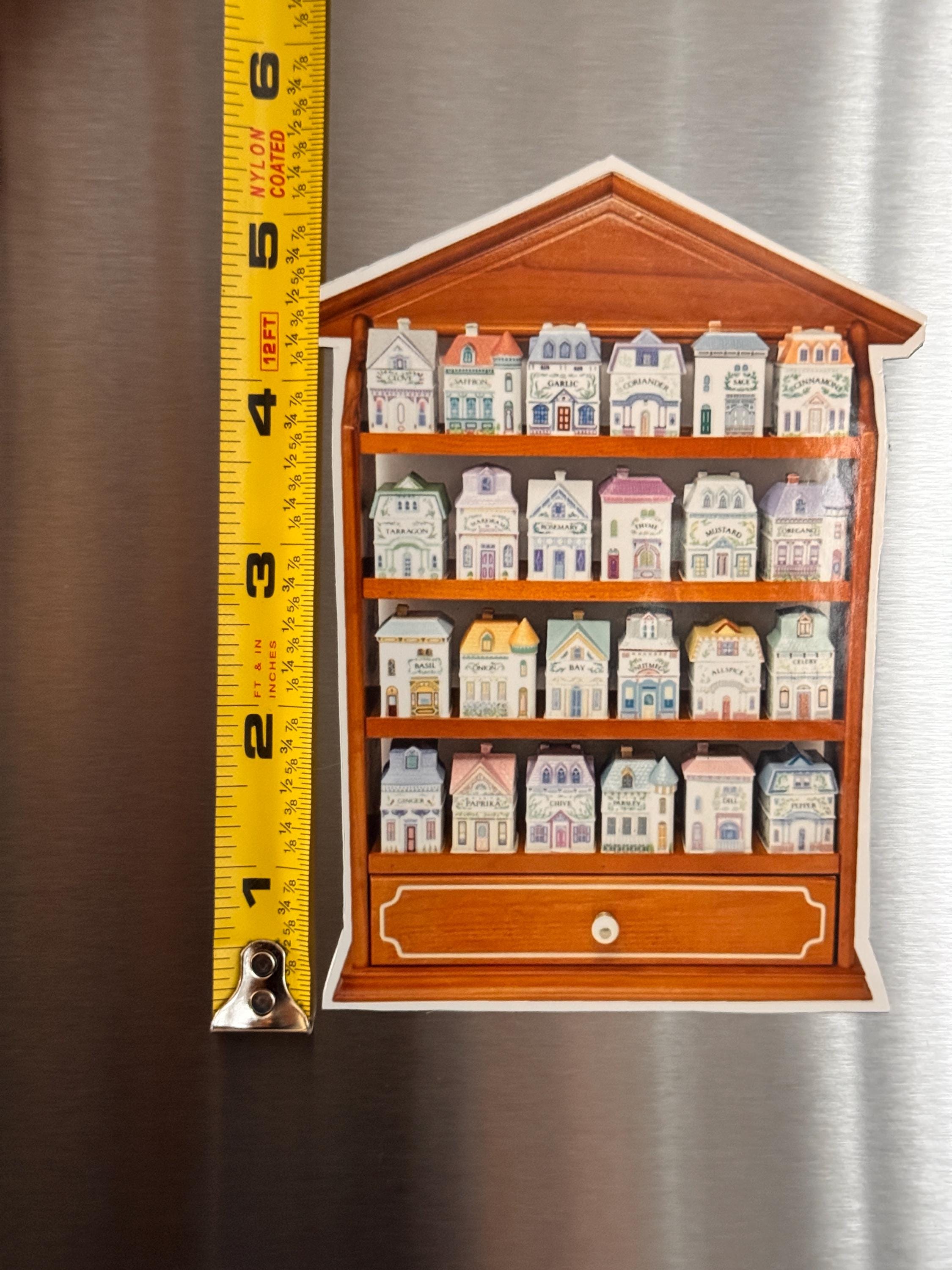 Add a touch of charm to your space with our beautiful Lenox inspired magnets. Each design features a beautiful complete Lenox spice village house nested within their original rack , ideal for your fridge or magnetic board. Makes a cute gift for your loved ones. You will receive one easy peel magnet that’s cut to shape the beautiful rack and houses in one frame as seen in the pic and video.