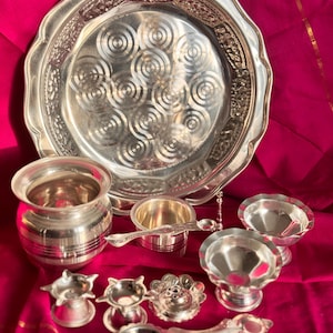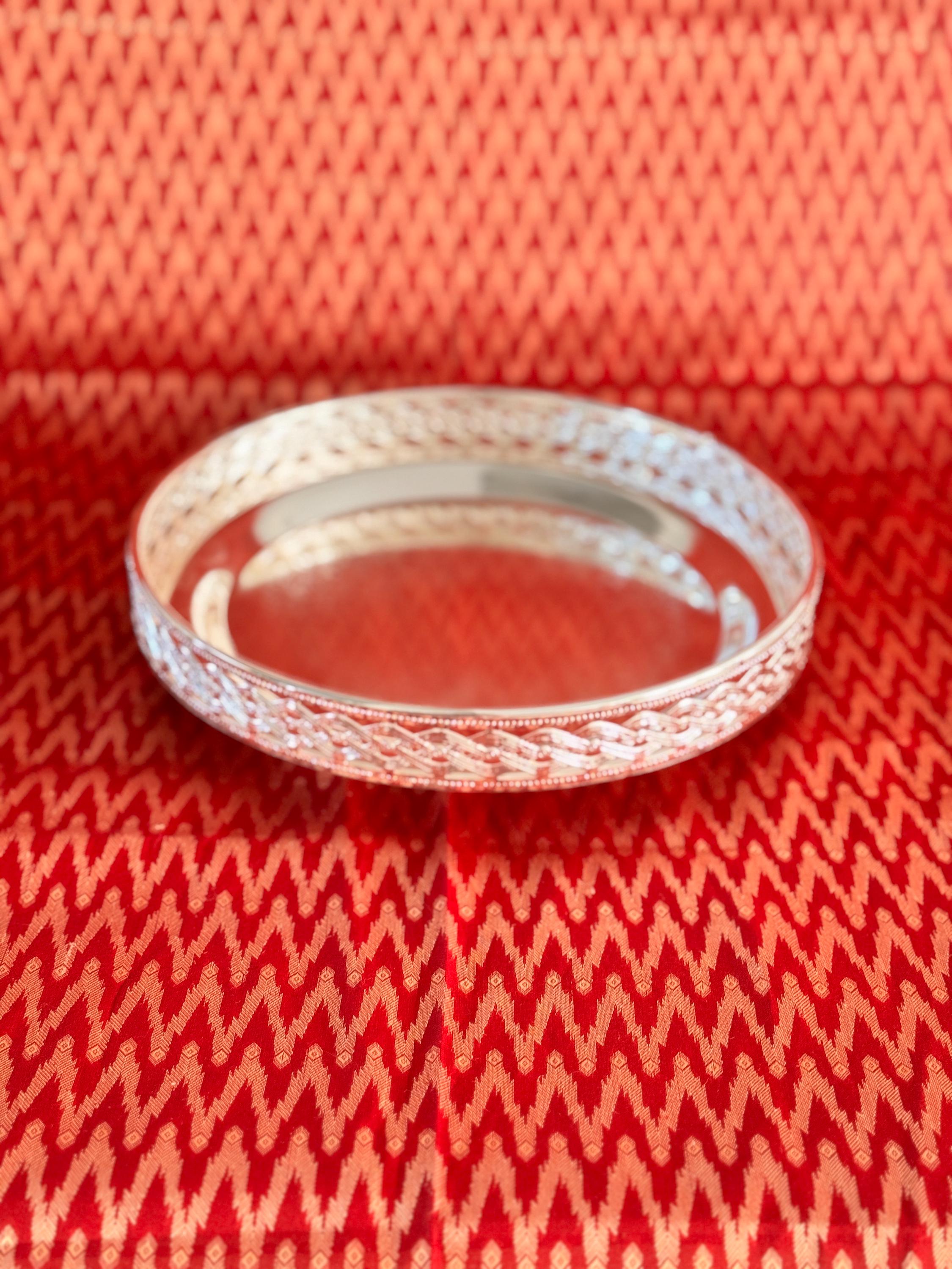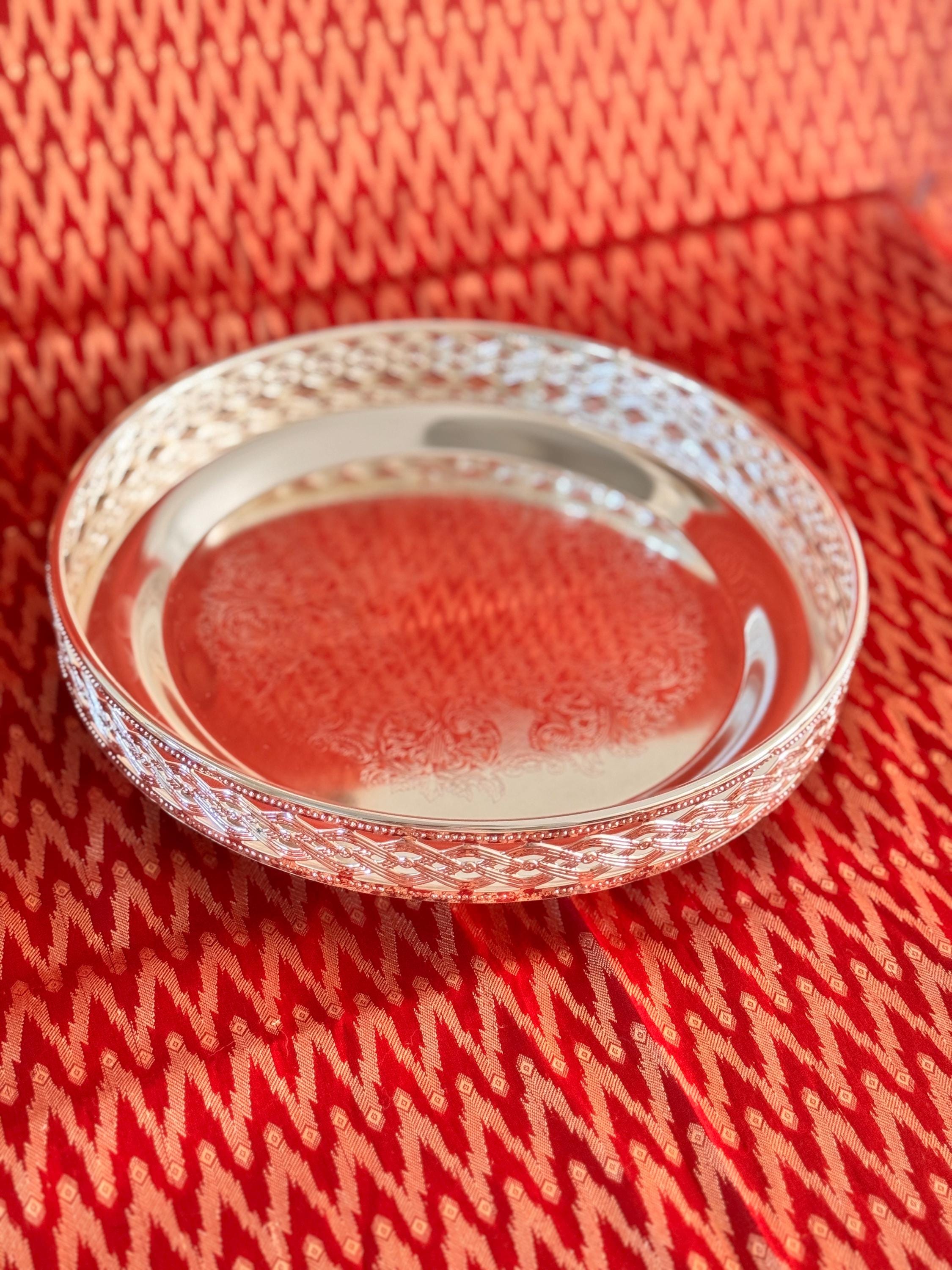 Exquisite German silver plates or tamboolam or serving. Perfect for your home or as return gifts or puja purposes. Thoughtful gift for your loved ones.