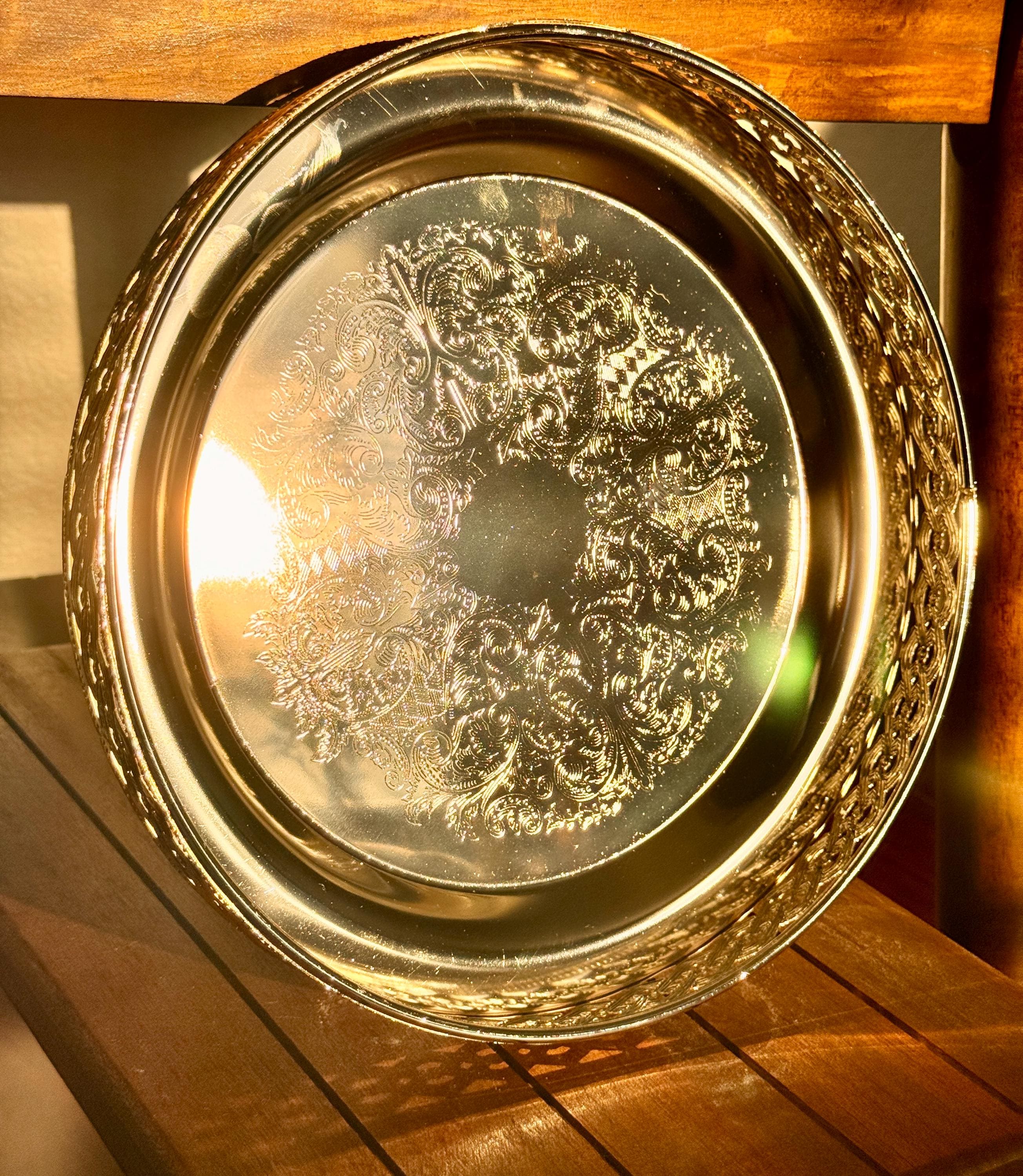Engraved German Silver Plate "Roshan": 10in Tarnish Resistant Home Decor| Gifting|serving tray