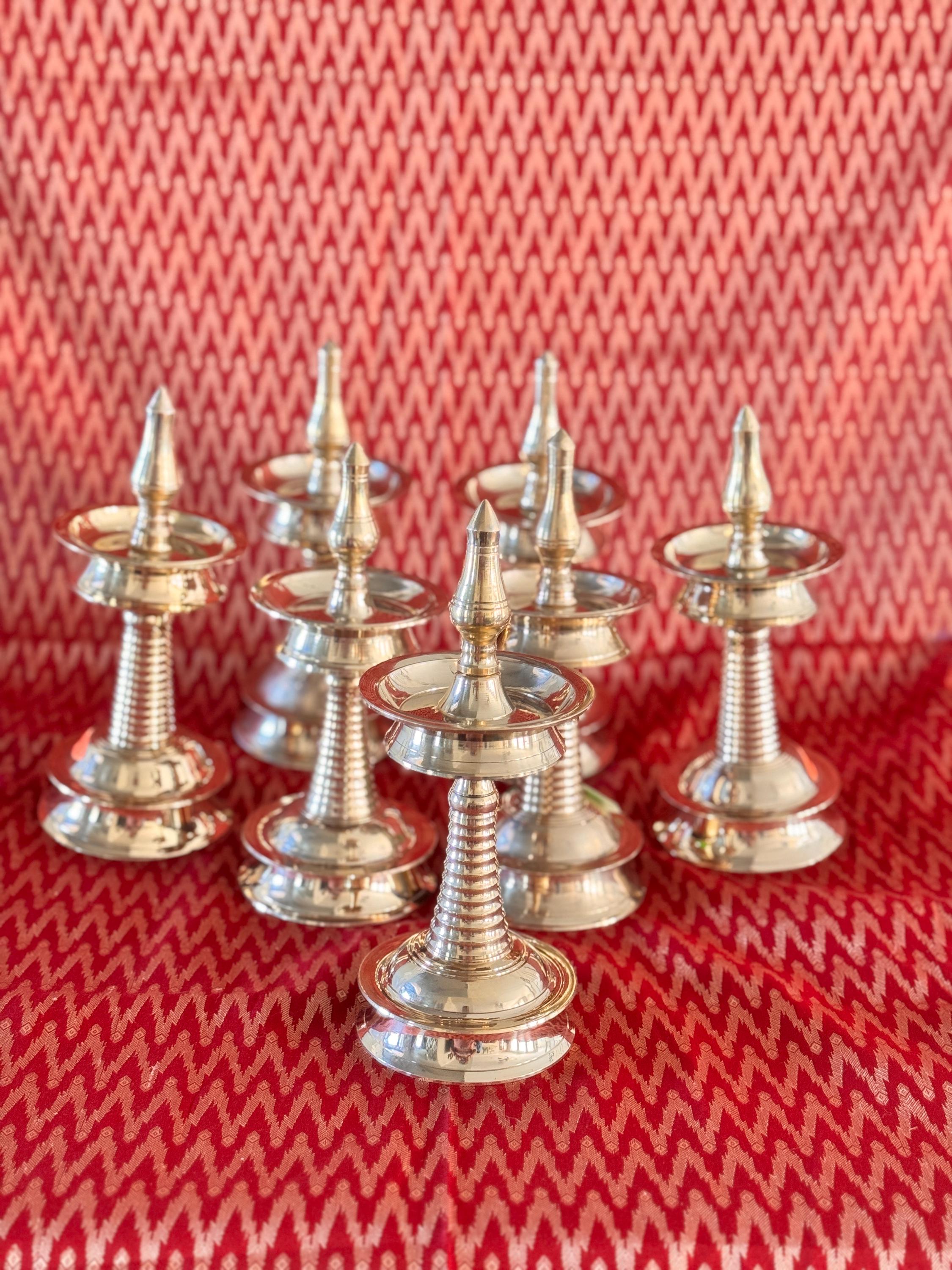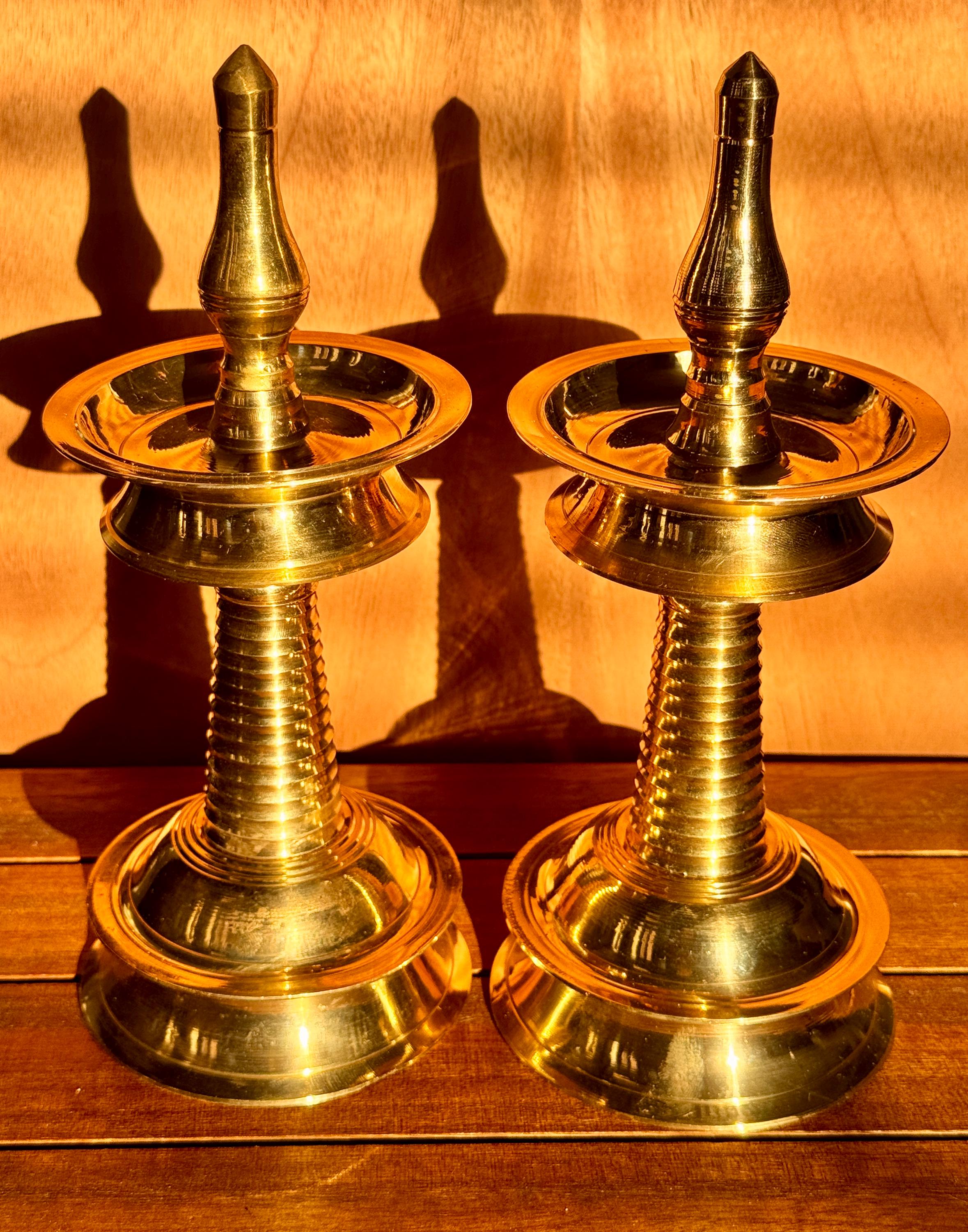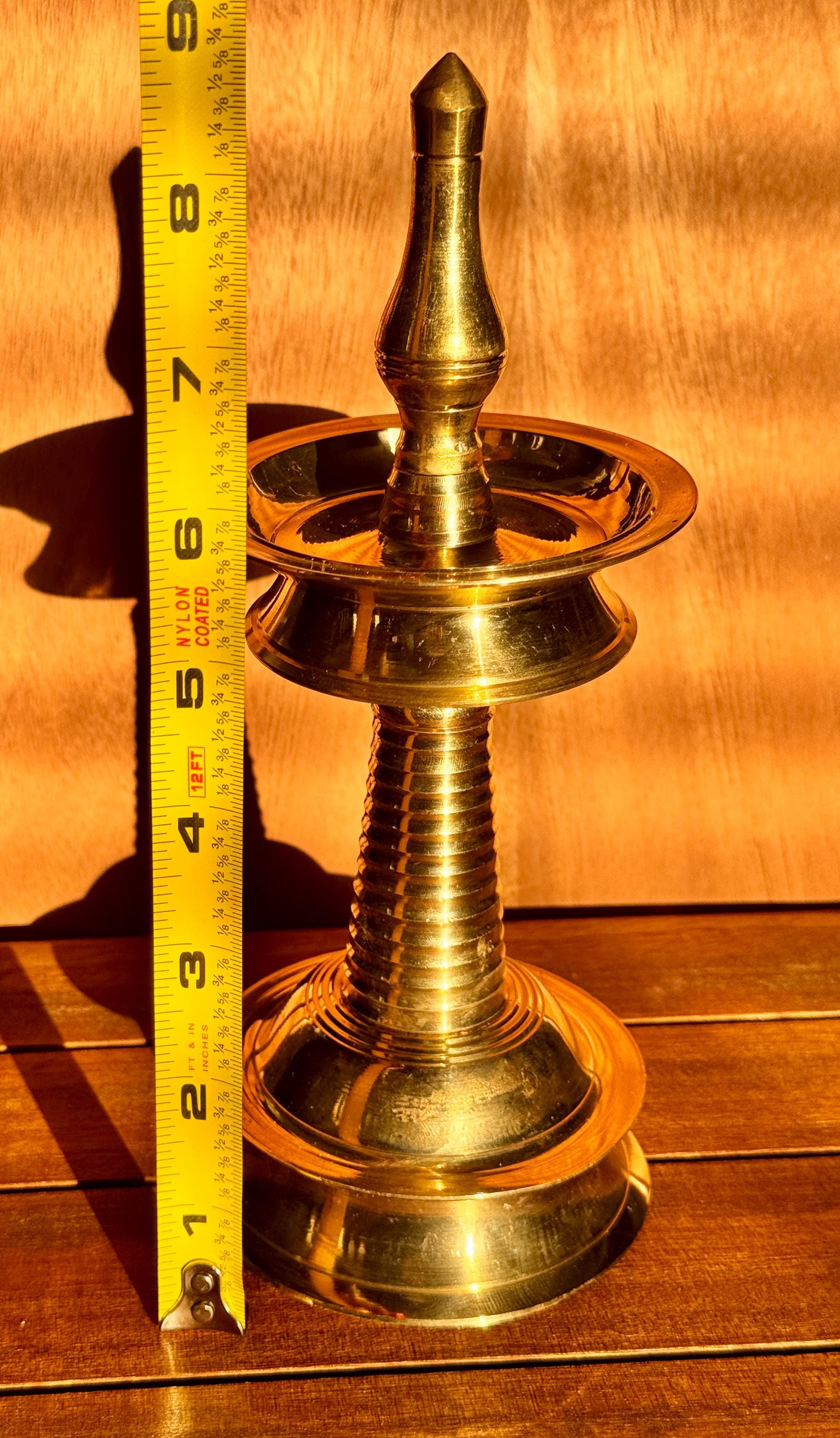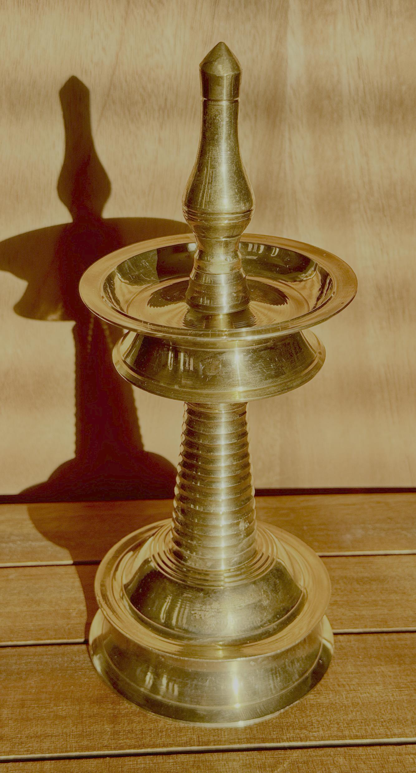 Product description: Authentic Kerala brass lamp/vilakku. Original, heavy weight, high quality brass lamps. Listing is for one lamp/vilakku. Made from premium quality brass material for long time use Size: Height 8 Inches
