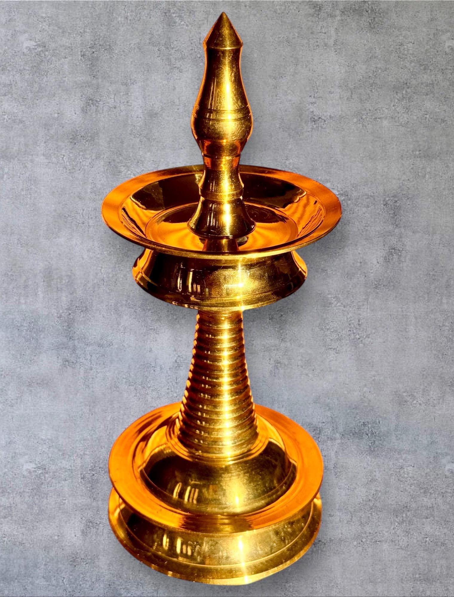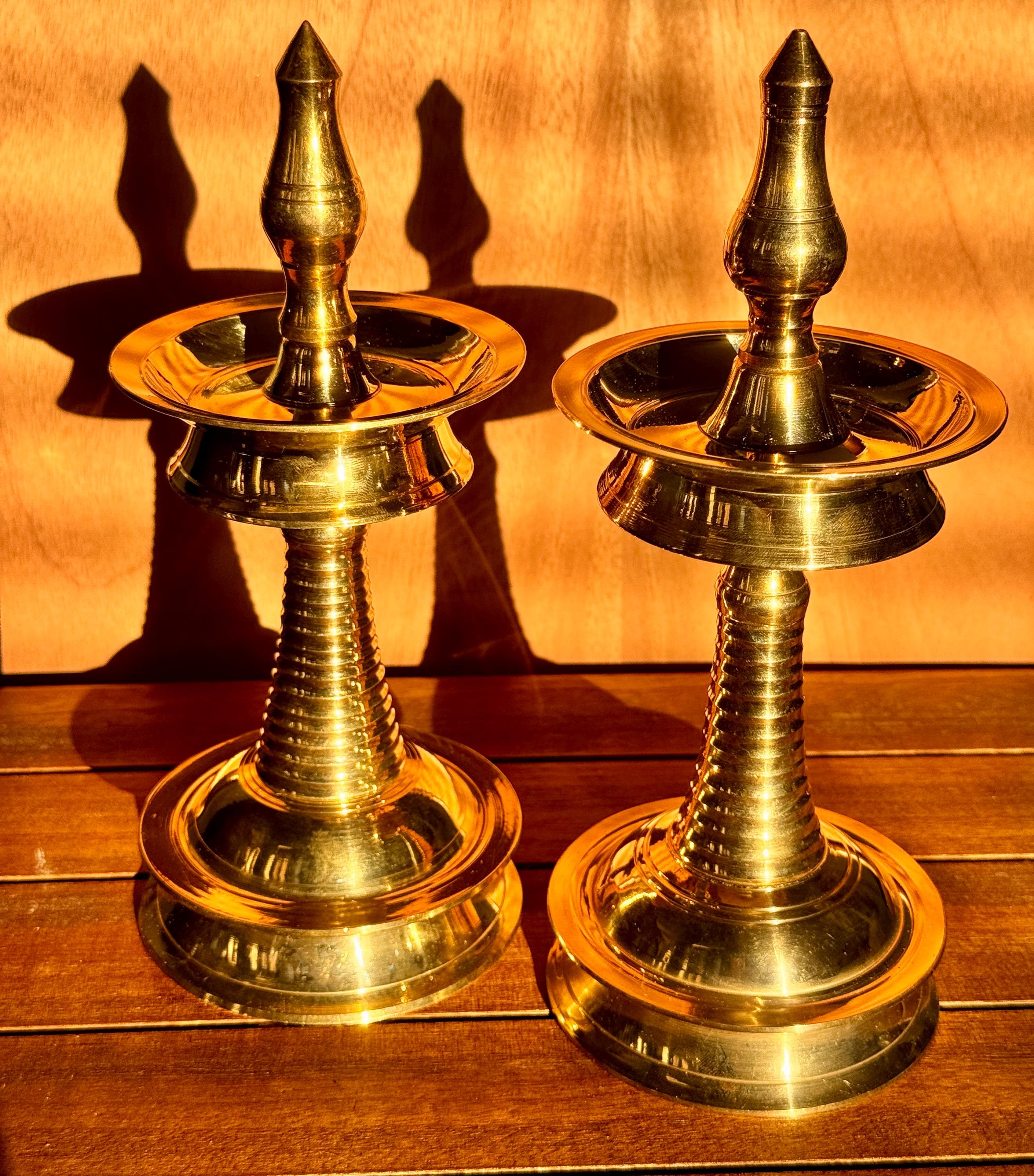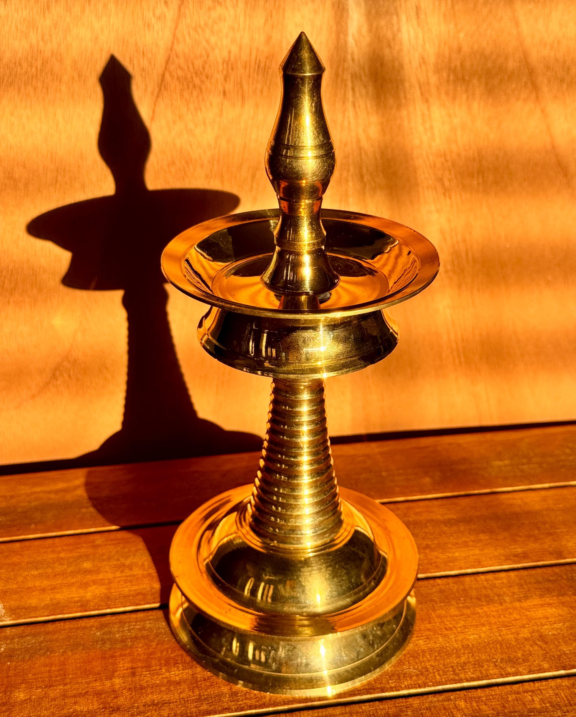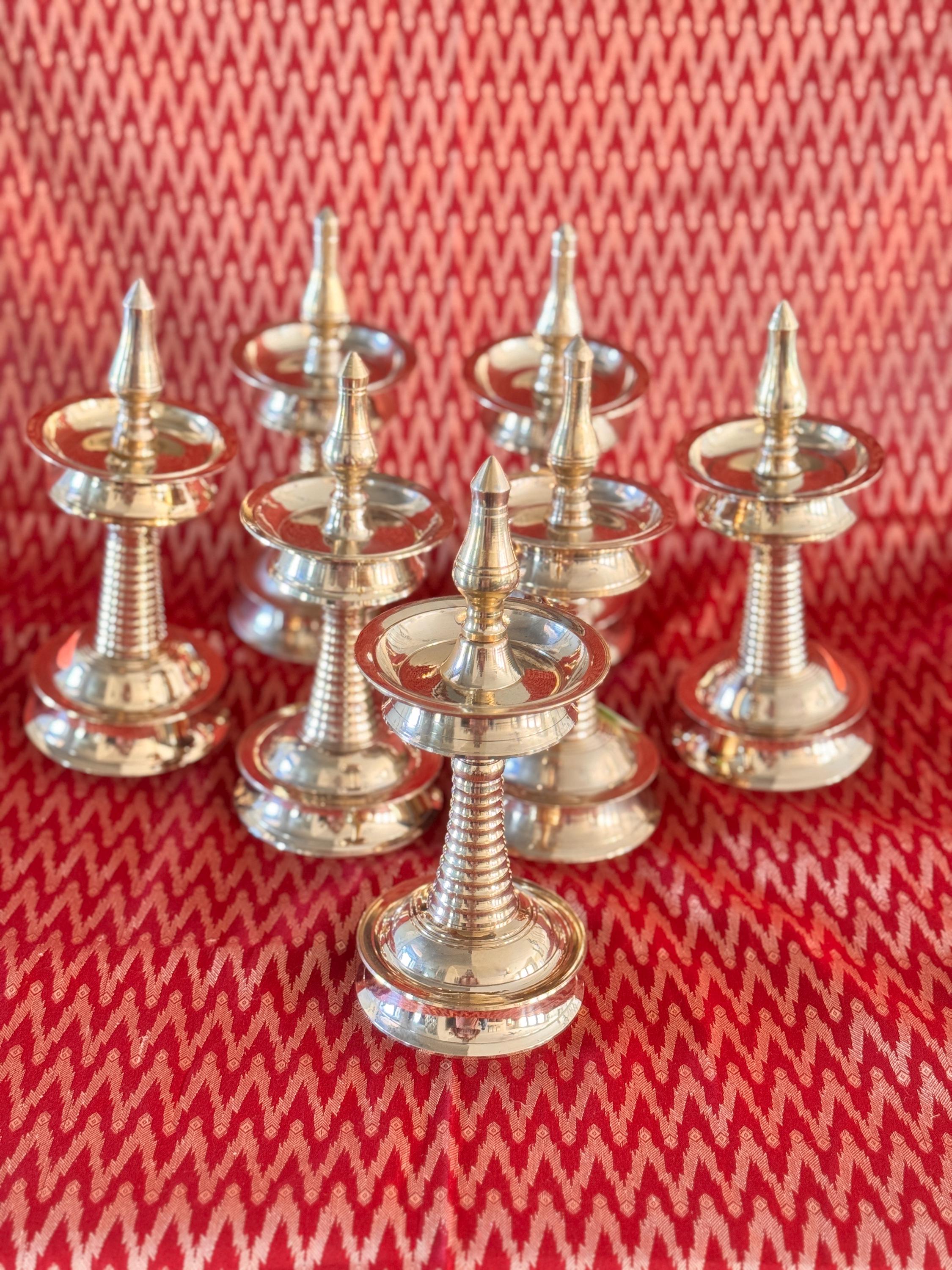 Product description: Authentic Kerala brass lamp/vilakku. Original, heavy weight, high quality brass lamps. Listing is for one lamp/vilakku. Made from premium quality brass material for long time use Size: Height 8 Inches