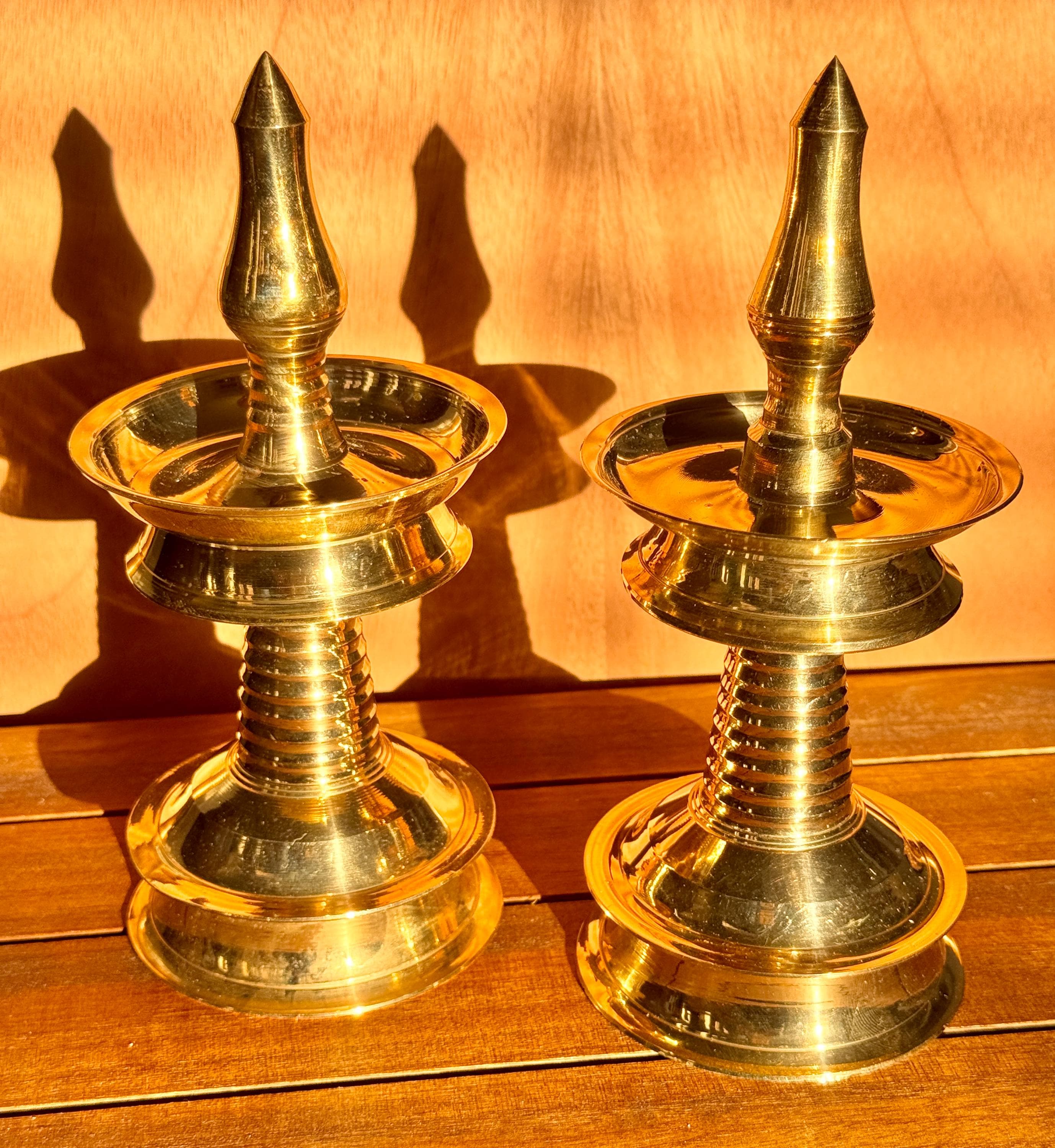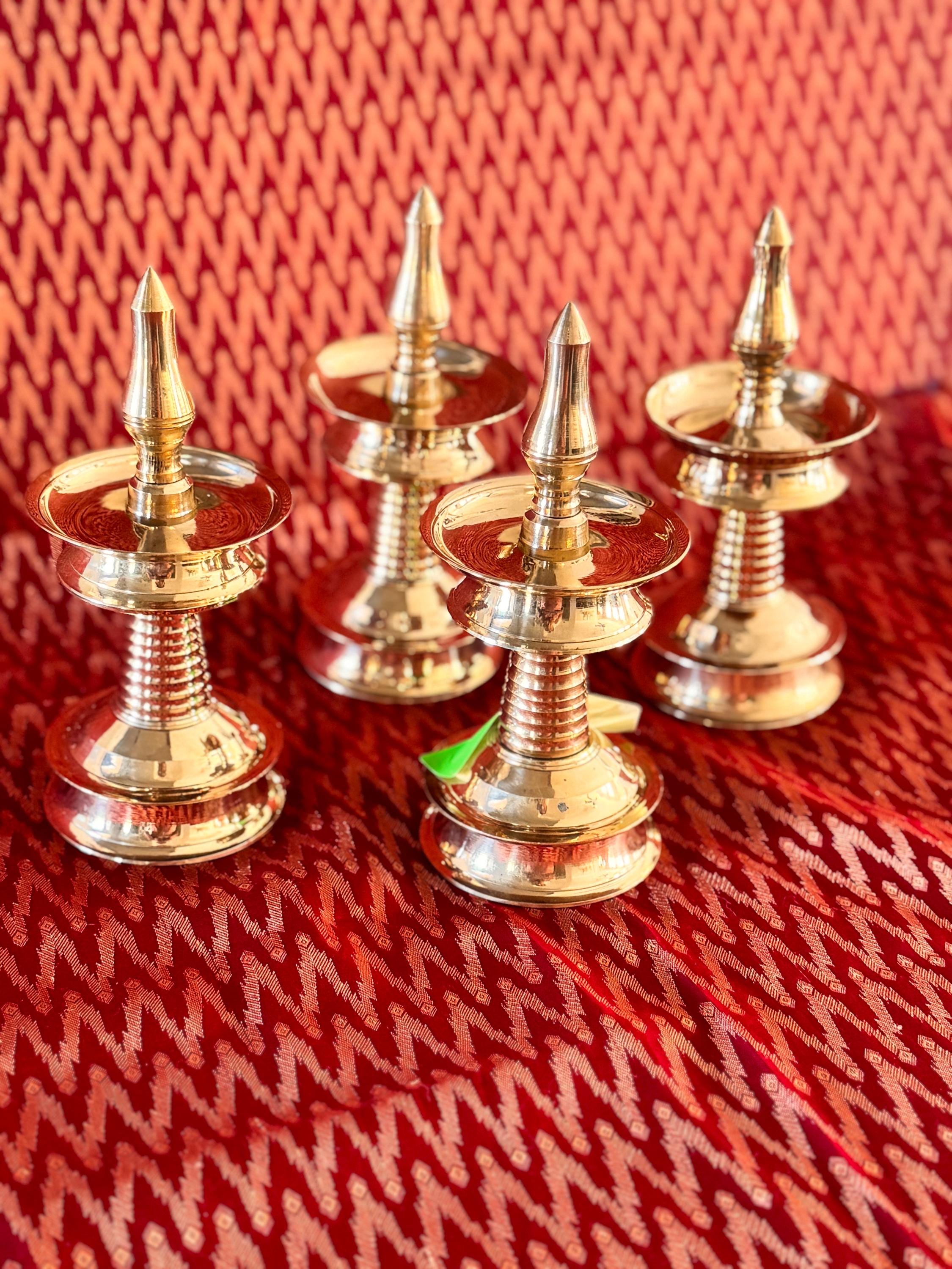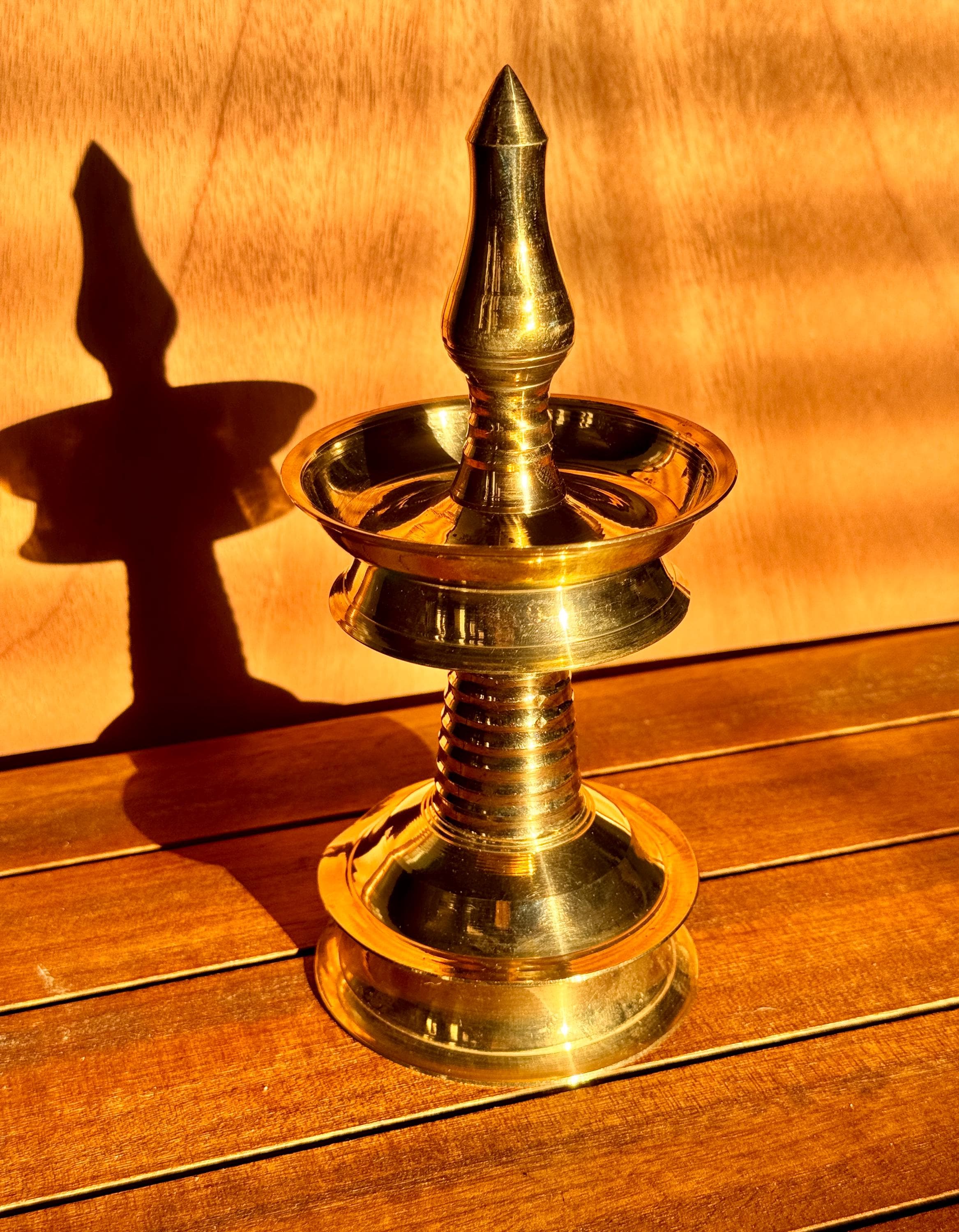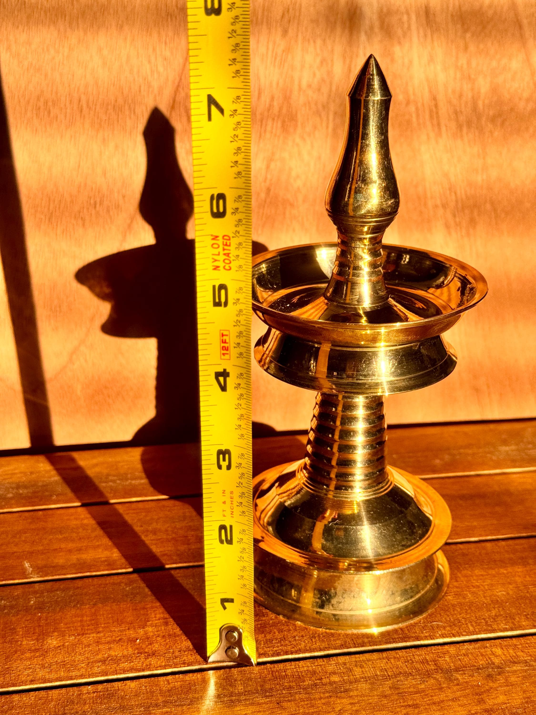 Product description: Authentic Kerala brass lamp/vilakku. Original, heavy weight, high quality brass lamps. Listing is for one lamp/vilakku. Made from premium quality brass material for long time use Size: Height 7 Inches