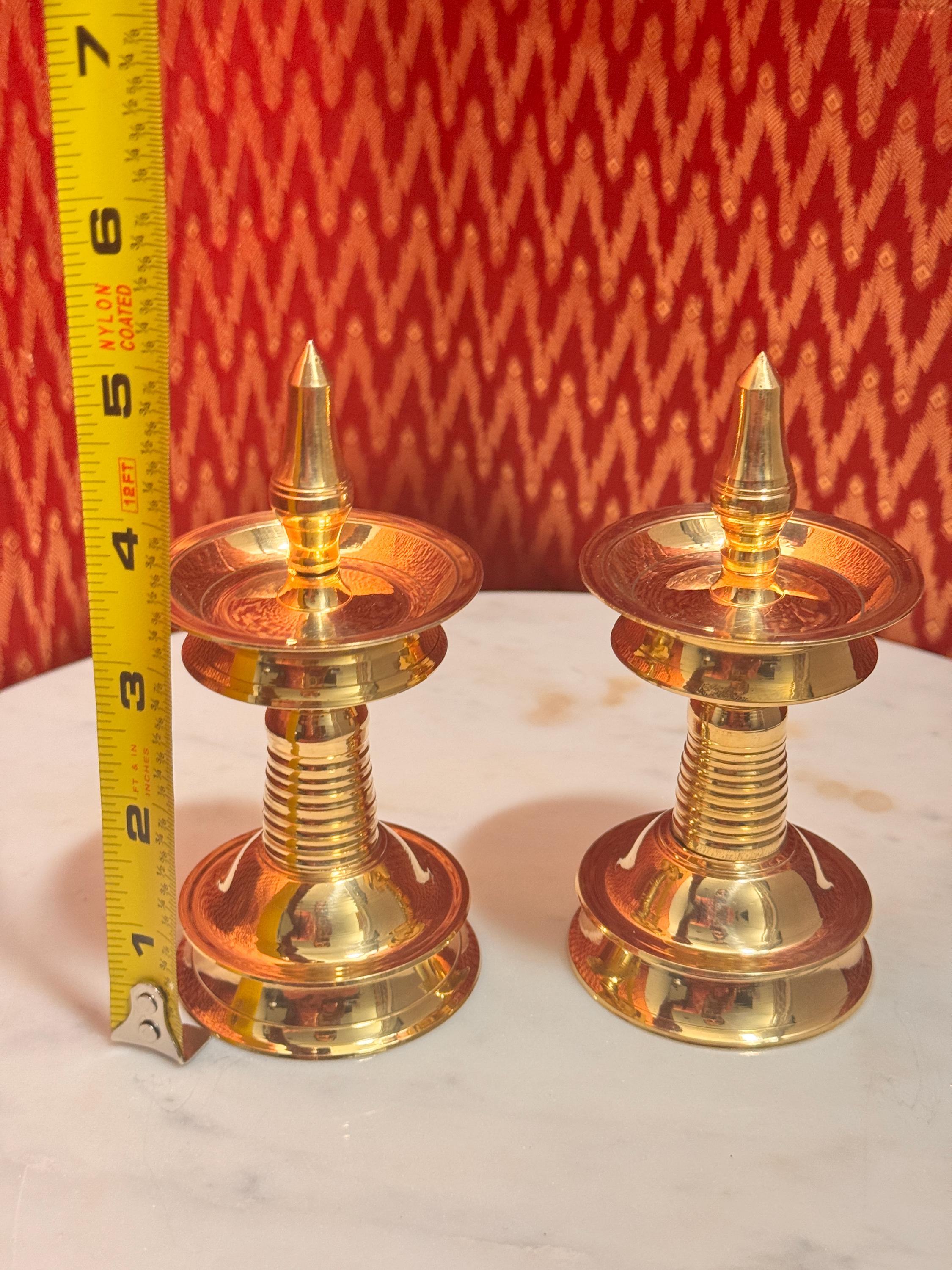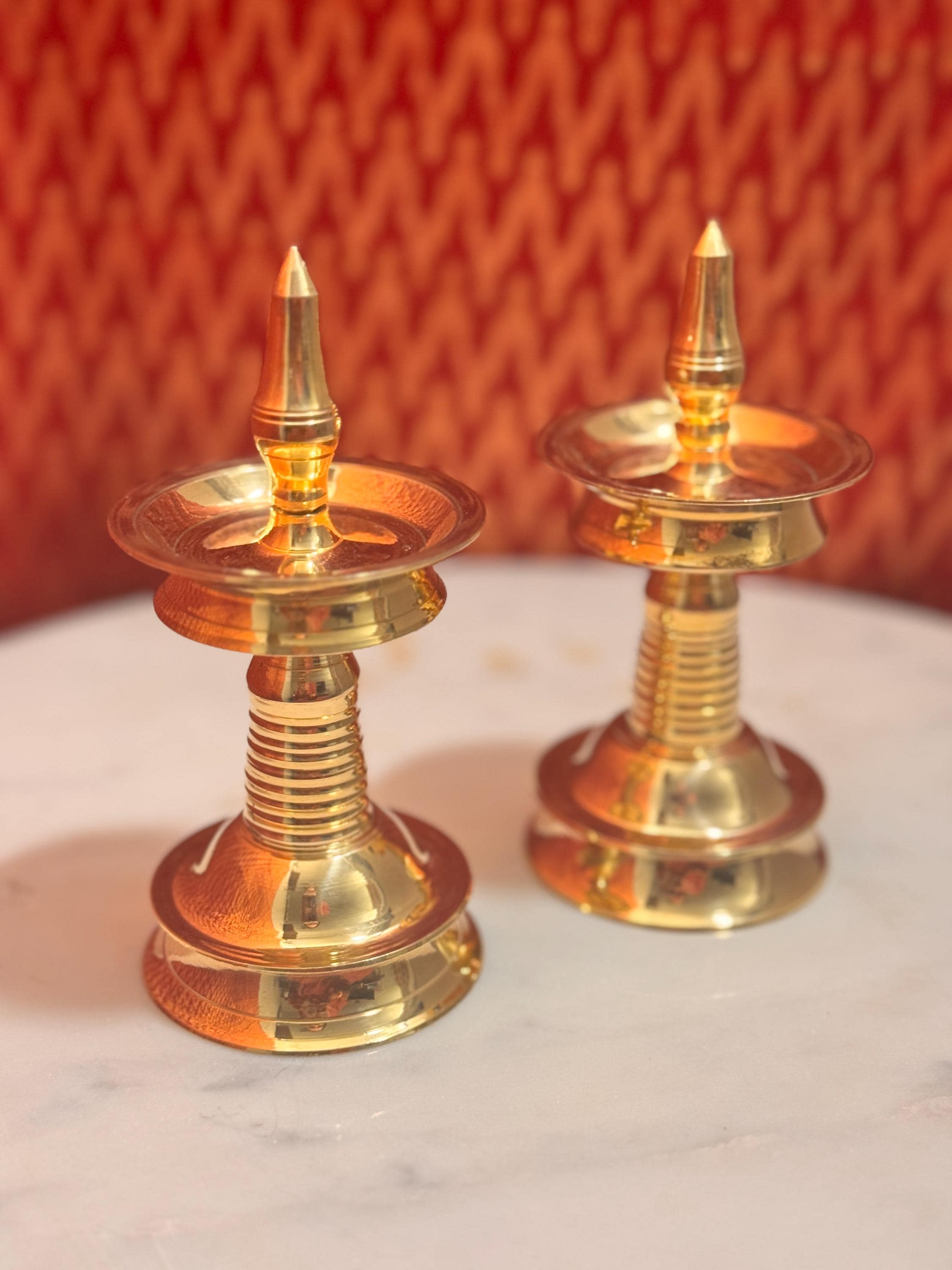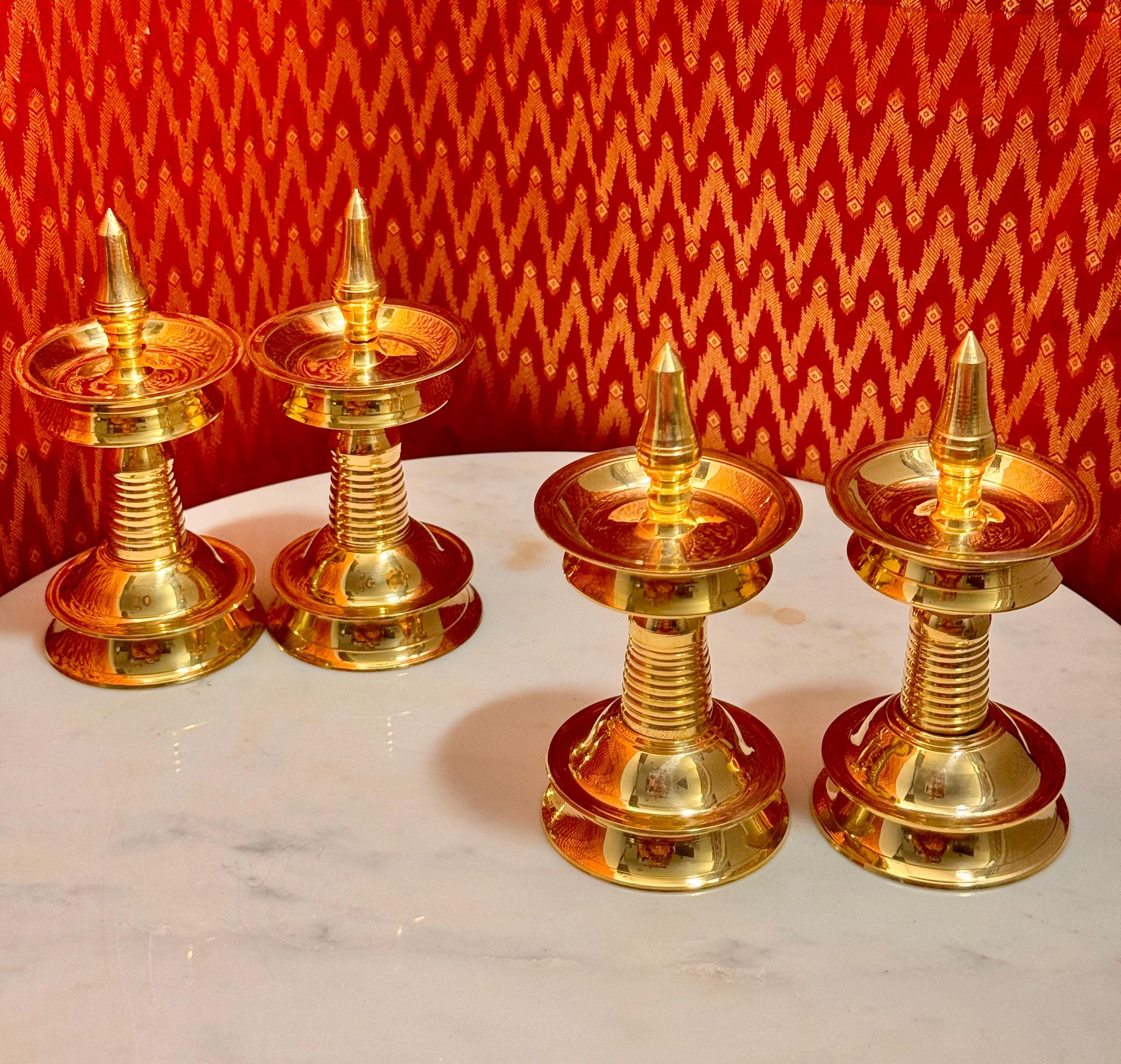 Product description: Authentic Kerala brass lamp/vilakku. Original, heavy weight, high quality brass lamps. Listing is for one lamp/vilakku. Made from premium quality brass material for long time use Size: Height 5 Inches