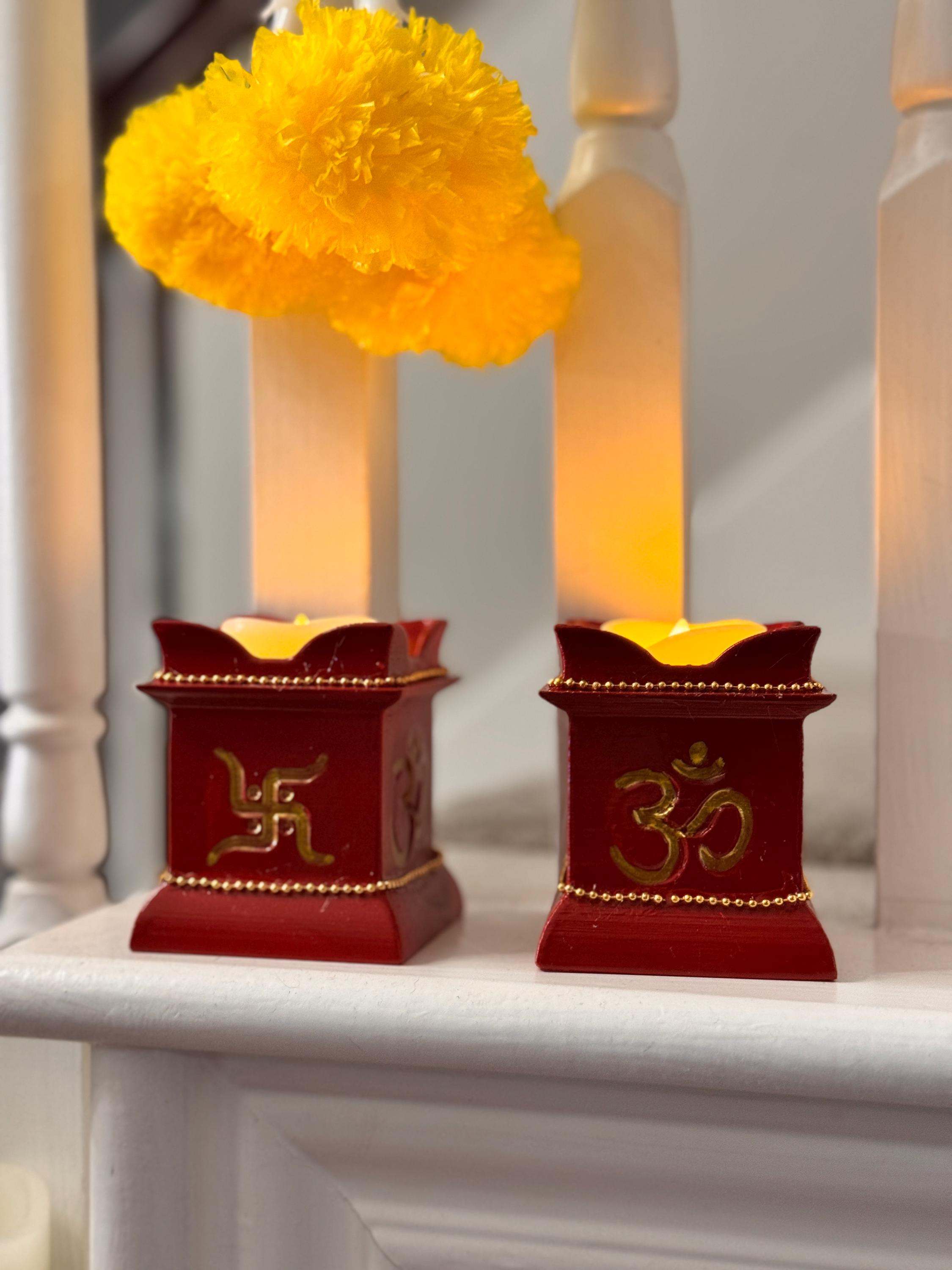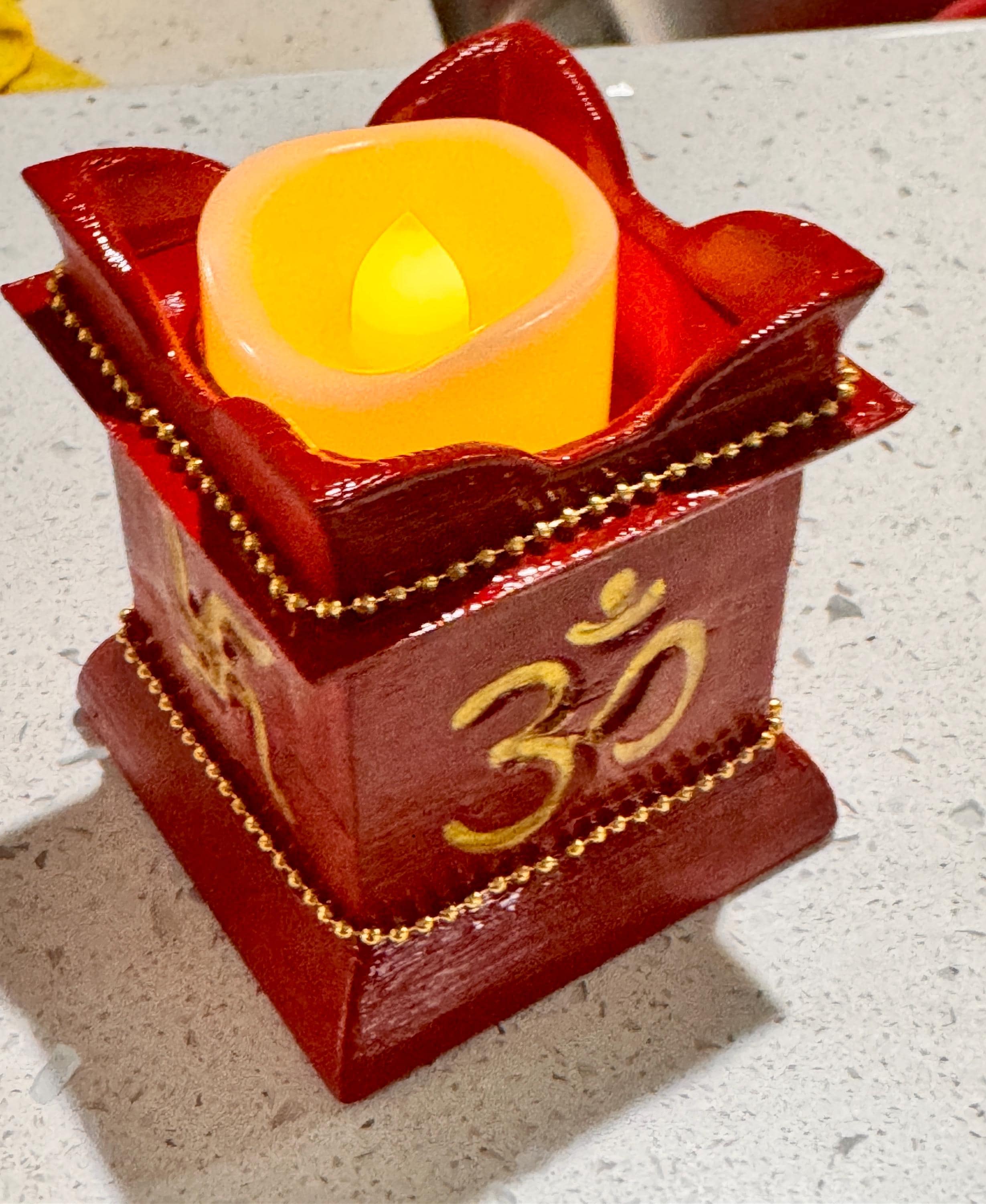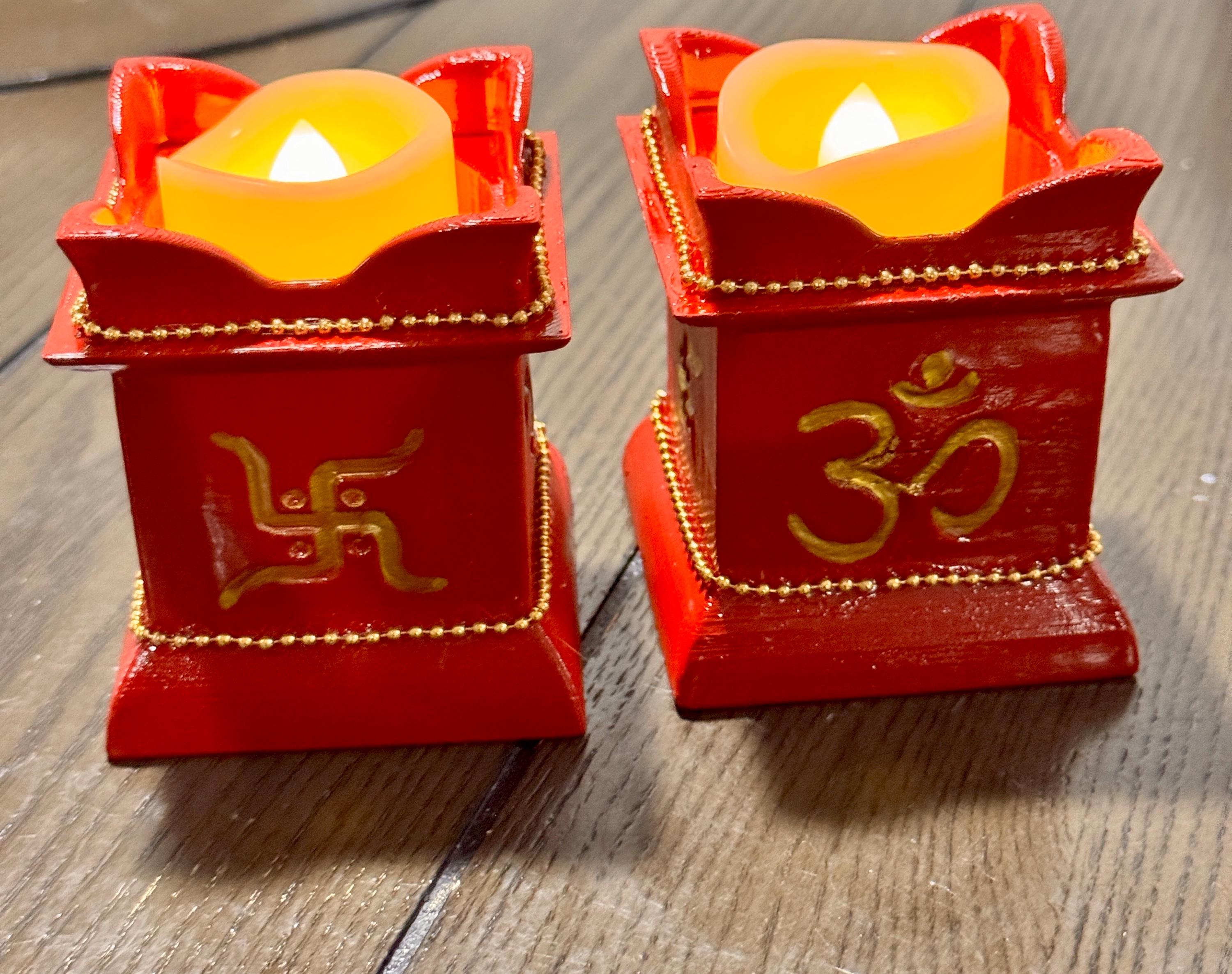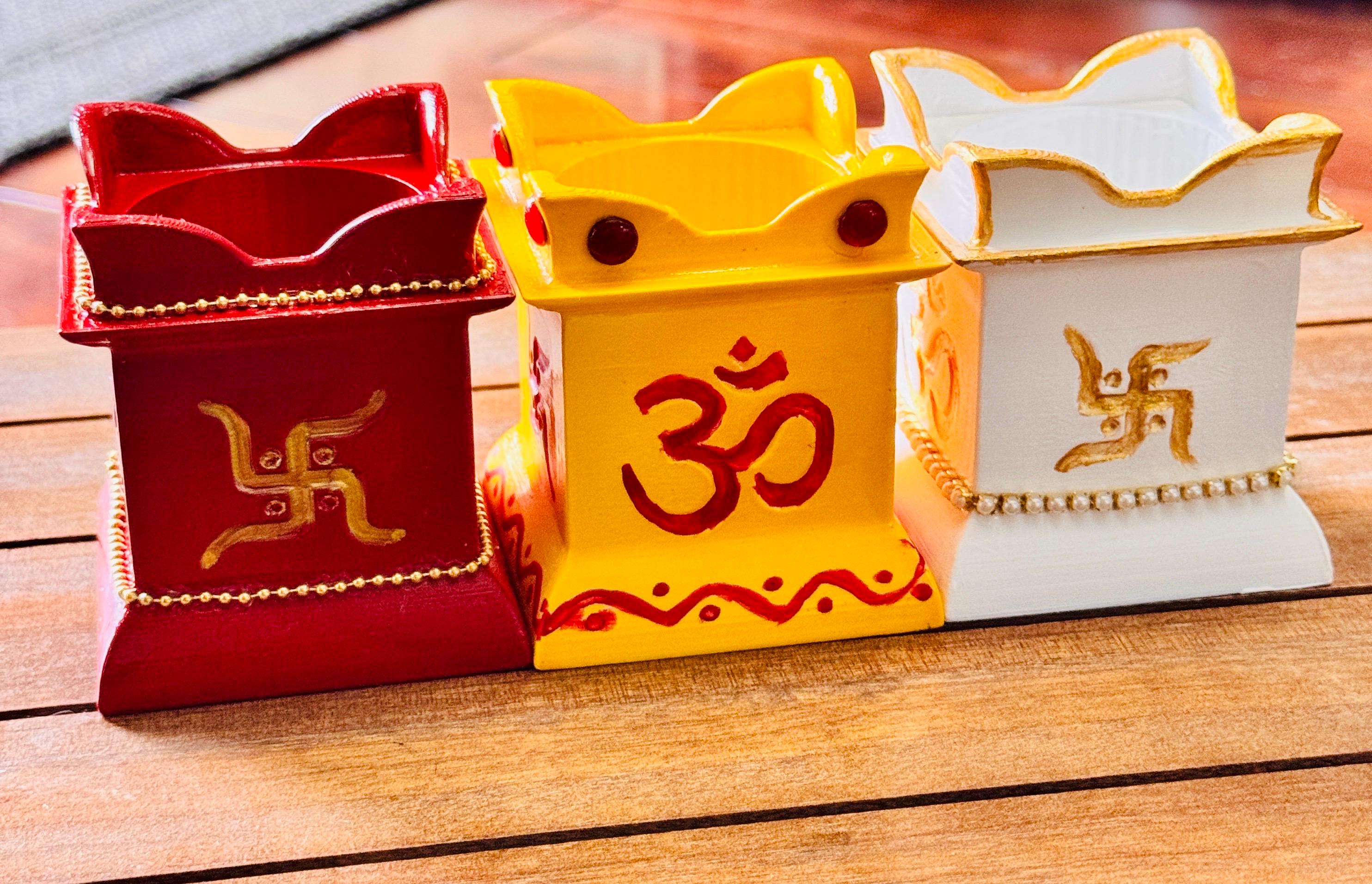 Hand painted, embellished with Tanjore stones (Yellow tulsi kota only) and filigree work. Sealed with varnish for long lasting effect. All painting / rangoli and finish is handmade with love. Above listing is for one Tulasi tea light holder. Material: Plastic. One complimentary battery-operated tea light will be provided with each purchase.