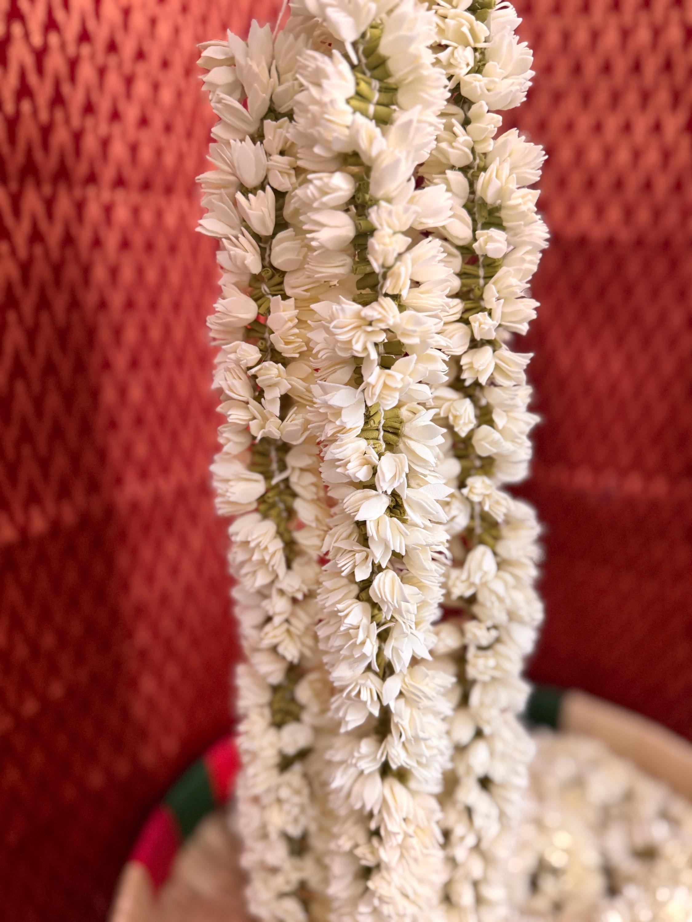 Listing is for one quantity of 16 inches jasmine string: Pichi poovu/Jasmine variety. For other varieties please check our listing under "Jasmines" for more options. You will be amazed at the beautiful, bloomed flowers strung together that is so realistic. Experience the delicate beauty of our very beautiful - Pichi poovu variety of Jasmine String, measuring 16 inches (ONE STRING). Expertly crafted to mimic natural jasmine buds, this string adds an authentic touch to your décor or traditional attire.
