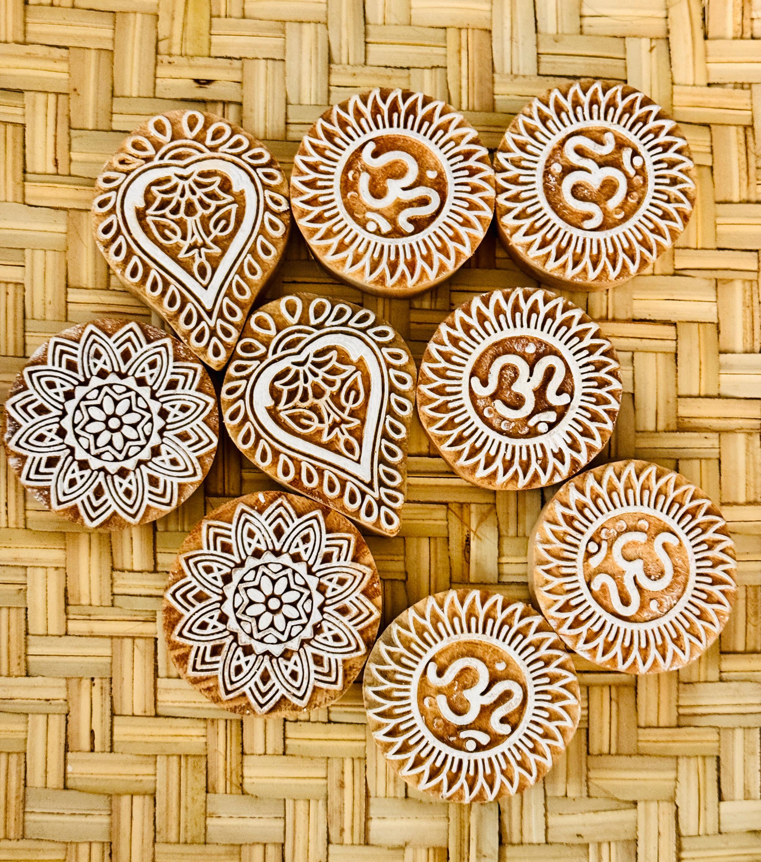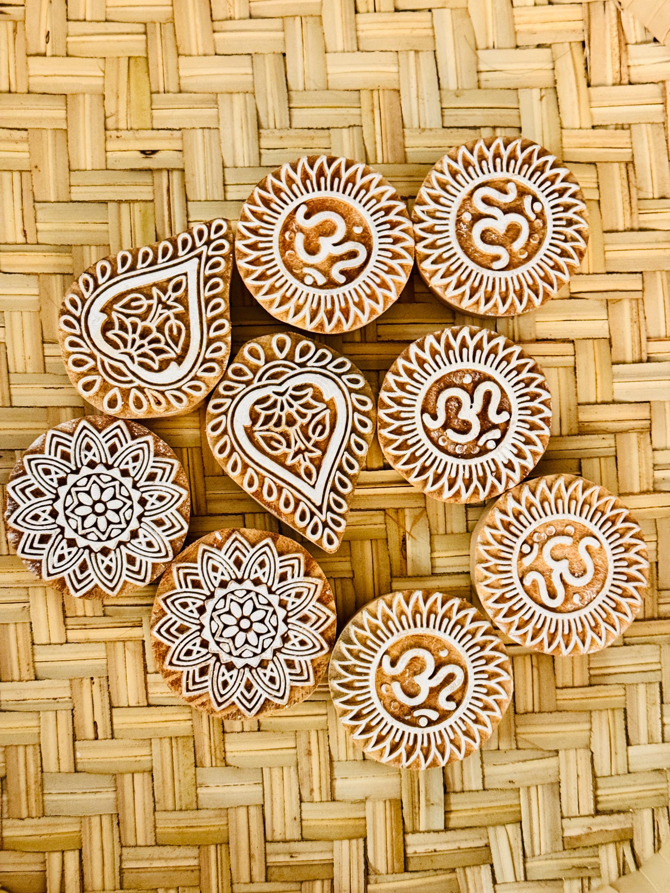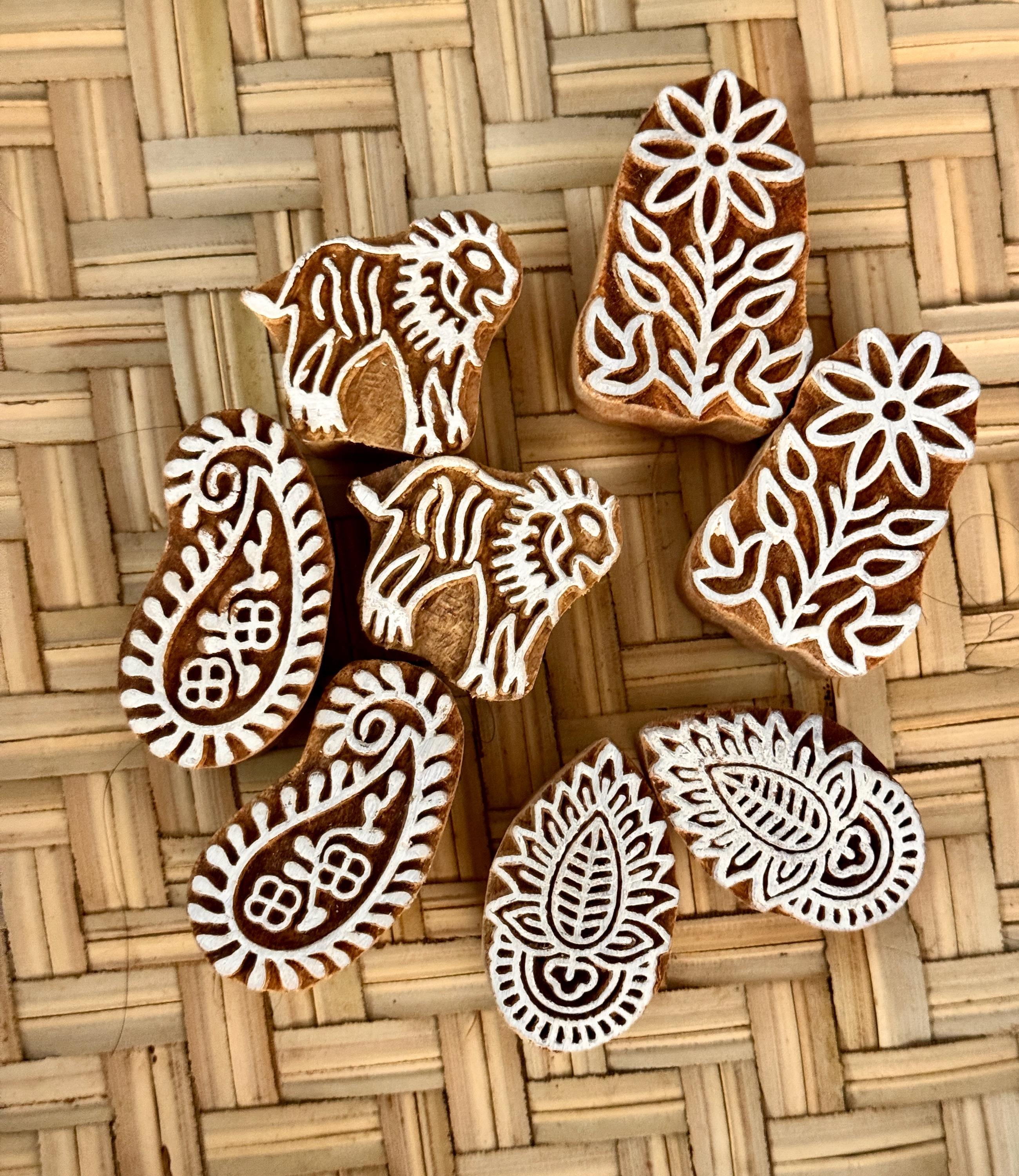 These are supplies for handmade block printing on fabric/wood or clay. Comes in varying sizes, small, medium and large. Block prints can also be used for paper crafting as they come in stunning design options. These beautiful hand-carved woodblocks from India are both functional and decorative. Print with them to make your own patterned papers and block-printed fabric, and then display them when you're finished - each block is handmade and a piece of art in its own right! You could even paint/frame them in shadow box frames to make a beautiful wall decor. Approx sizes: Small: 2 inches each Medium: 2.5 inches to 3 inches, depending on the design chosen Large: 4-5 inches depending on the design chosen