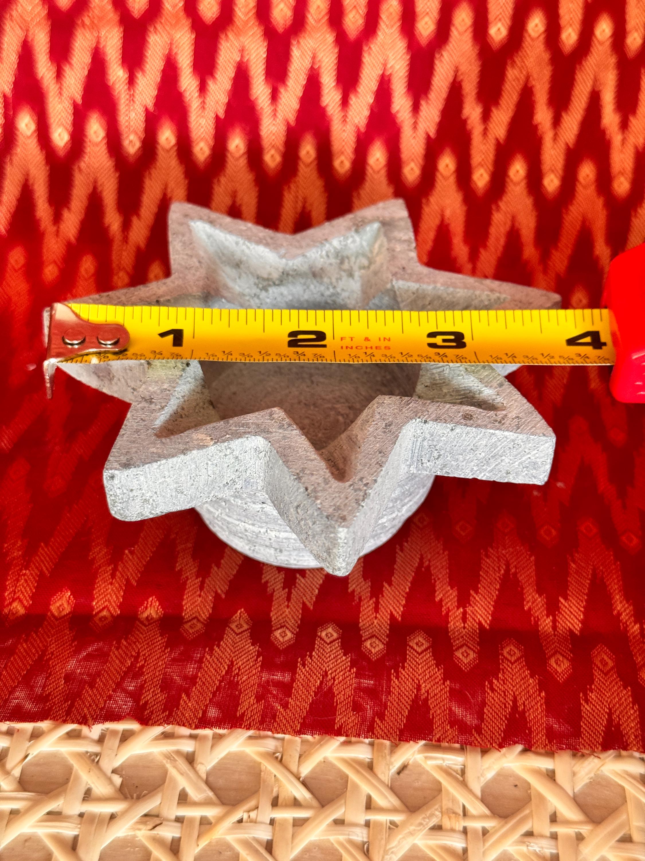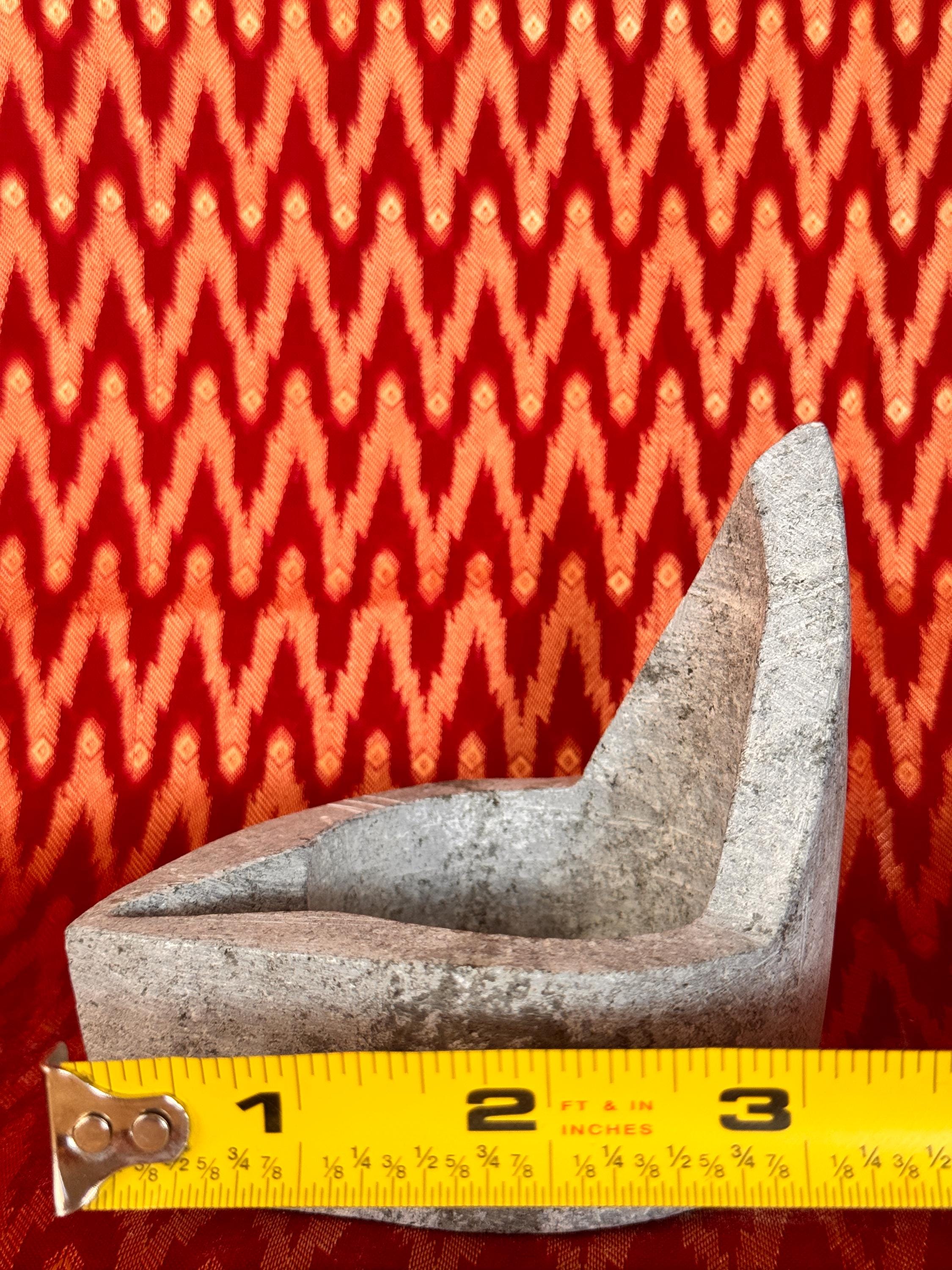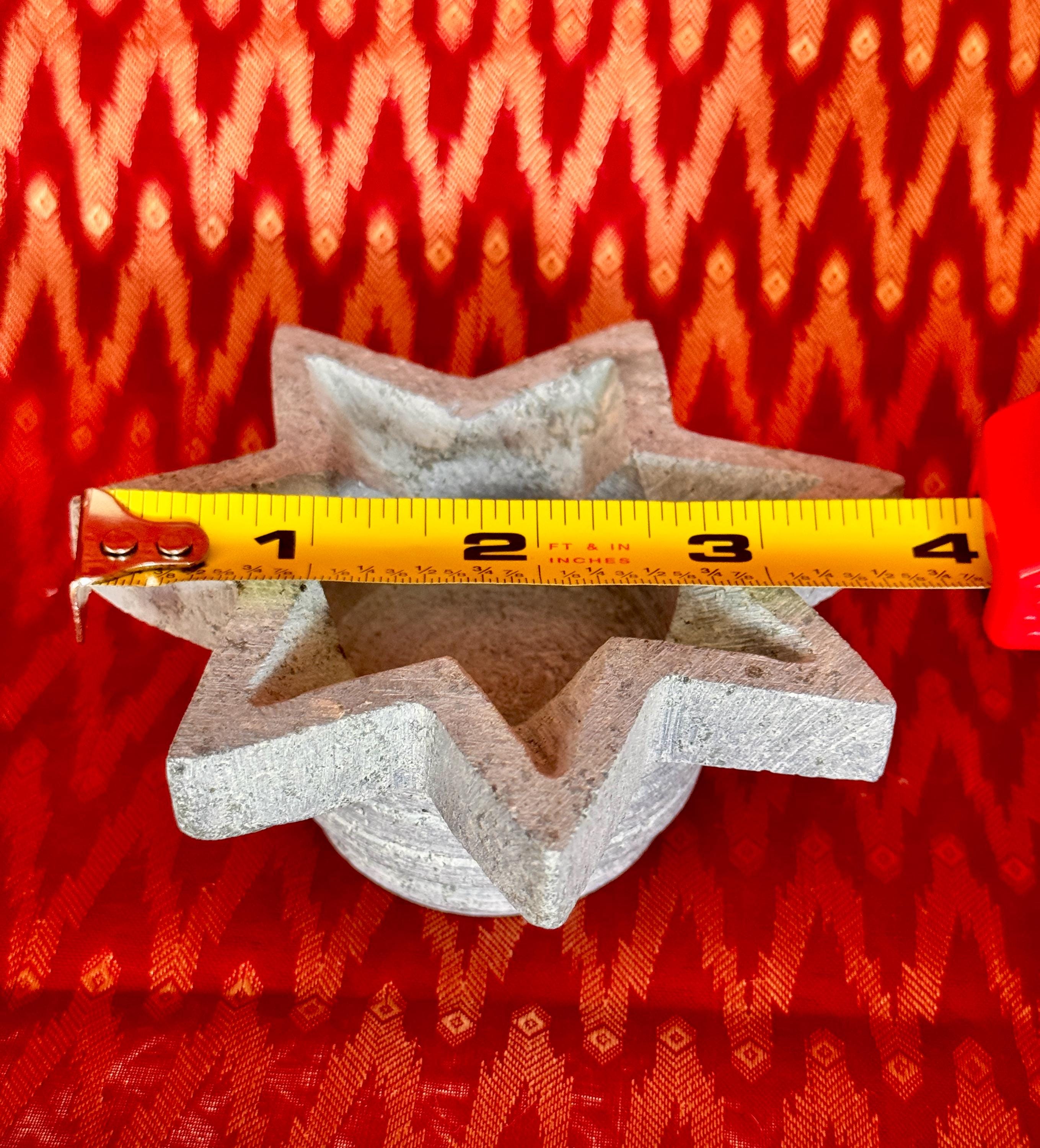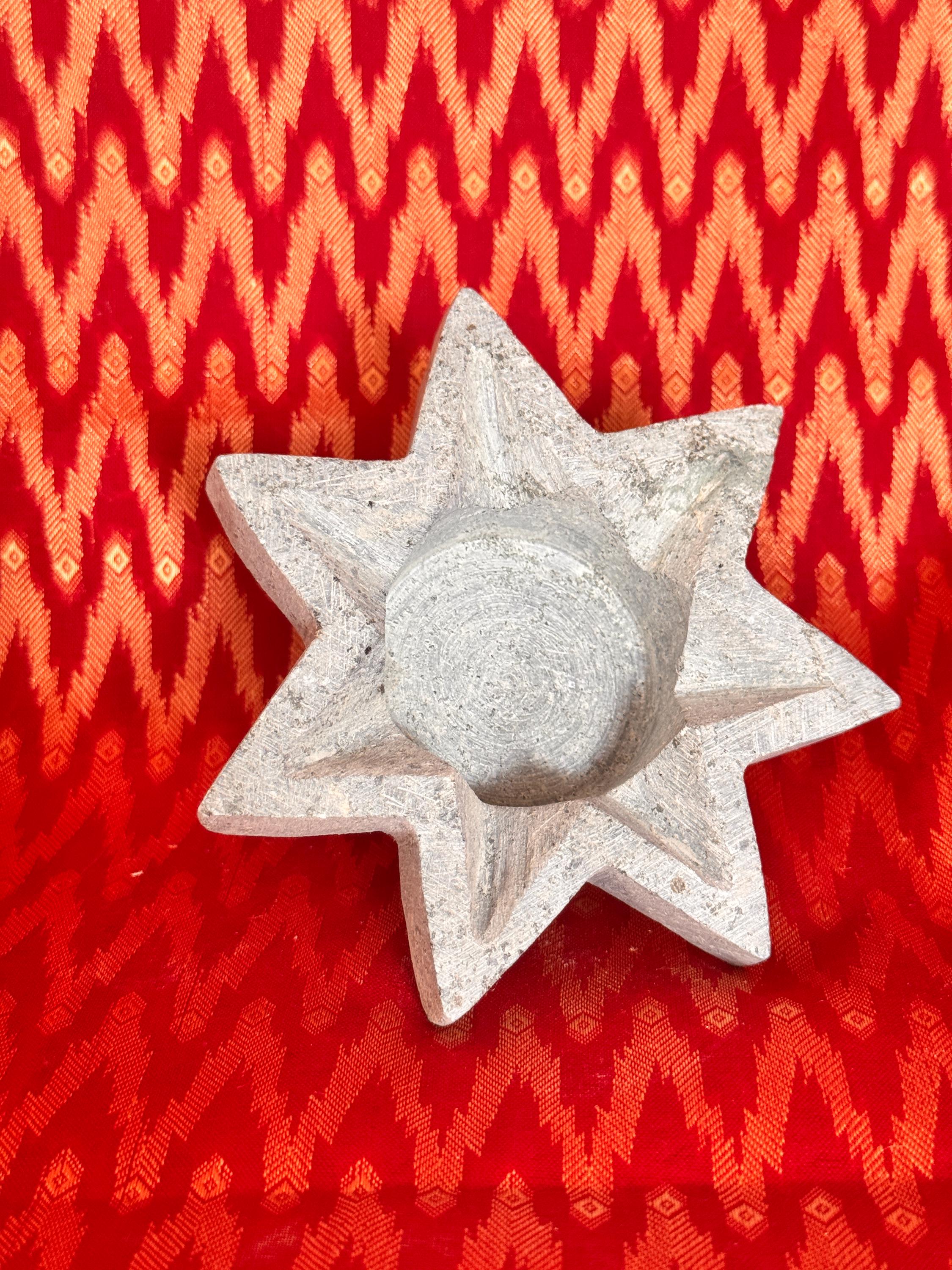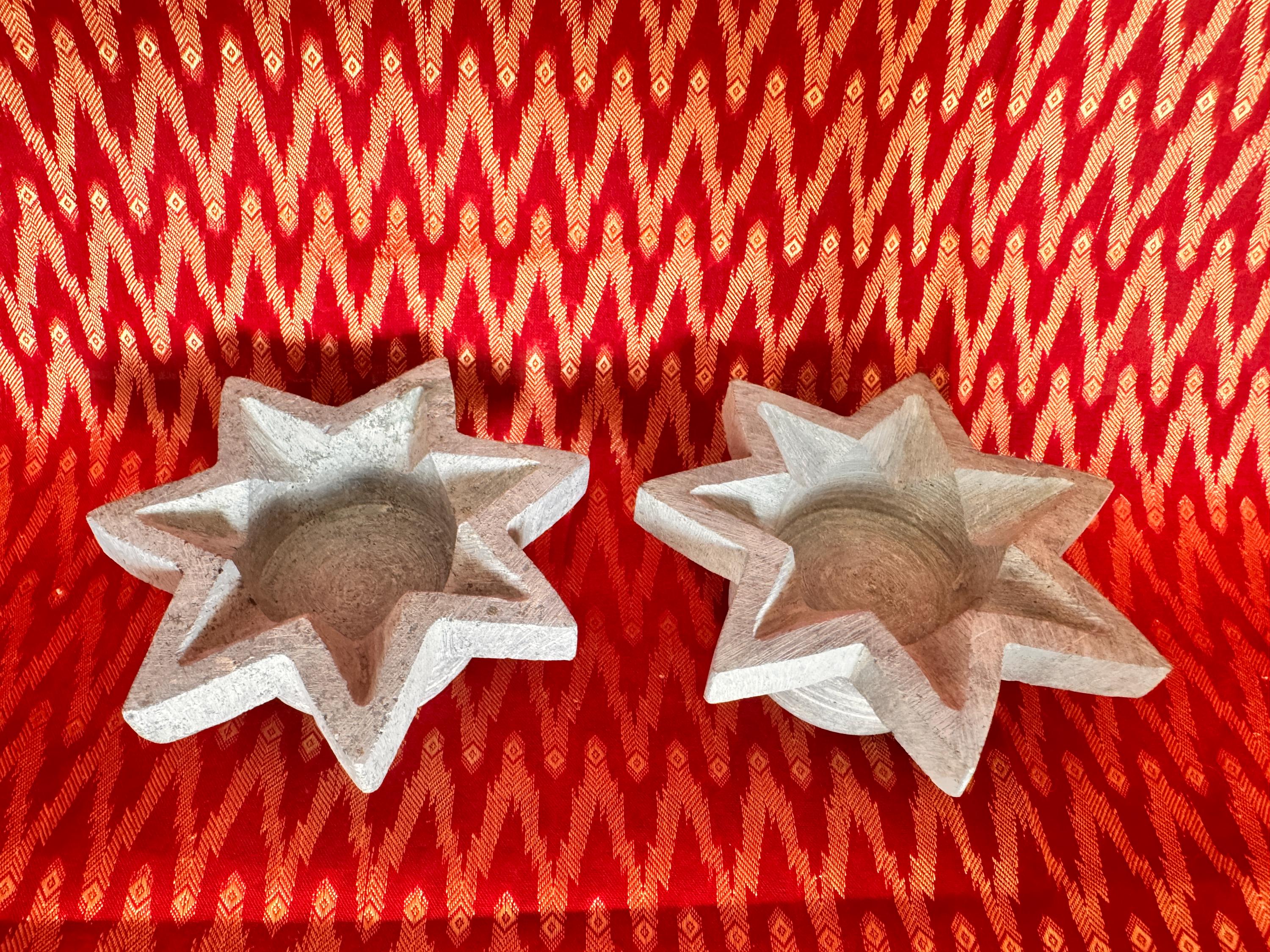 Minimalist and contemporary design - natural soapstone lamps. Soapstone (locally known as maakkal or kalchatti) is a soft, heat-resistant stone. Soapstone’s ability to withstand high heat makes it ideal for oil lamps used in daily rituals at homes and long temple ceremonies. It is believed that lighting a lamp signifies the dispelling of darkness and ignorance. The flame represents jnana (wisdom) and the divine presence. Passed down generations, these lamps often carry ancestral blessings and are lit during auspicious occasions like weddings, housewarmings, and naming ceremonies. The use of natural stone and oil-based lighting aligns with eco-conscious, sustainable practices rooted in tradition. Contemporary artisans are reimagining soapstone lamps with minimalist or heritage-inspired designs for modern homes. Listing is for one lamp/diya with variations as indicated below in dropdown.