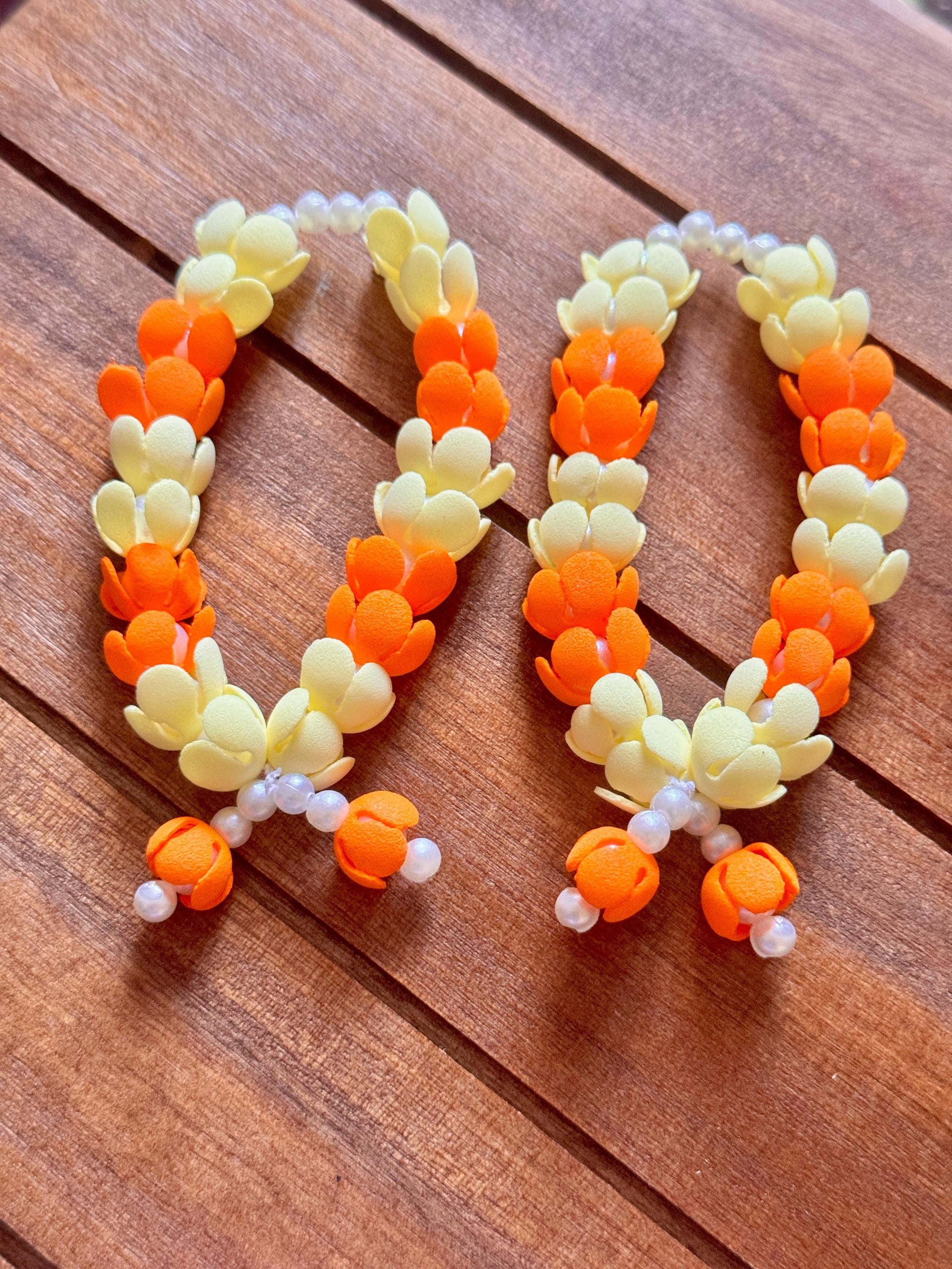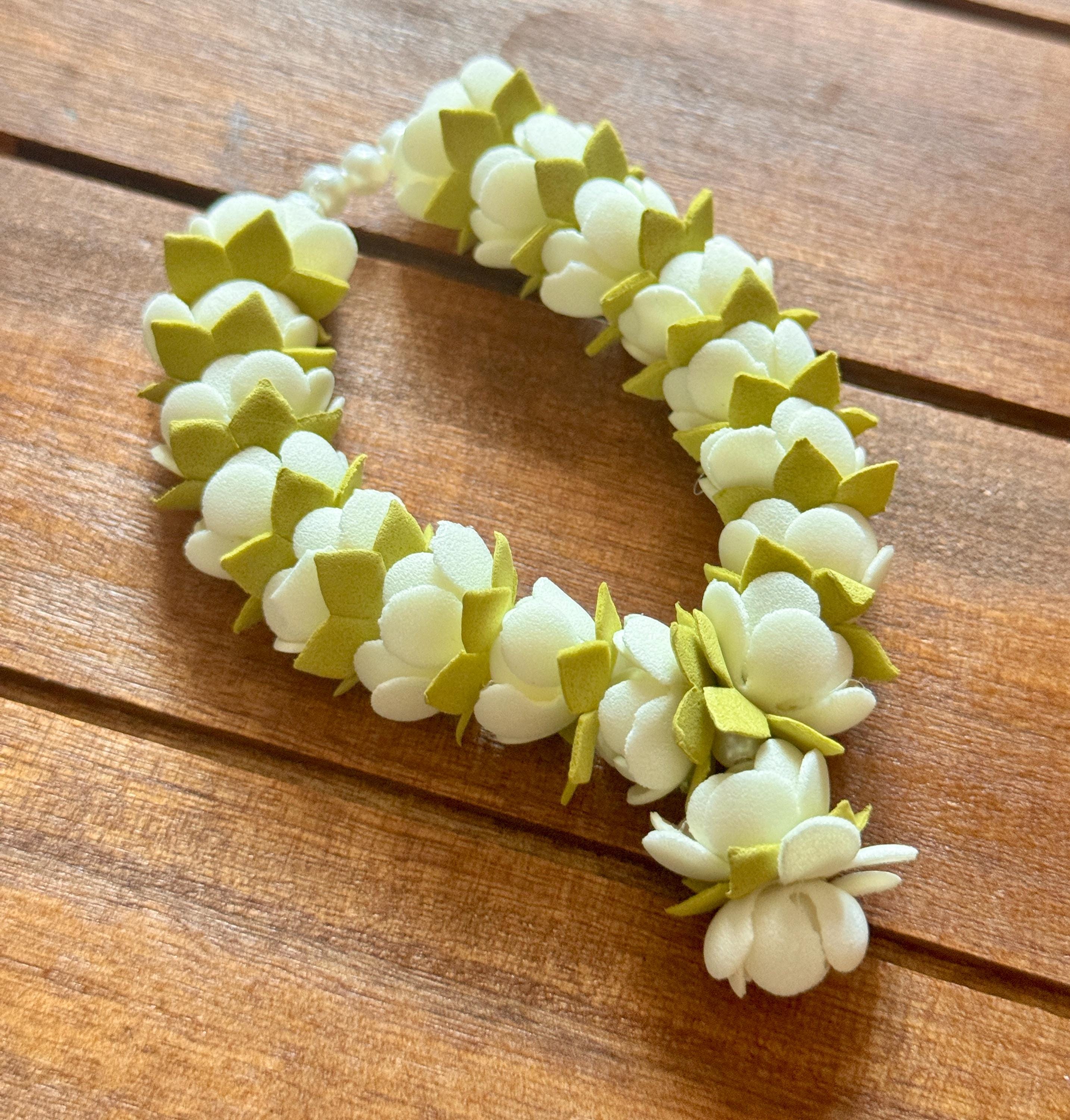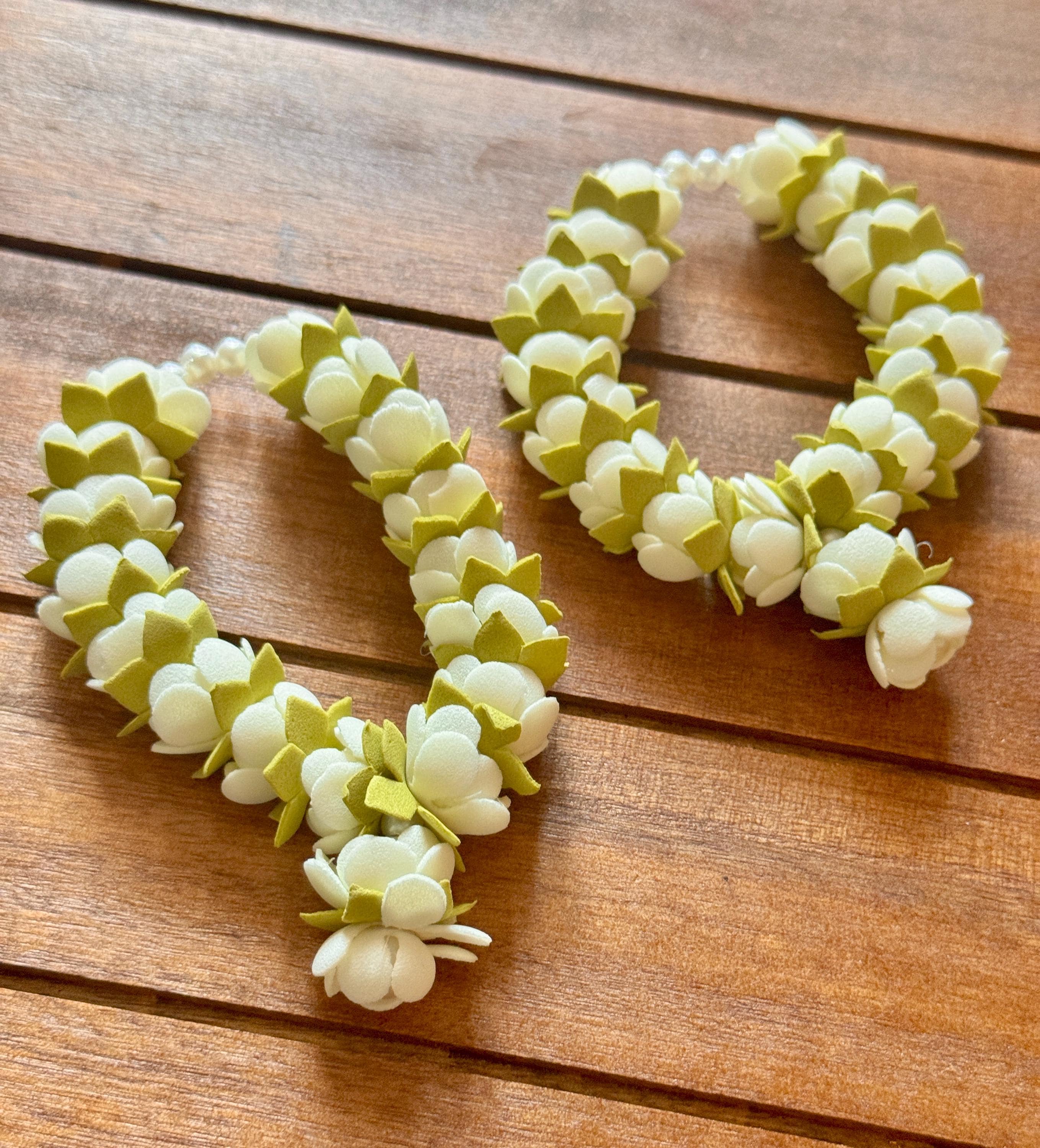 Realistic flowers to adorn idols/small figurines. Perfect for gifting or puja. You will be amazed at the beautiful, bloomed flowers strung together that is so realistic. Experience the delicate beauty of our very beautiful mala/small garlands. Expertly crafted to mimic natural flowers/buds, this string adds an authentic touch to your décor or traditional attire.