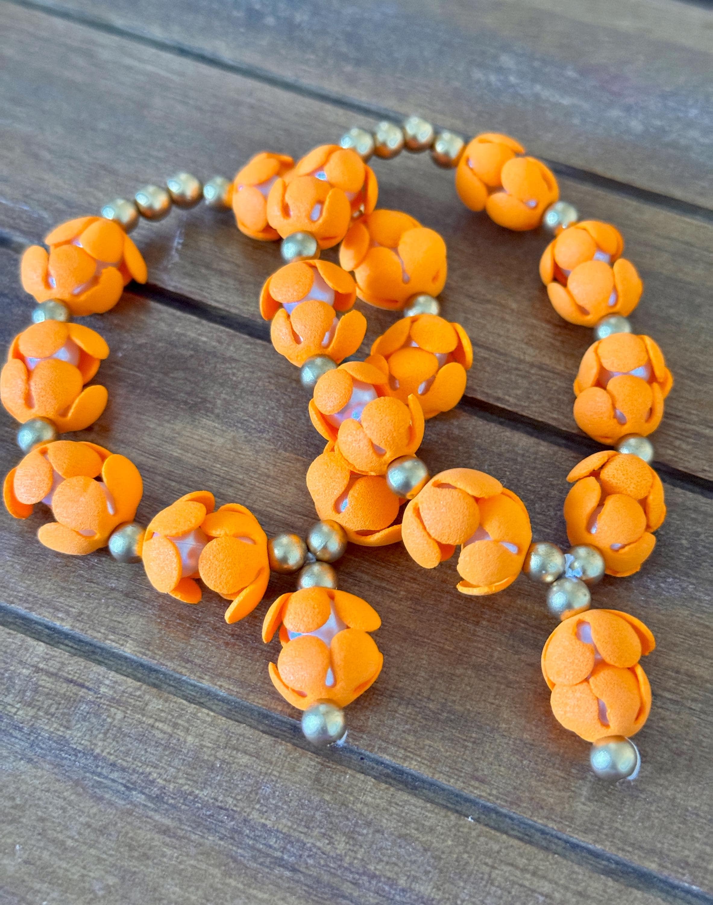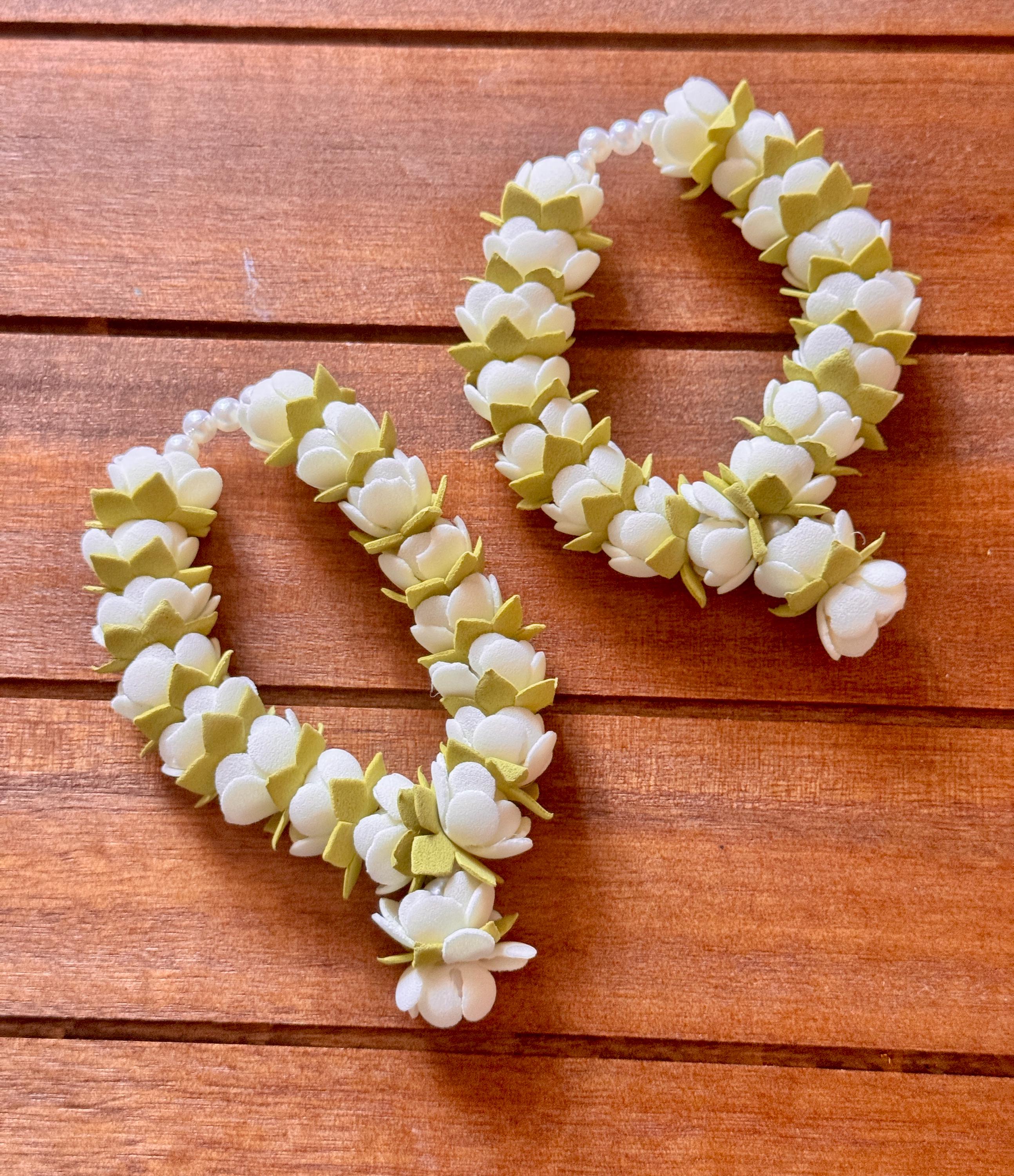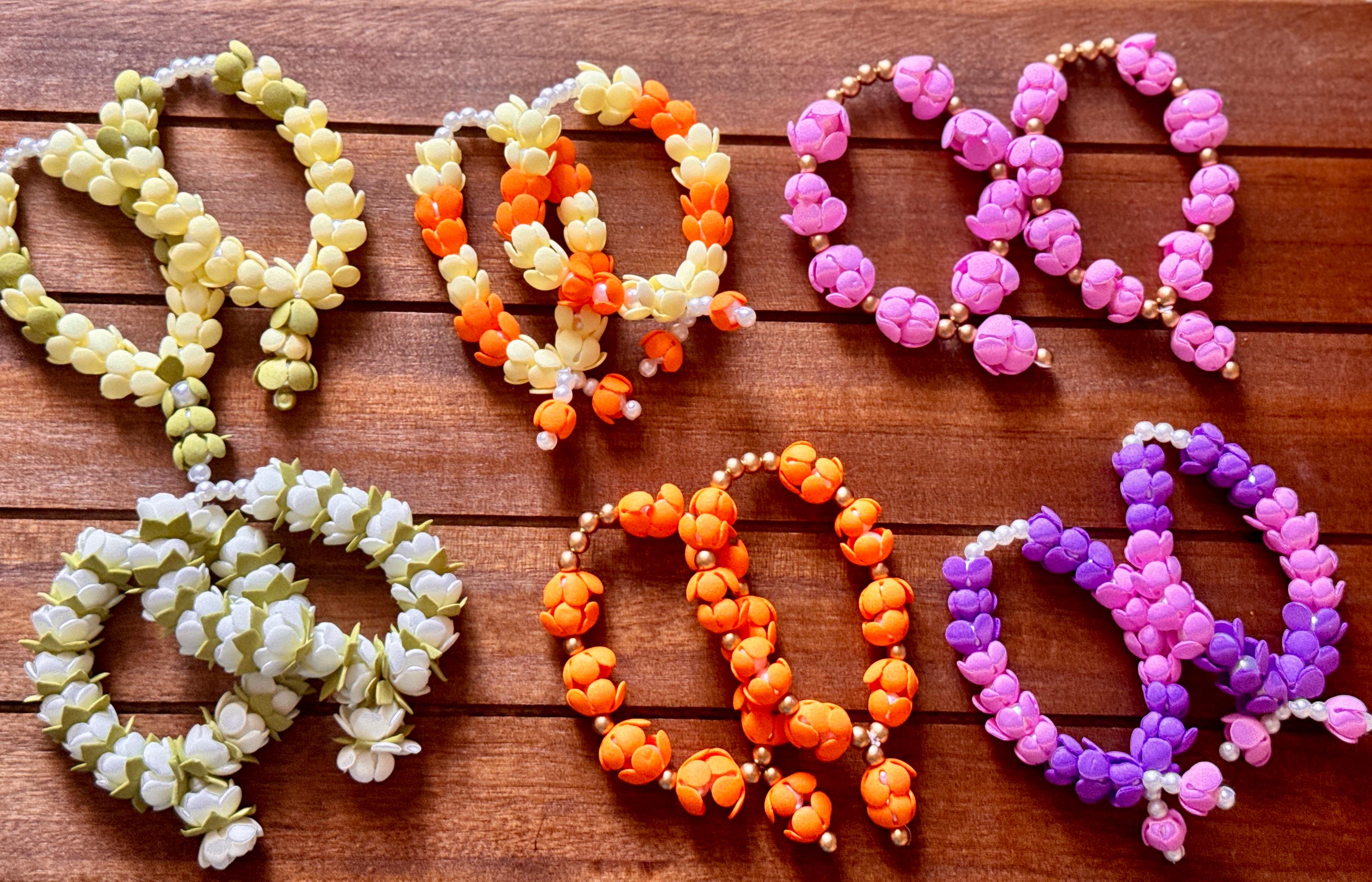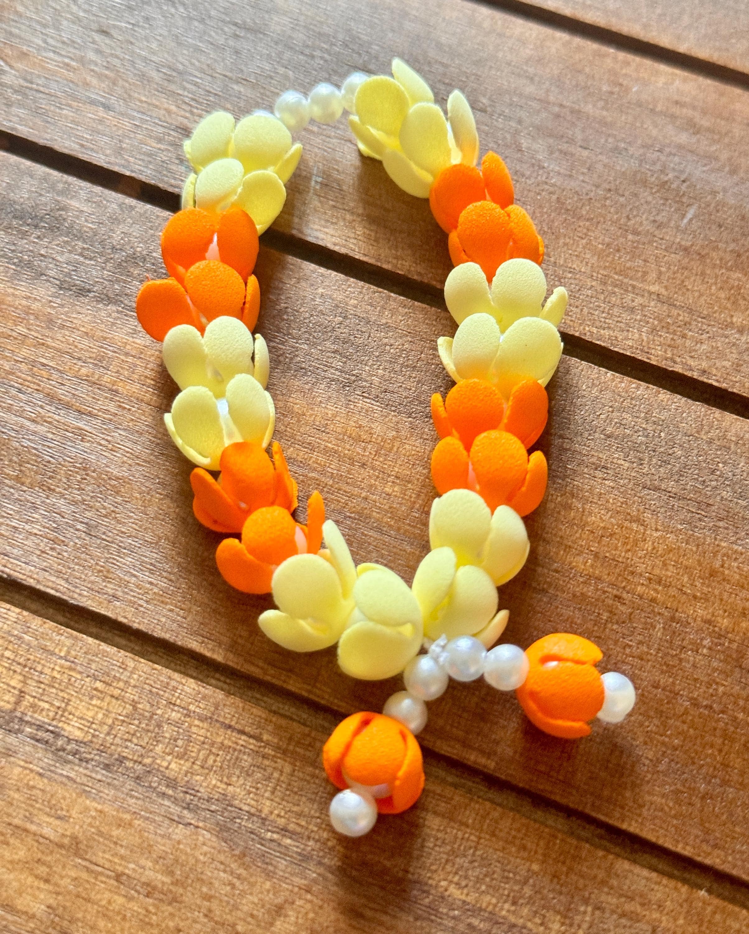 Realistic flowers to adorn idols/small figurines. Perfect for gifting or puja. You will be amazed at the beautiful, bloomed flowers strung together that is so realistic. Experience the delicate beauty of our very beautiful mala/small garlands. Expertly crafted to mimic natural flowers/buds, this string adds an authentic touch to your décor or traditional attire.