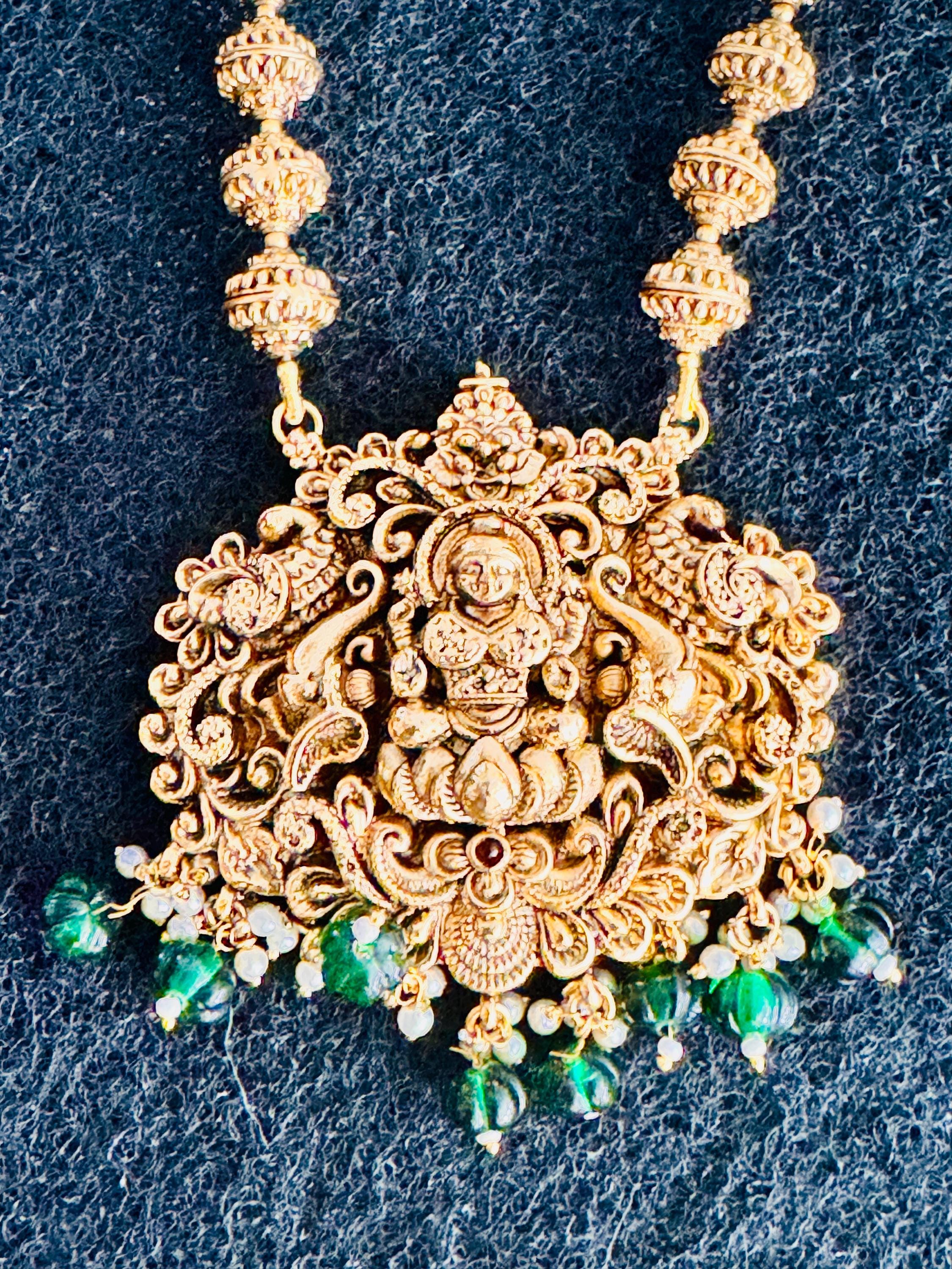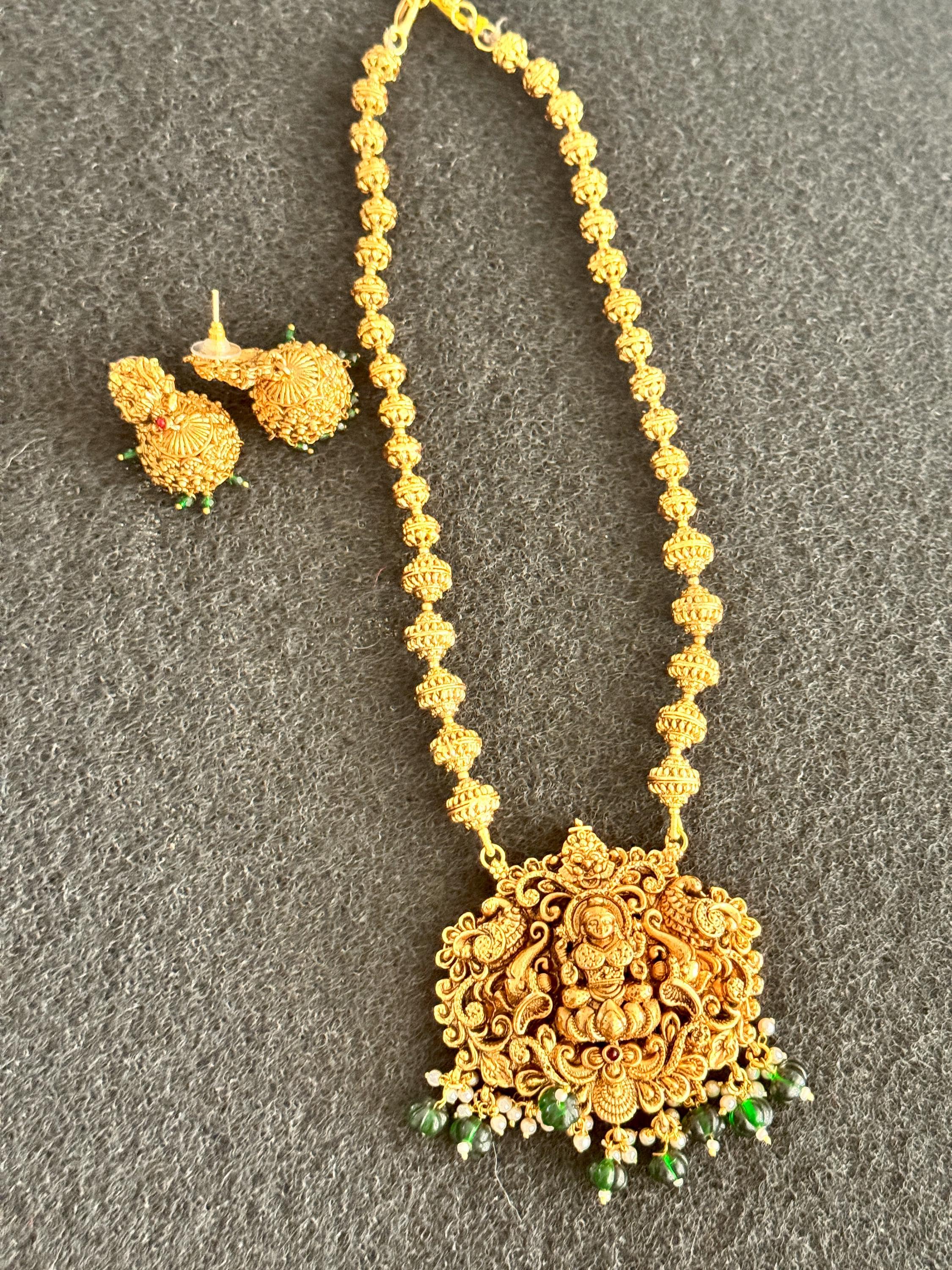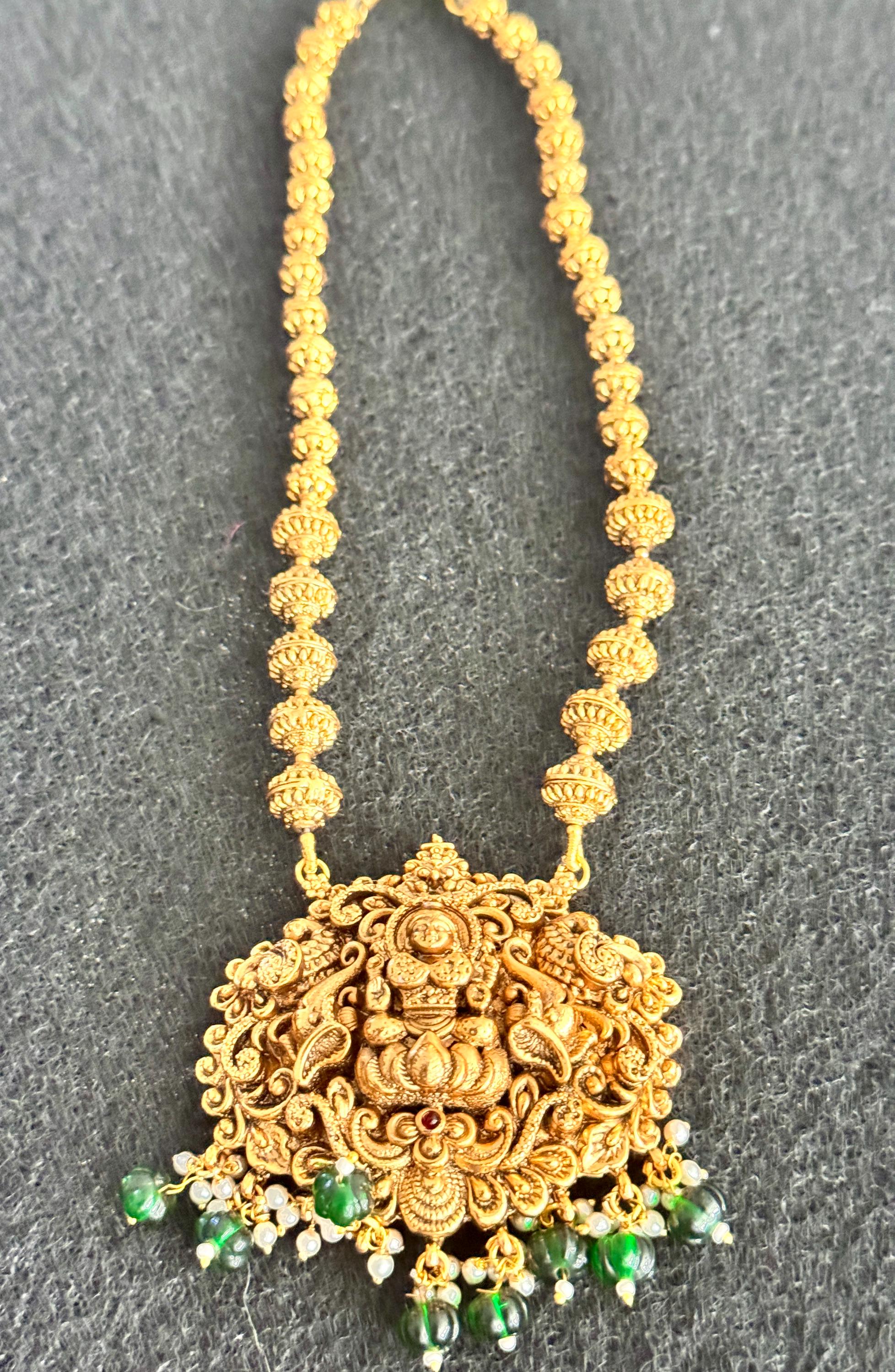 Gold Finish Lakshmi Pendant Set - Indian Imitation Jewelry