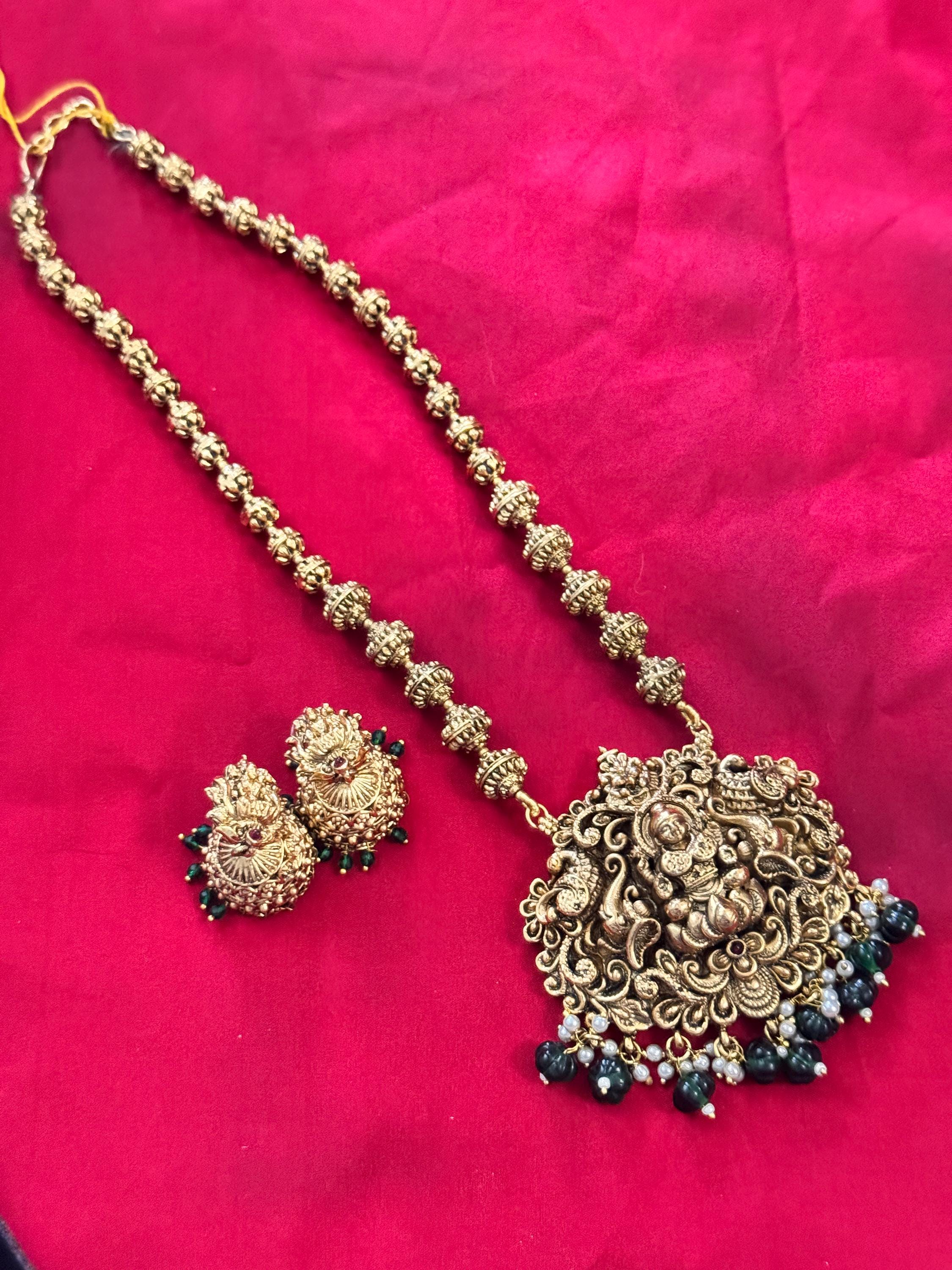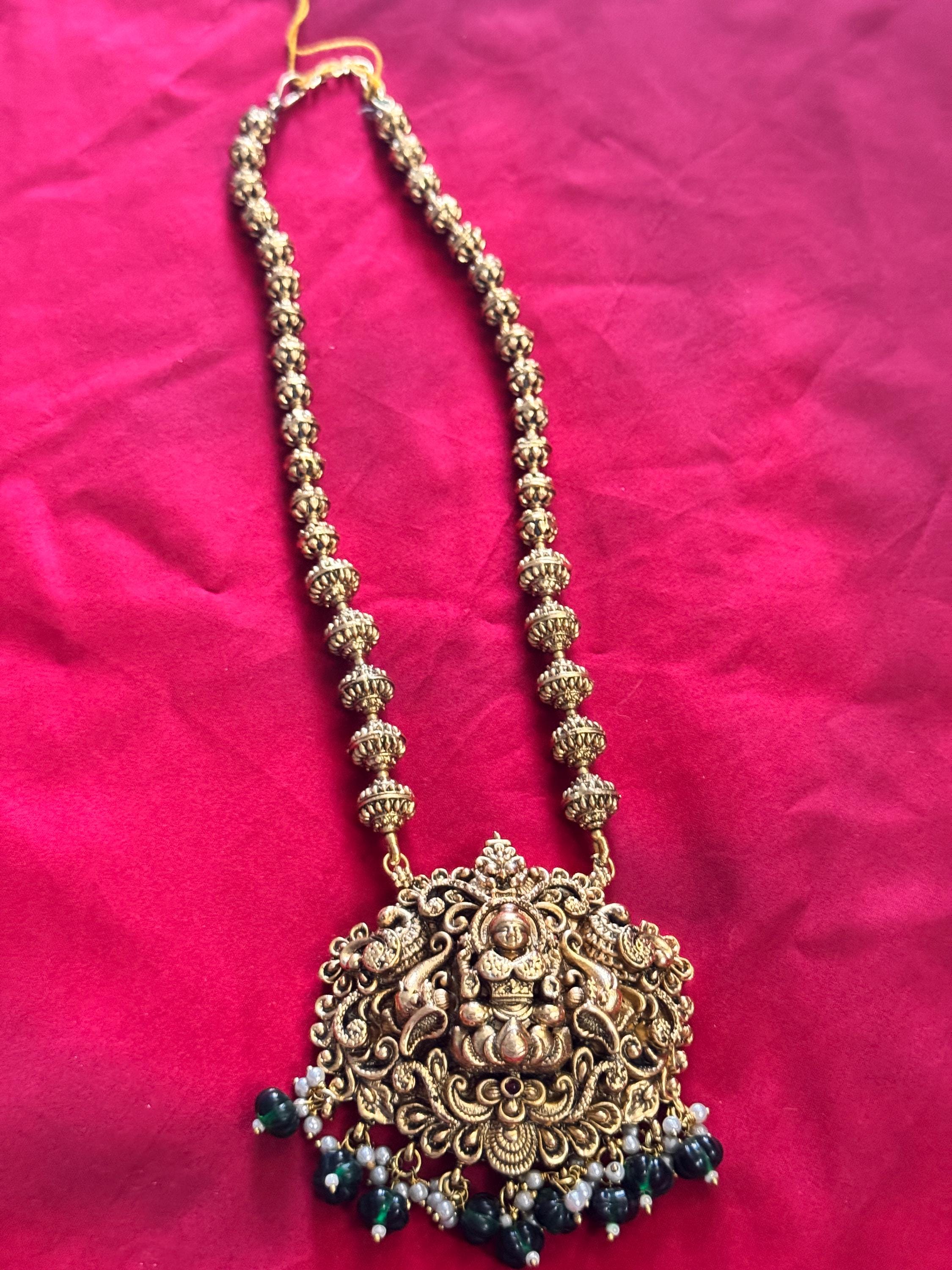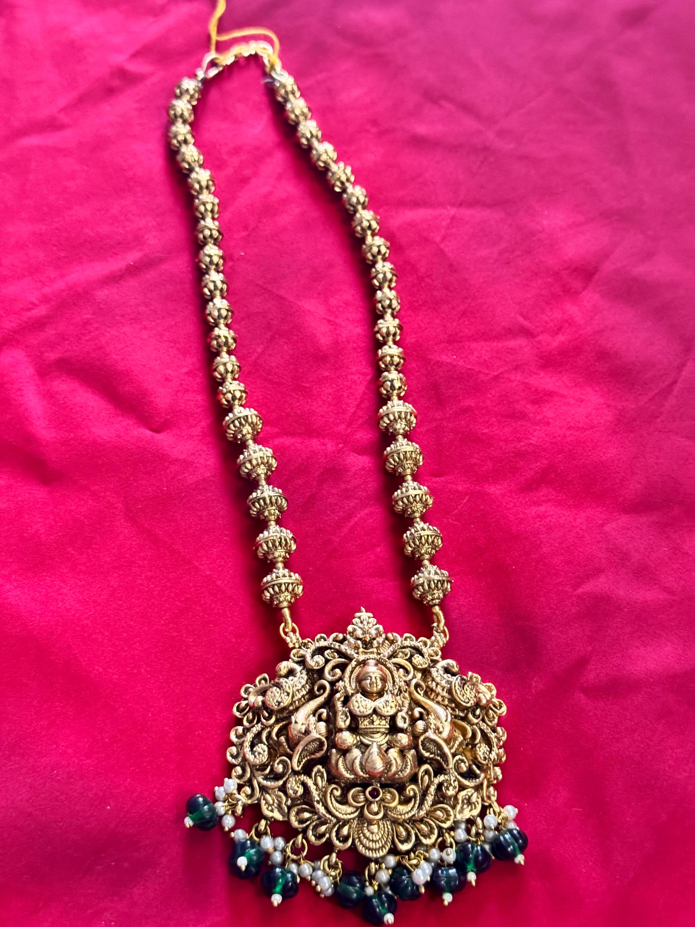 Gold Finish Lakshmi Pendant Set - Indian Imitation Jewelry