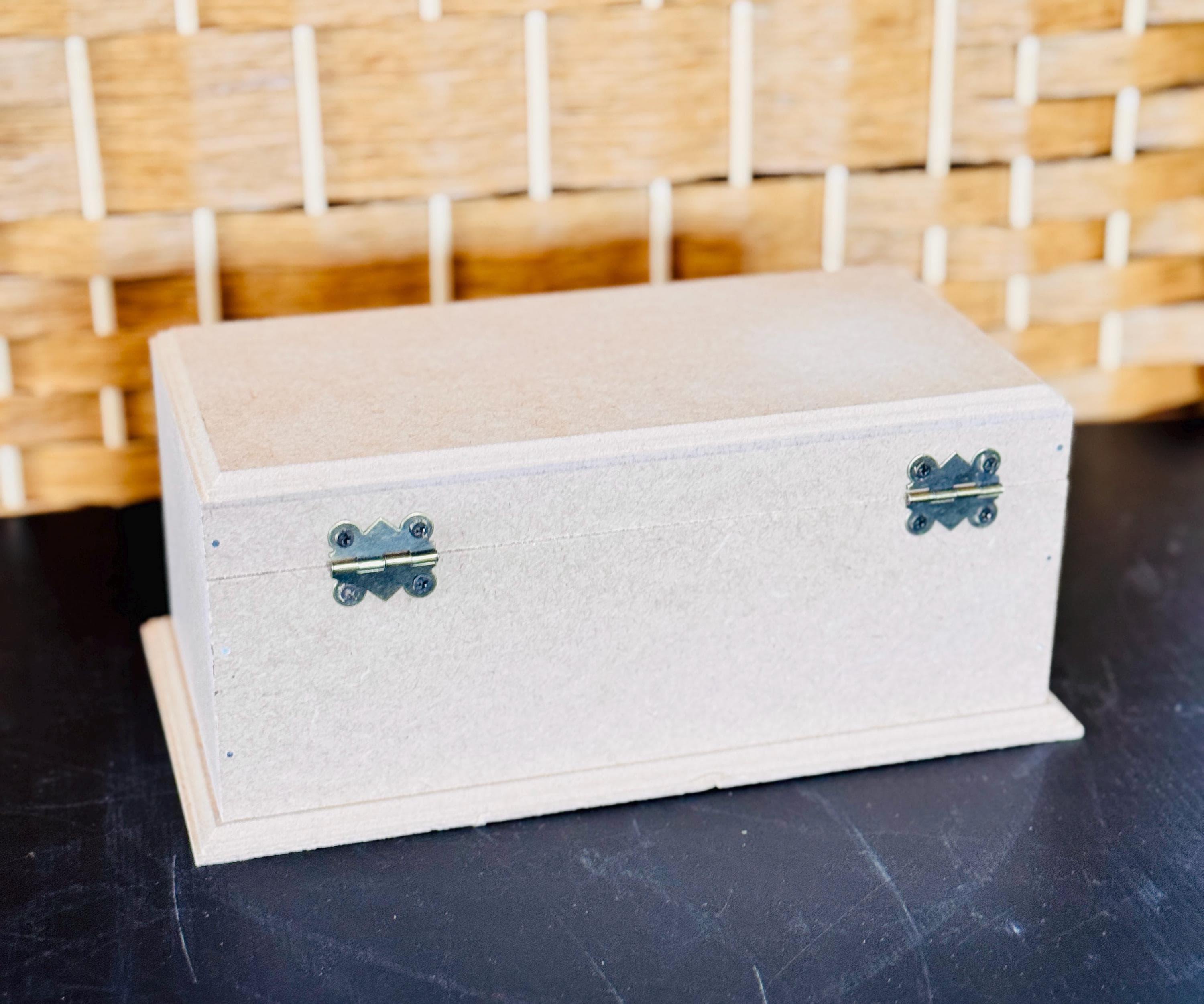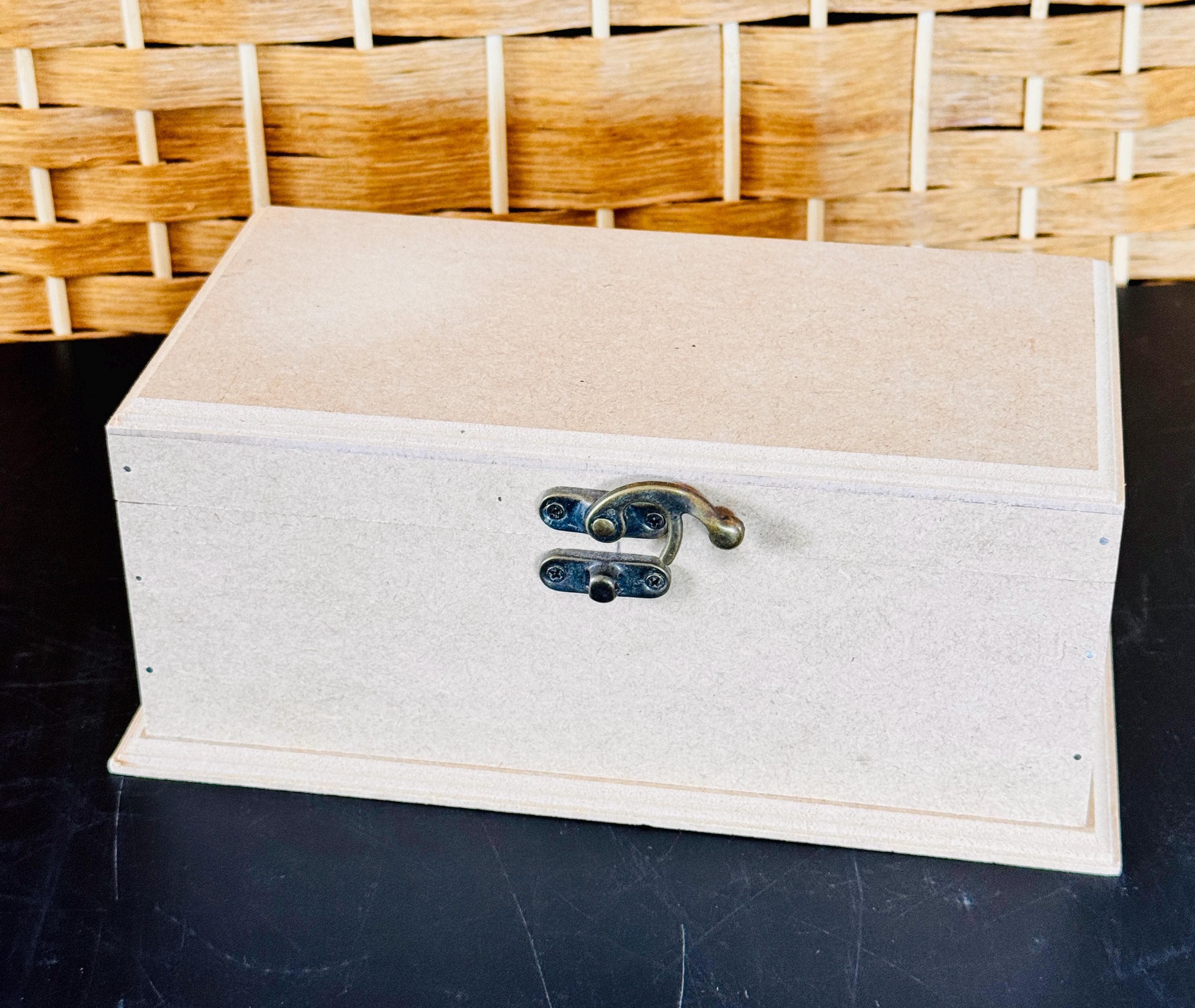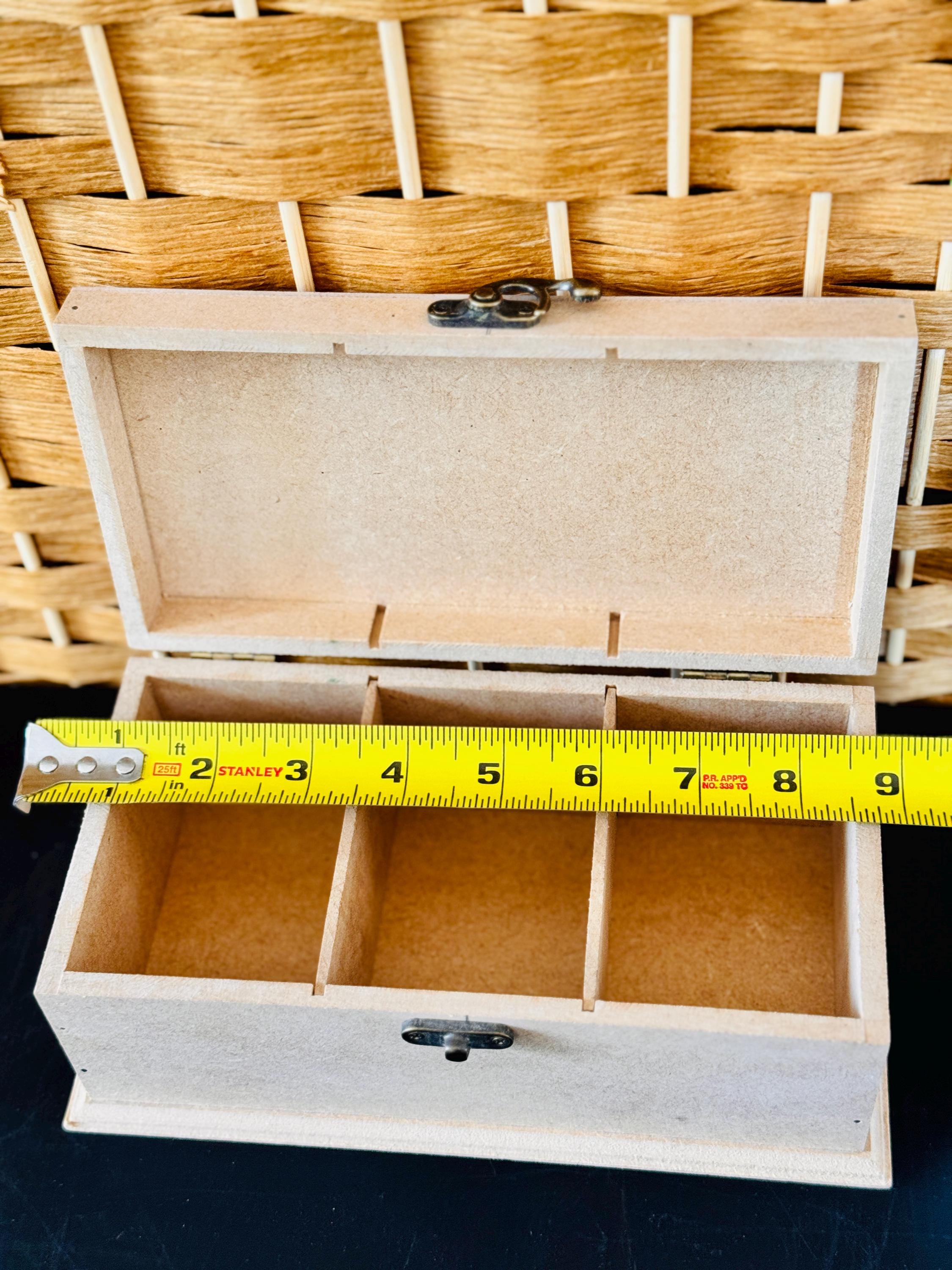 Beautiful unfinished jewel/watch box for your crafting needs. Paint it, decorate it or add a beautiful decoupage to accentuate its look. Get crafty!