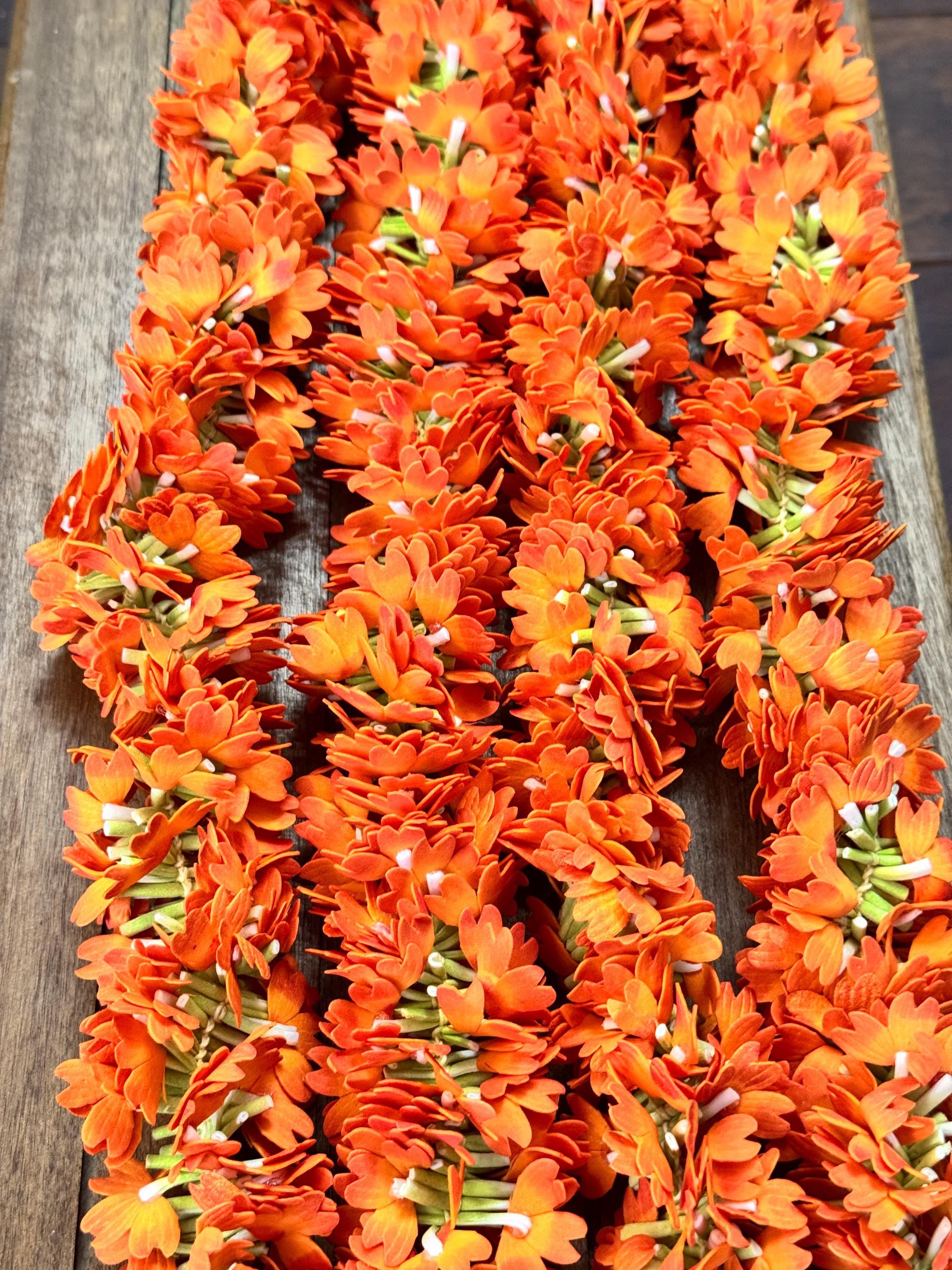 Listing is for one quantity of 16 inches flower string: Kanakambaram /Crossandra variety. For other varieties please check our listing under "Jasmines" for more options. You will be amazed at the beautiful, bloomed flowers strung together that is so realistic. Experience the delicate beauty of our very beautiful - Kanakambaram flower String, measuring 16 inches (ONE STRING). Expertly crafted to mimic natural jasmine flowers/buds, this string adds an authentic touch to your décor or traditional attire.