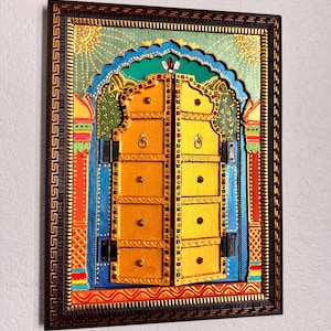If you have been looking to add a very aesthetic charm for your entryway, living room or puja room - look no further! Each piece is handcrafted with love drawing inspiration from traditional kolam, rangoli patterns with a touch of original Tanjore stones to make it stand out. Sealed/protected with non-toxic varnish to preserve the charm of this unique piece.