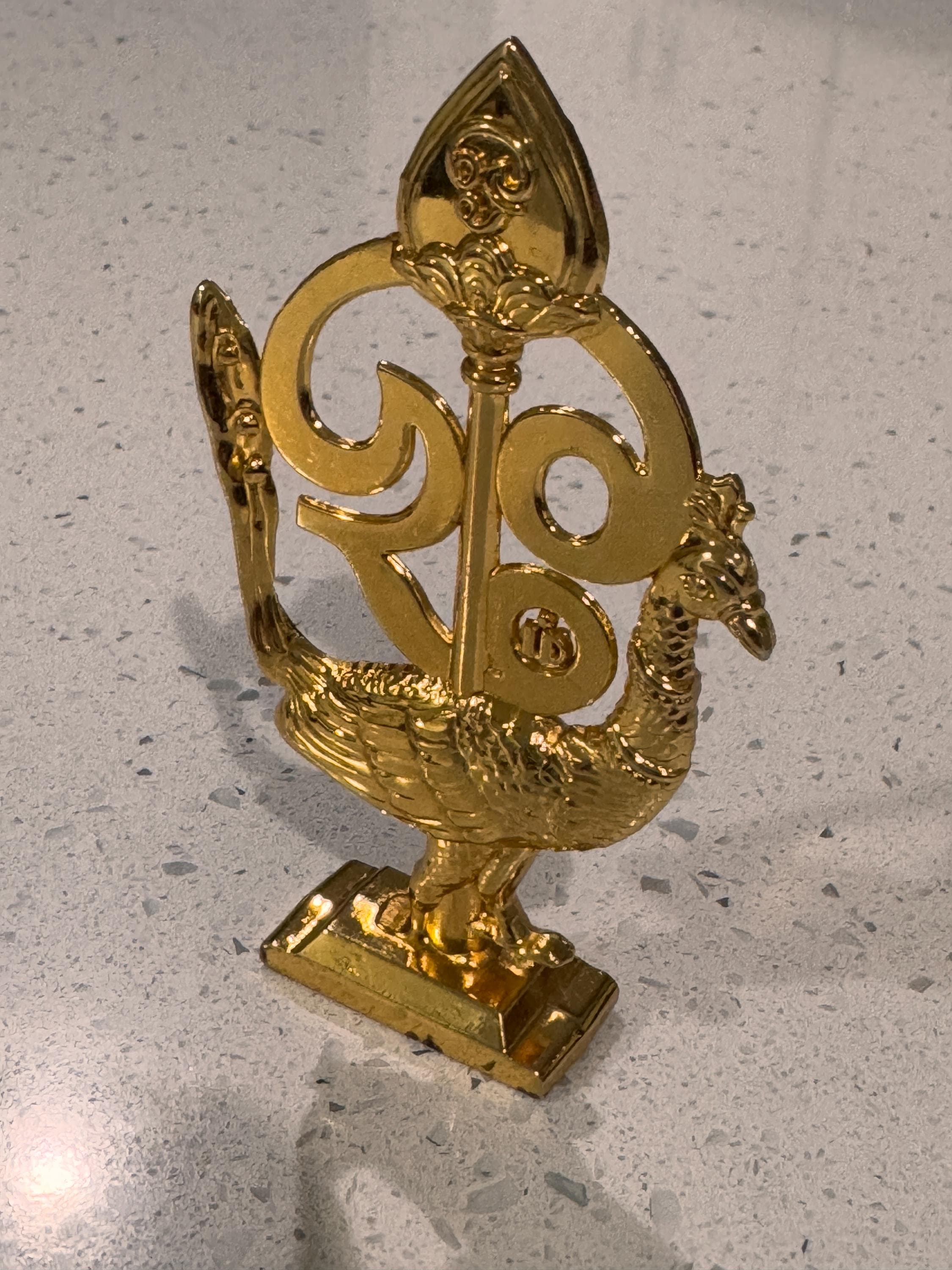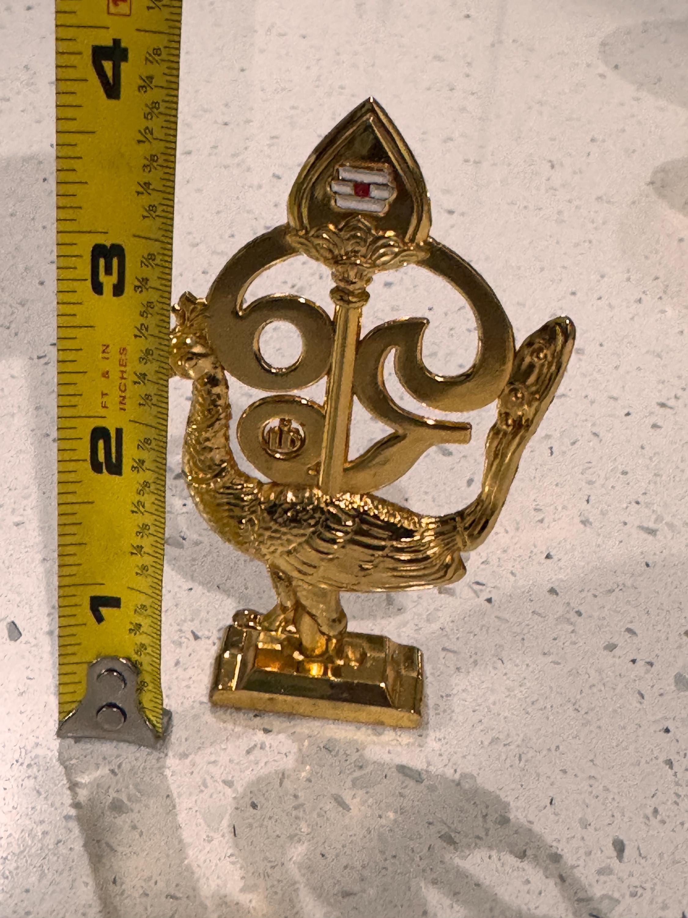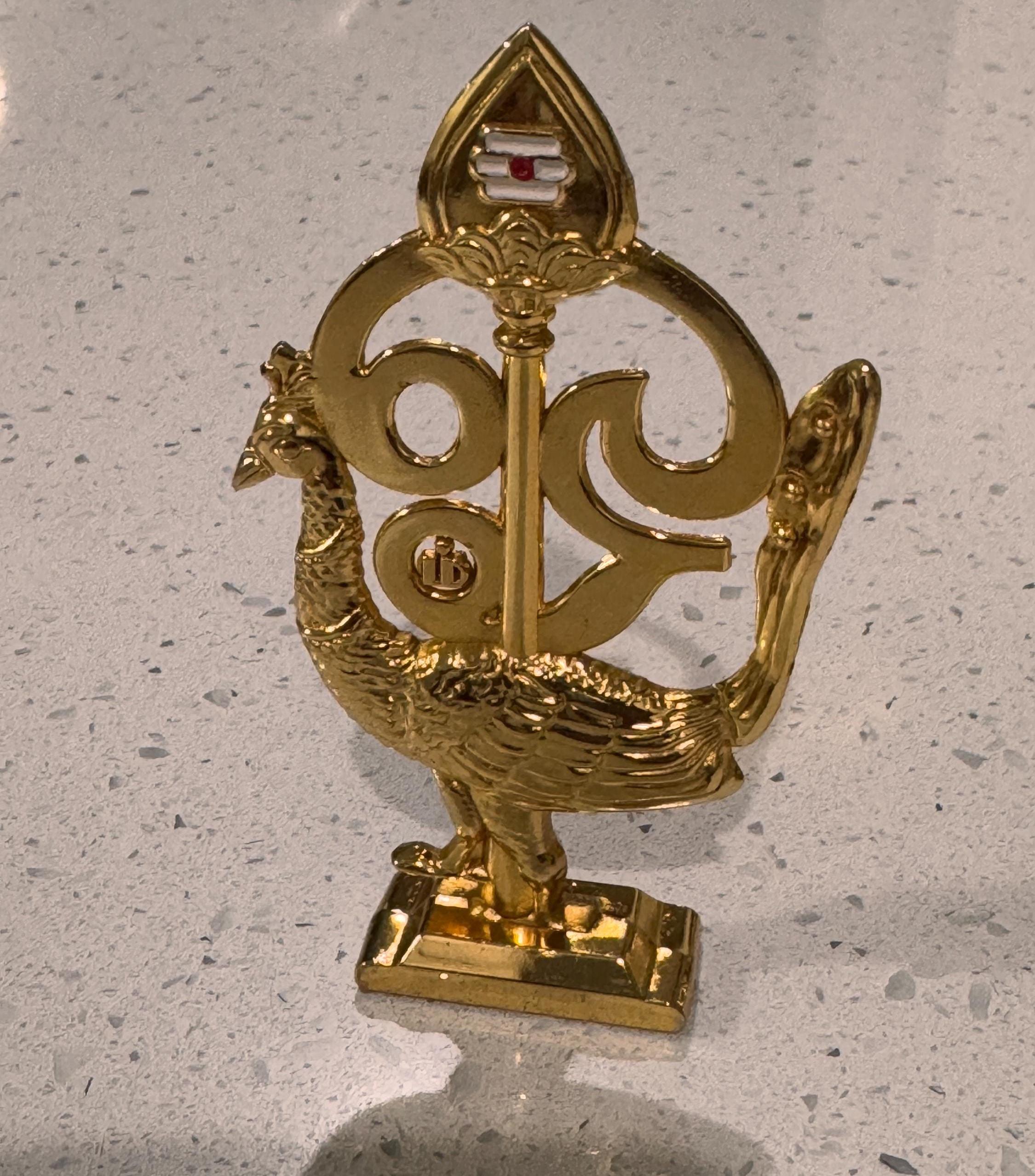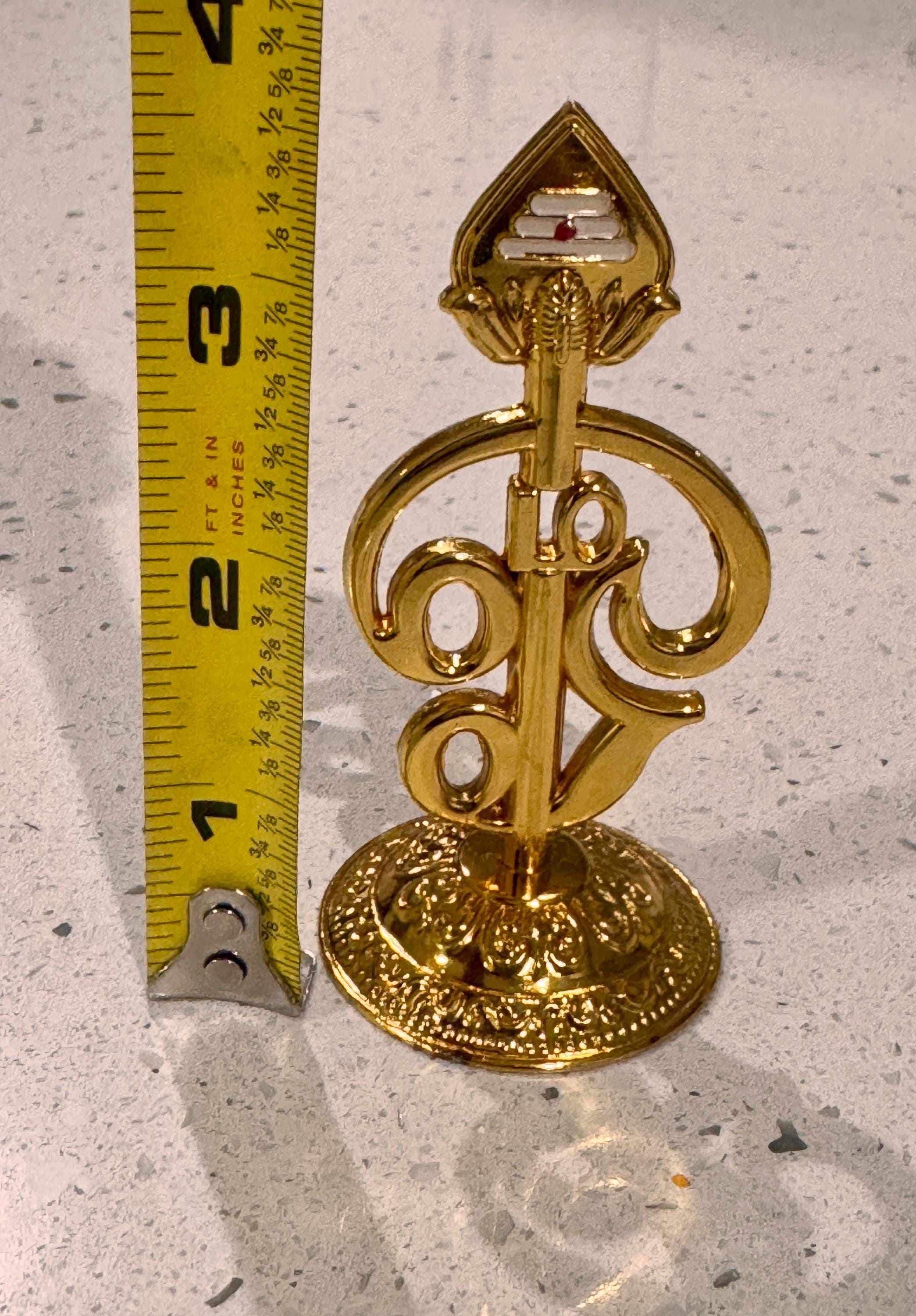 Murugar vel for prayer/gifting/special occasions. High quality steel with gold finish. Wipe gently with dry cloth for regular use/ maintenance. Please avoid exposure to water/ high moisture areas.