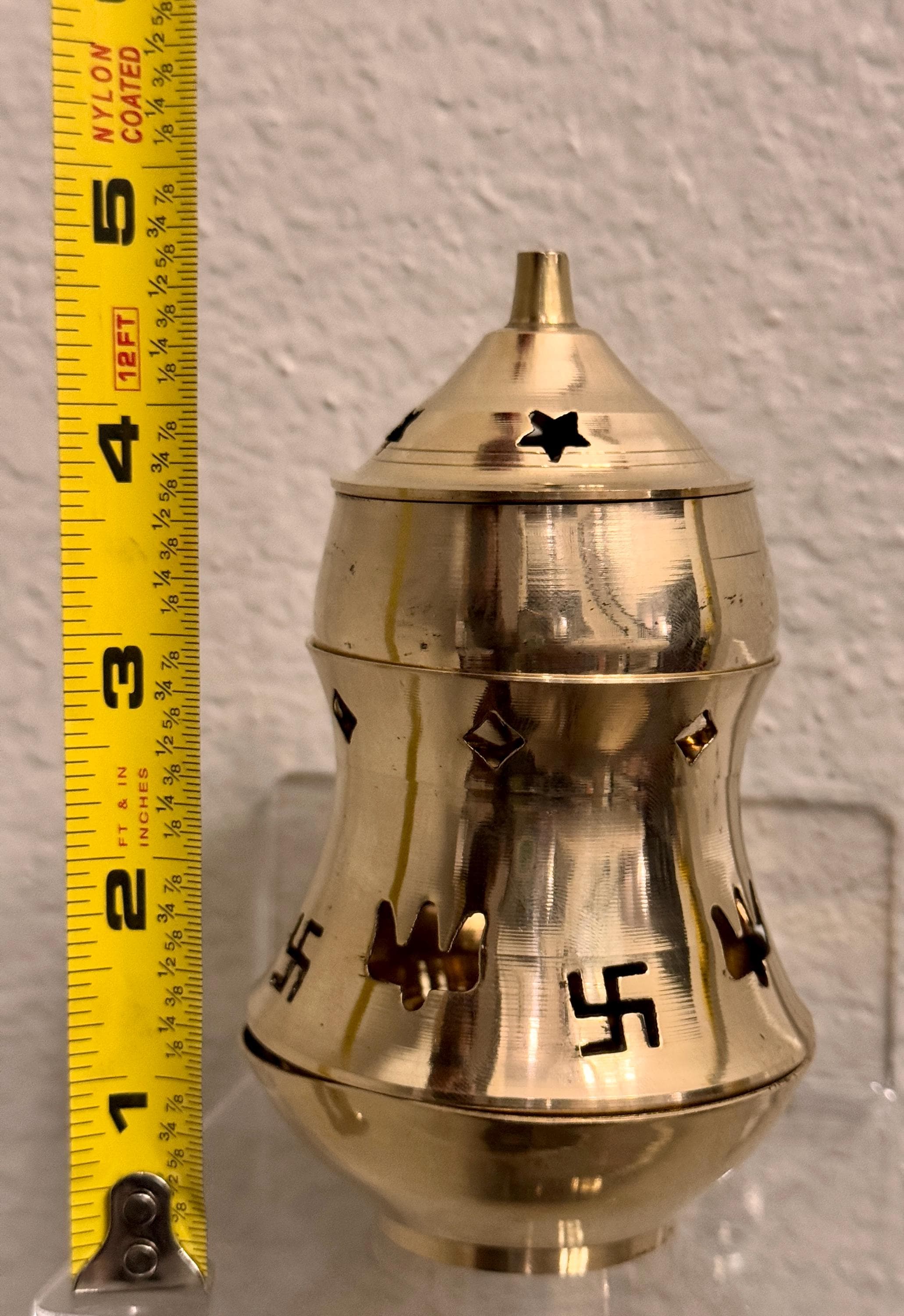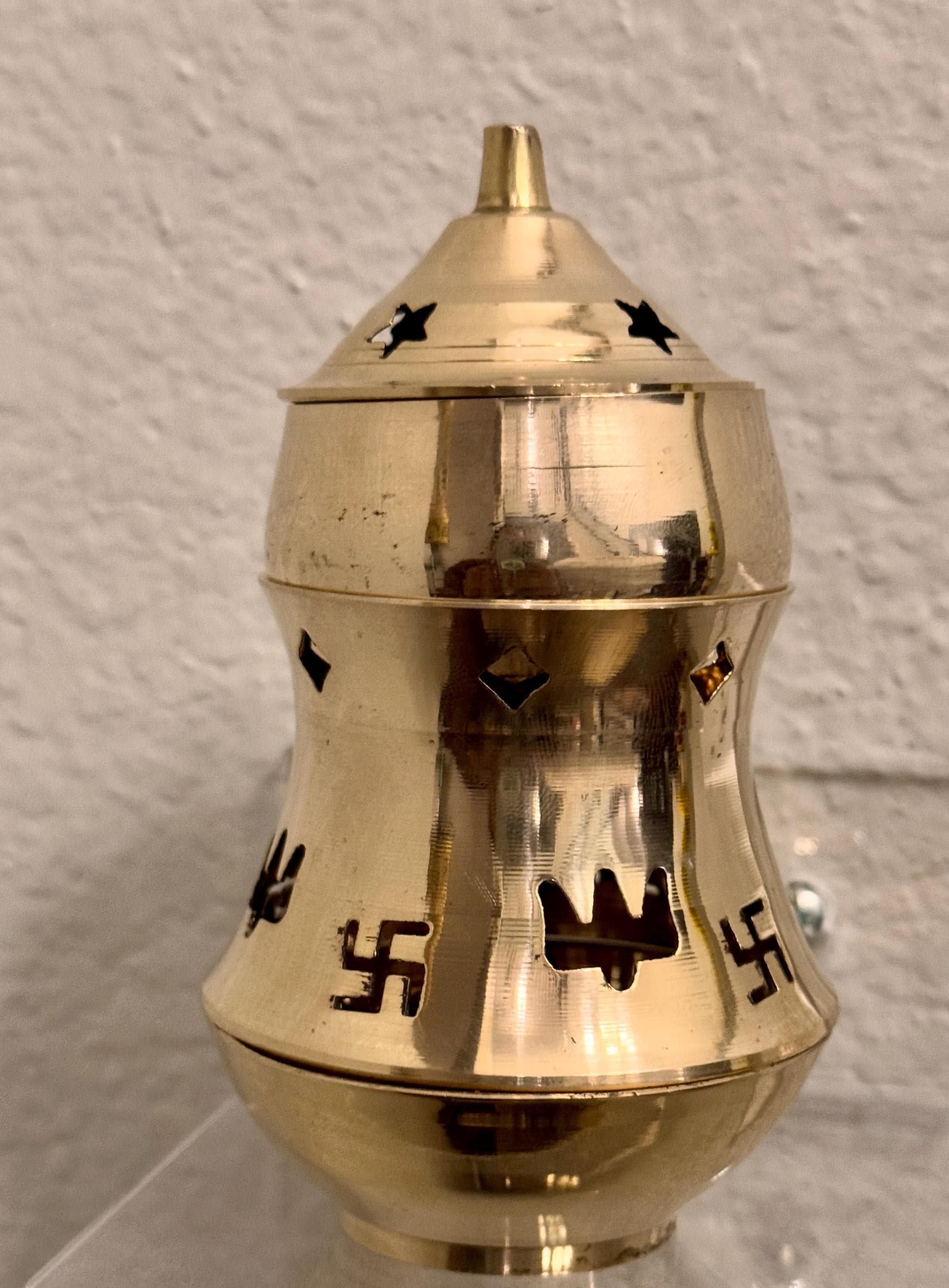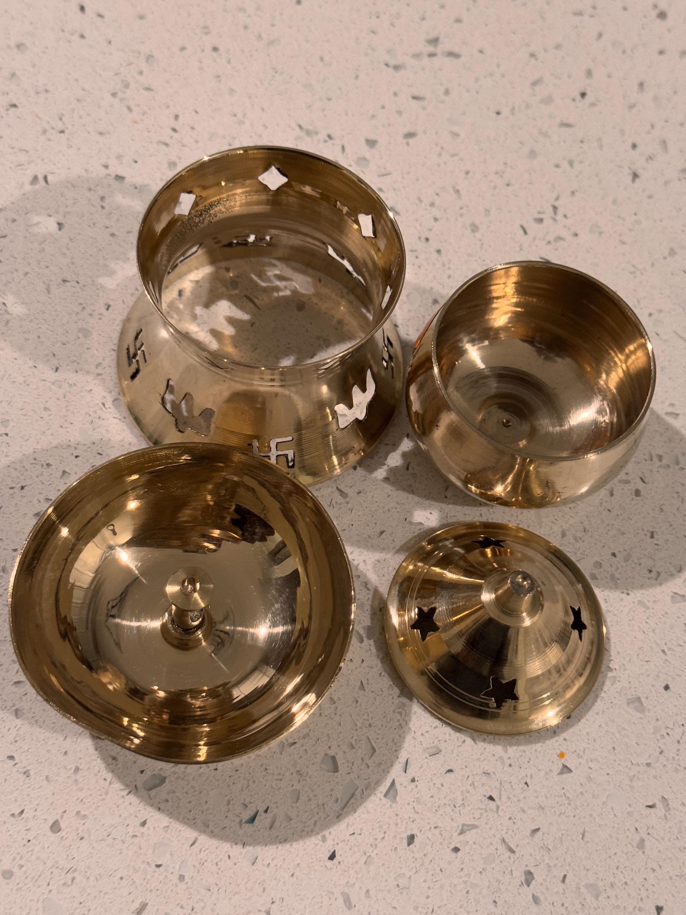 Material: Premium Brass Compact design, with a small bowl or holder to place camphor safely, styled as a diya (lamp) with beautiful detailing.