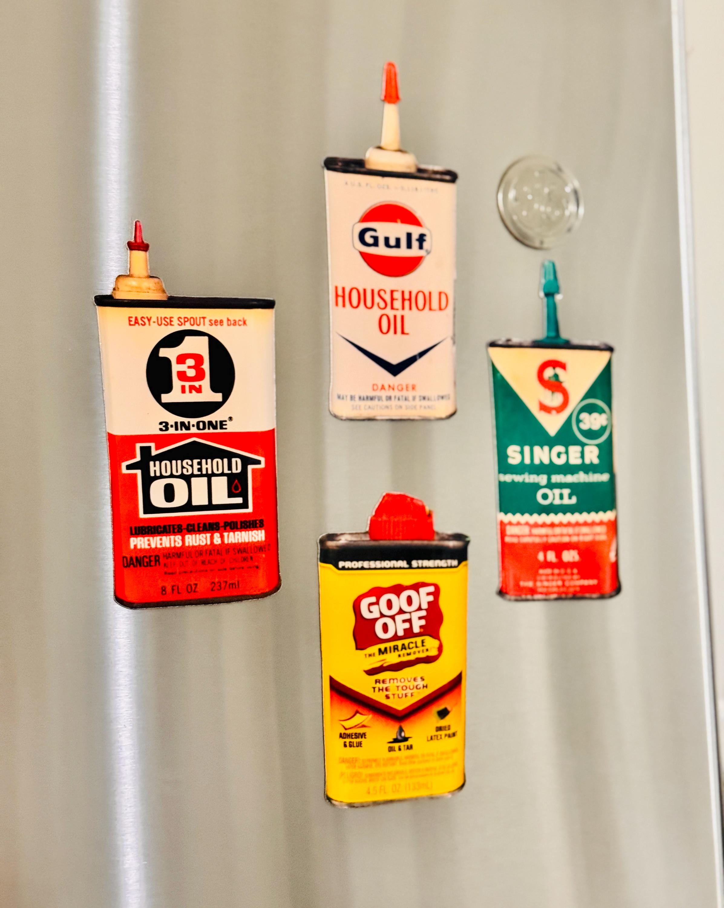 Bring a touch of nostalgia to your space with this vintage‑inspired magnet featuring the iconic Singer sewing machine oil can design and more! Perfect for collectors, makers, and anyone who loves the charm of retro packaging, this piece captures the look and feel of a bygone era — right down to the classic colors, typography, and 39¢ detail. These magnets are more than décor; they’re tiny time capsules. Stick them on your fridge, craft cart, sewing cabinet, or metal board to add personality and a hint of history to your everyday surroundings. They make wonderful gifts for sewing enthusiasts, vintage collectors, and anyone who appreciates unique, conversation‑starting accents. Each magnet is crafted to preserve the authentic retro vibe while offering a durable, modern finish — a perfect blend of old‑school charm and everyday usefulness. (We have even gone to the extent of capturing the rusted edges on these cans in our magnets to bring these to life!!)