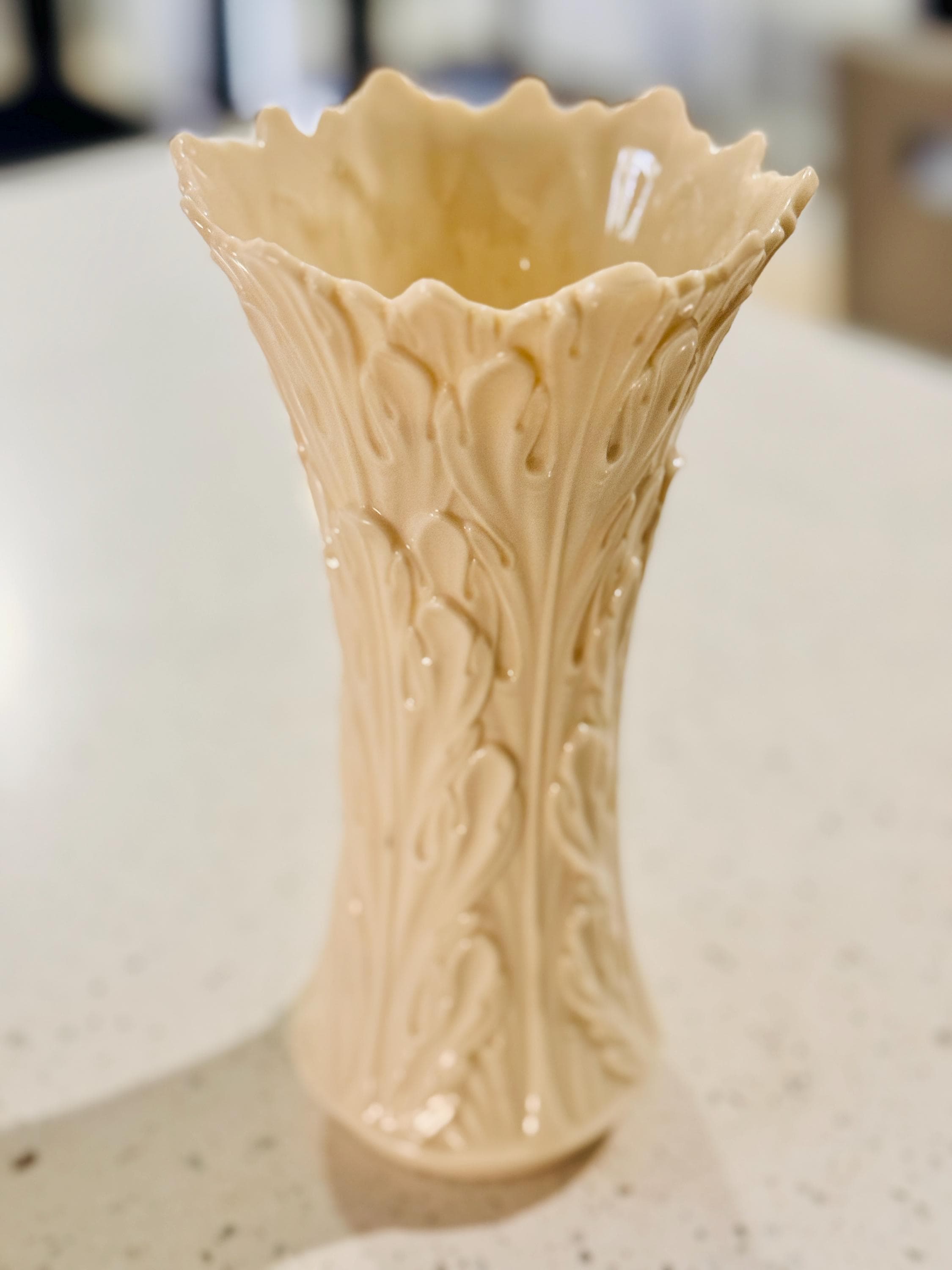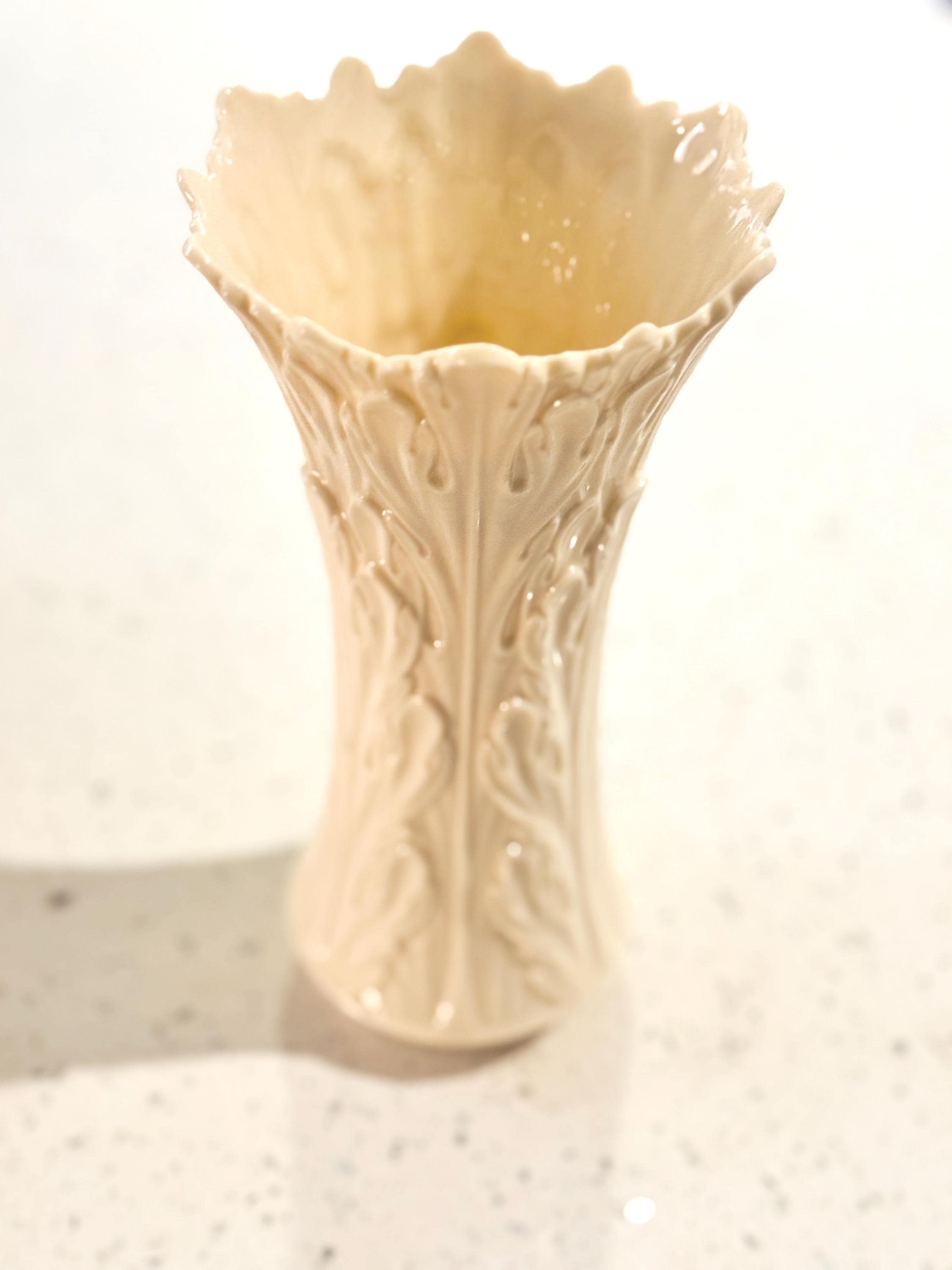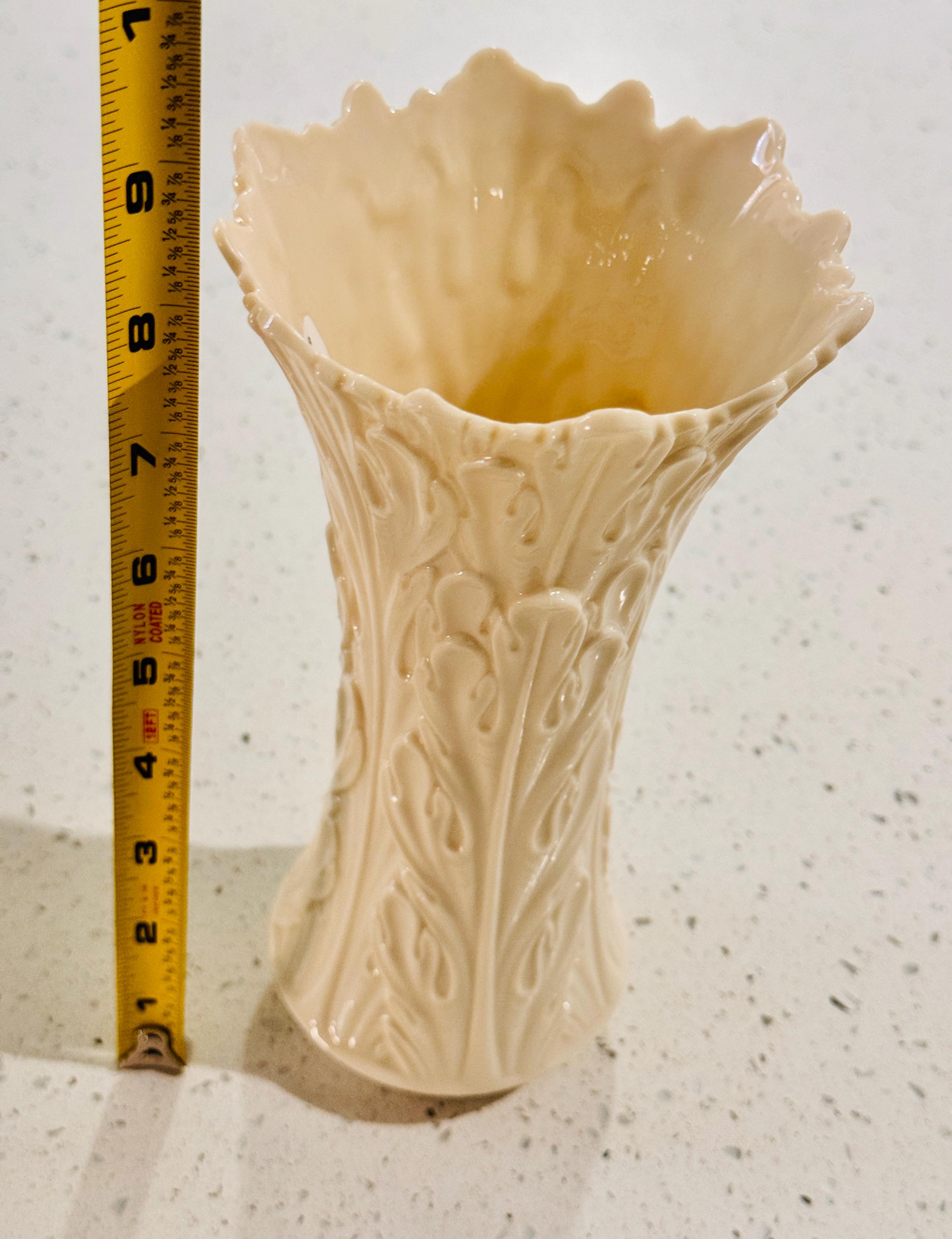 Made in USA. Woodland collection A very elegant vase with exquisite leaf patterns. Collector’s Appeal: Ideal for vintage lovers, ceramic collectors, or anyone curating a space with nostalgic sophistication.