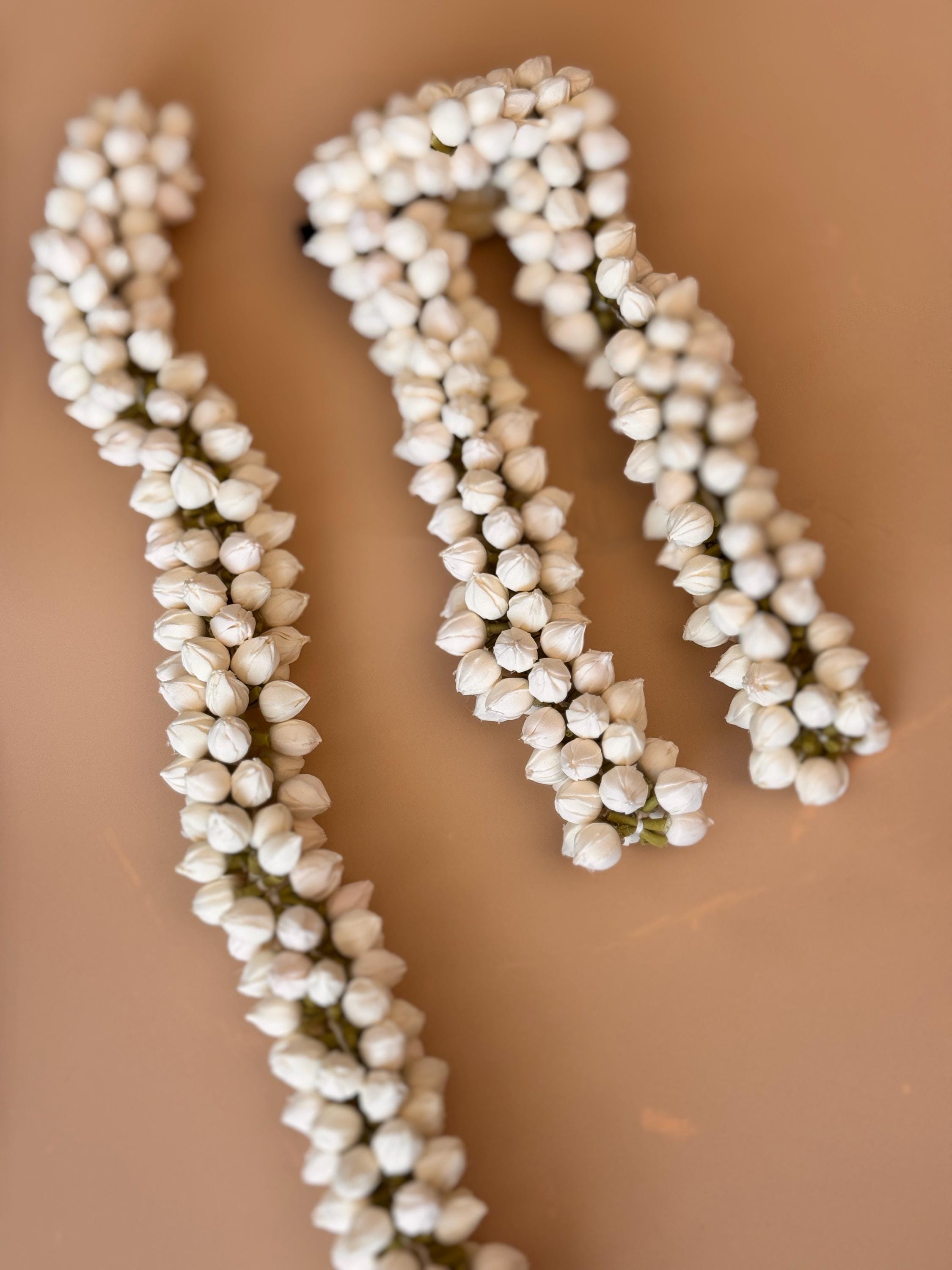 You will be amazed at the beautiful, buds/flowers strung together that is so realistic. Experience the delicate beauty of our realistic handmade jasmine string, expertly handcrafted to mimic natural flowers.