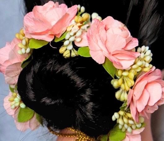 This 10 inch(7 roses) (for one veni/tie) realistic rose is perfect for functions, parties, traditional dancers, hairstylists, and brides. It's realistic appearance adds a touch of elegance to any hairstyle. Made to be highly reusable, this flower veni is a practical and versatile accessory.