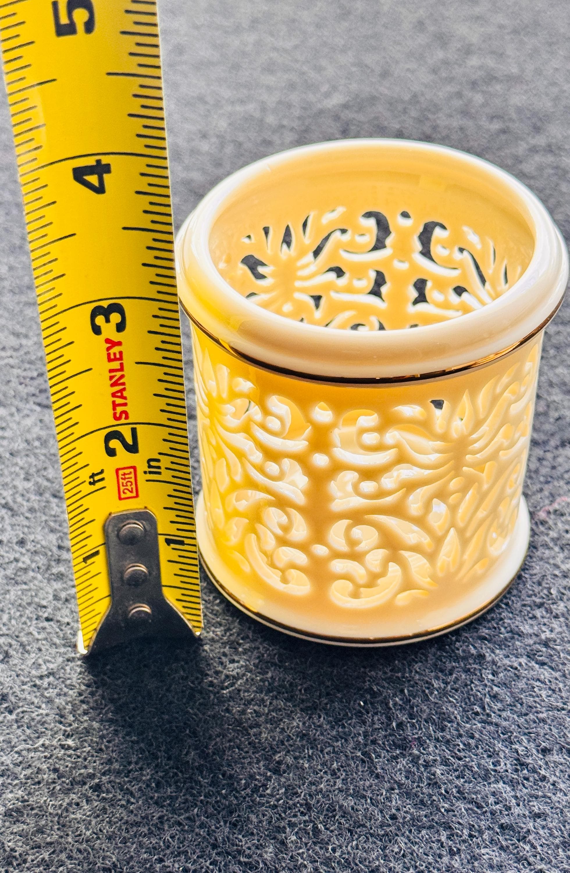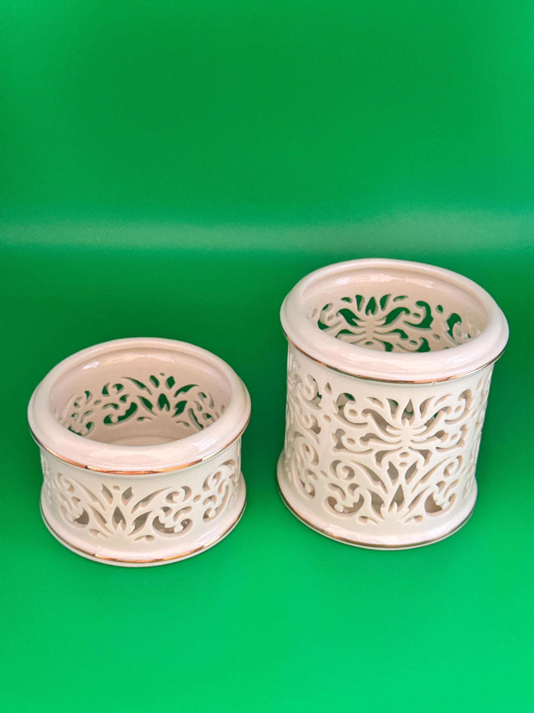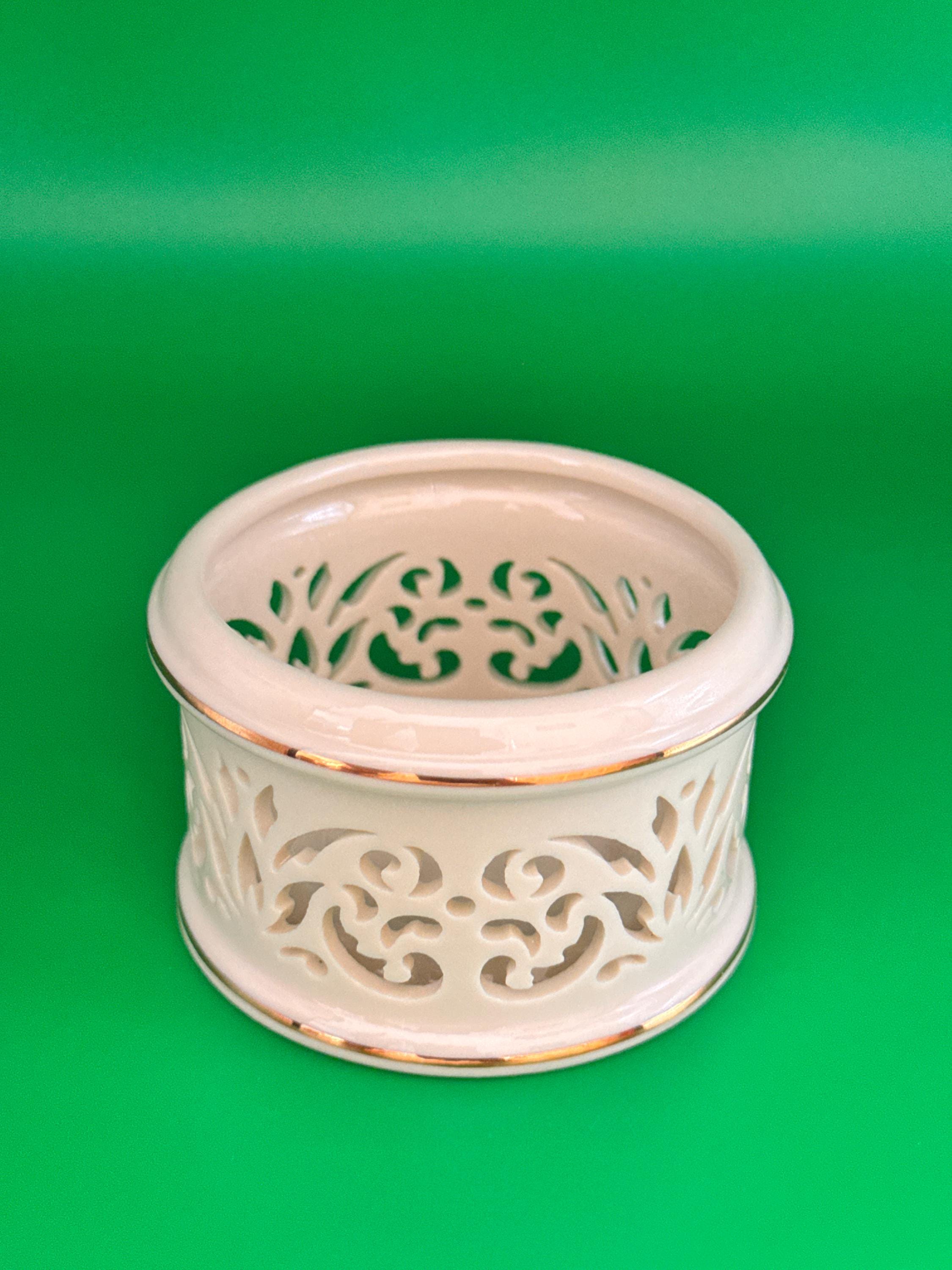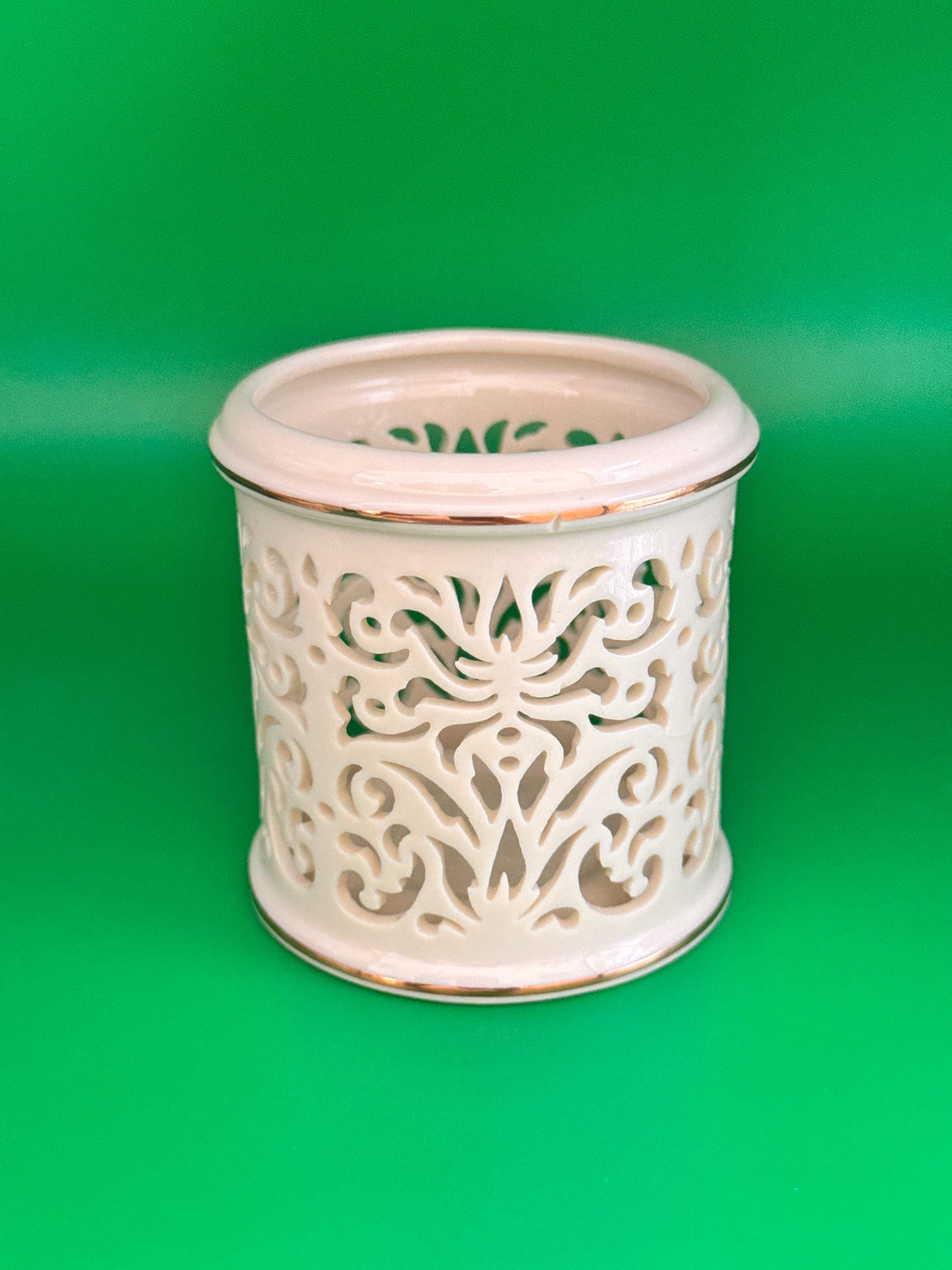 Product characteristics: Pierced Votive Candleholder/Illuminations Collection Hand Wash Pattern: Illuminations Collection by Lenox Status: Discontinued. Actual: 2000 - 2006