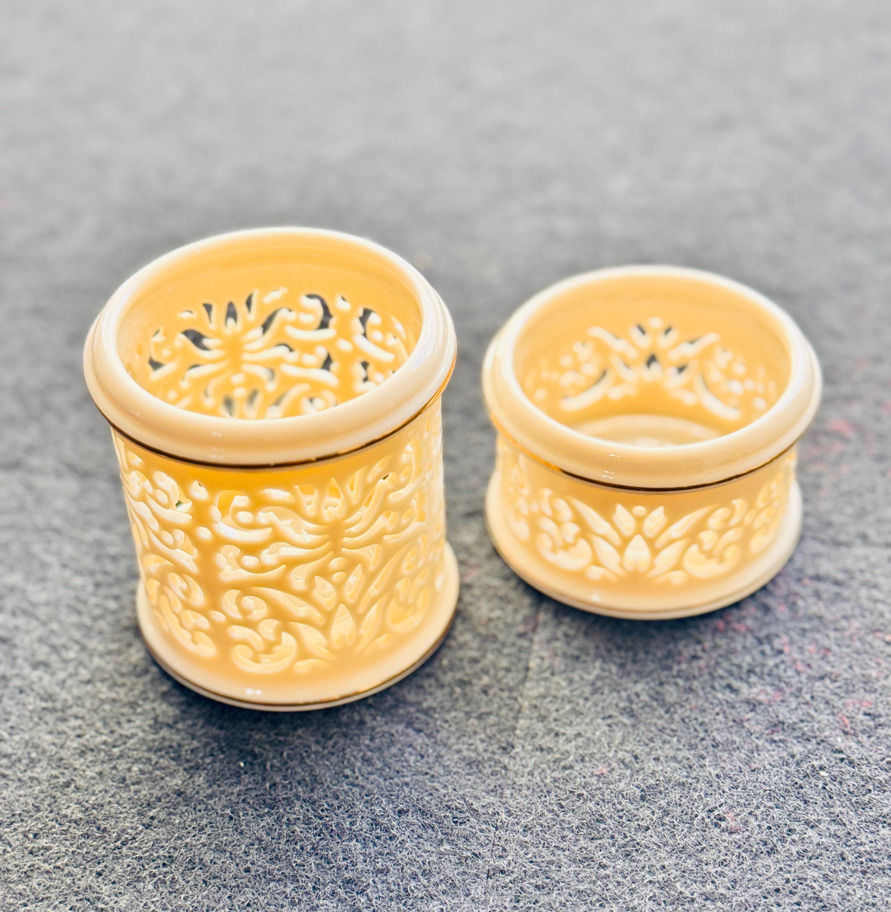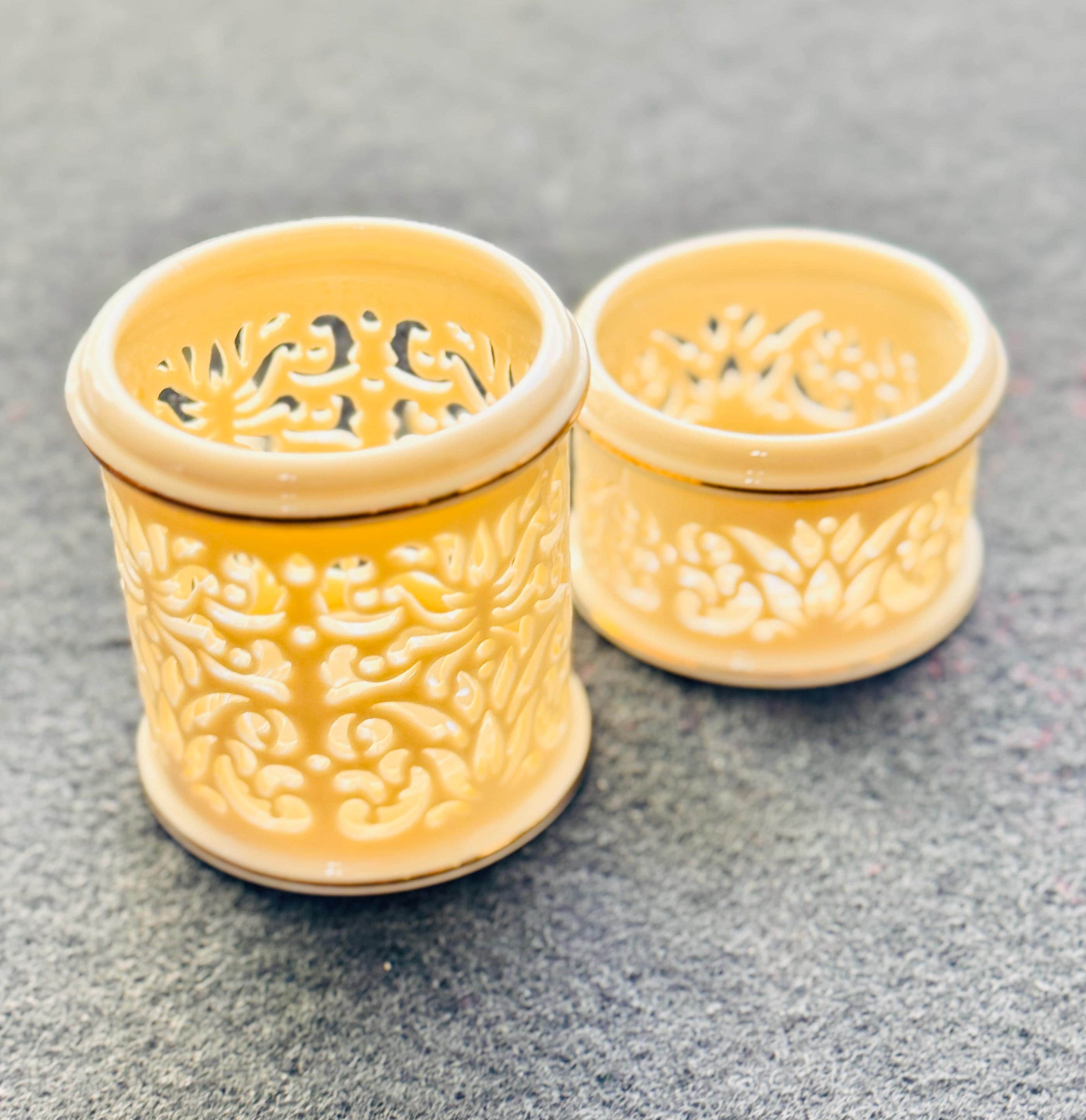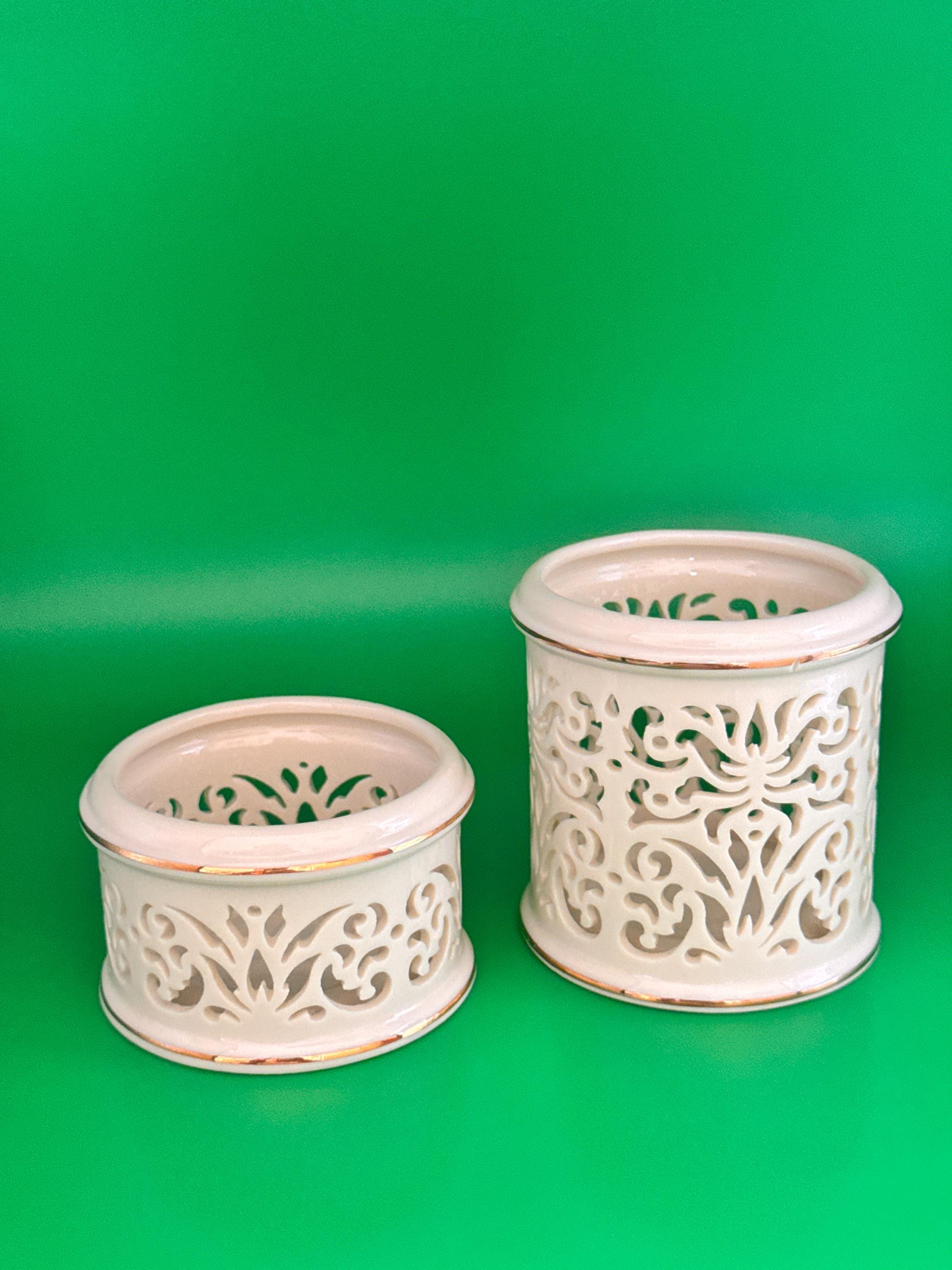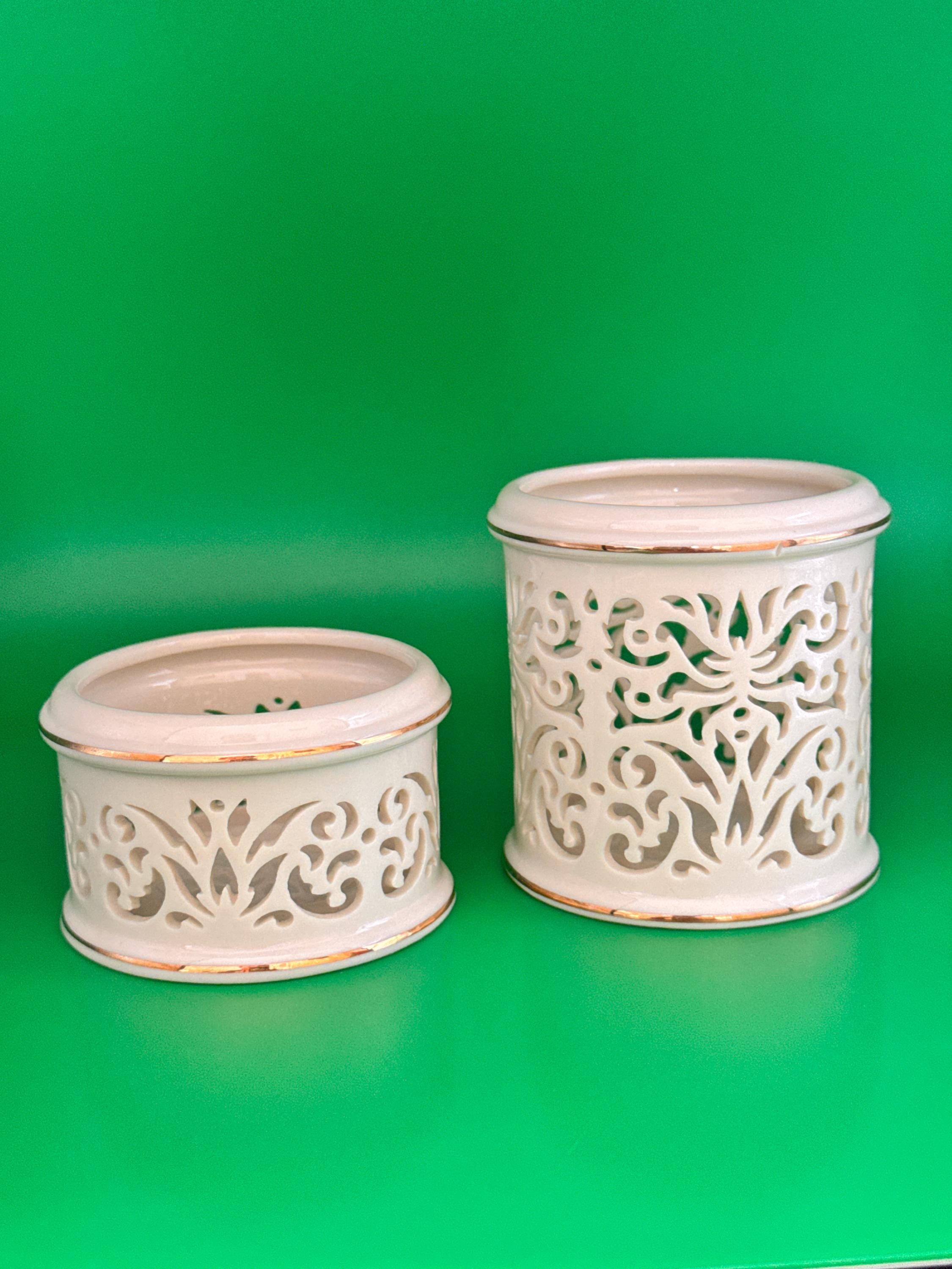 Product characteristics: Pierced Votive Candleholder/Illuminations Collection Hand Wash Pattern: Illuminations Collection by Lenox Status: Discontinued. Actual: 2000 - 2006