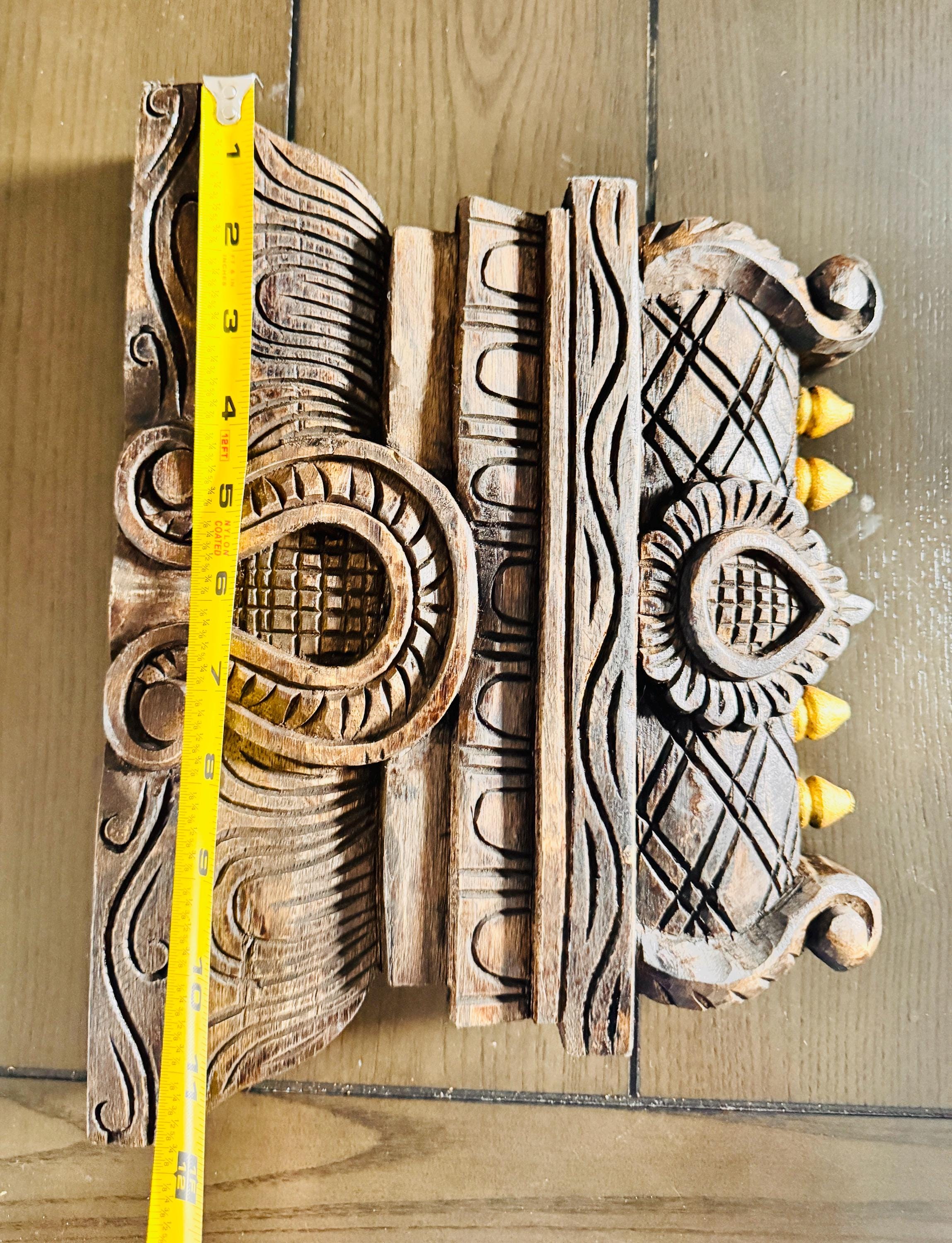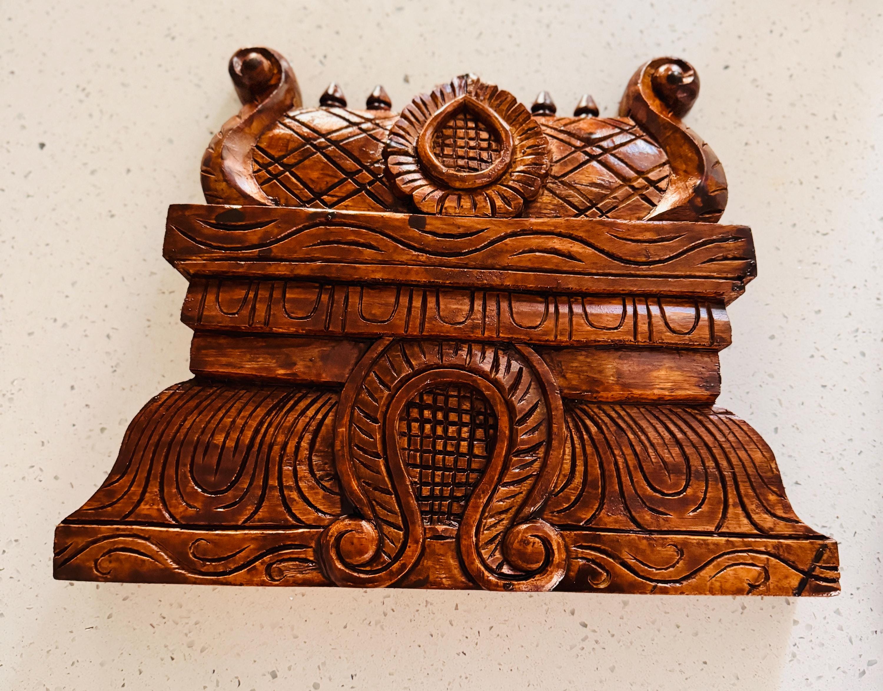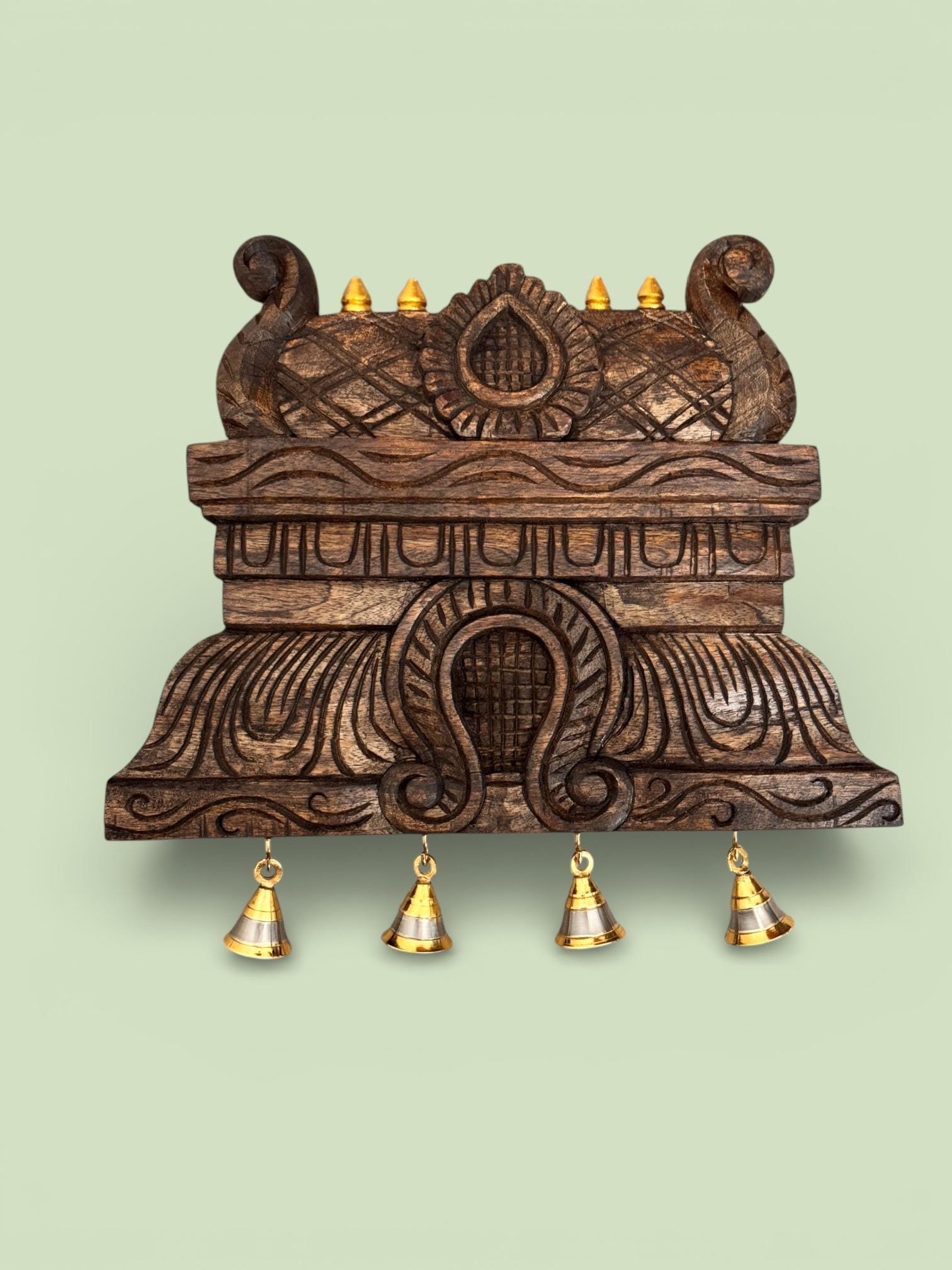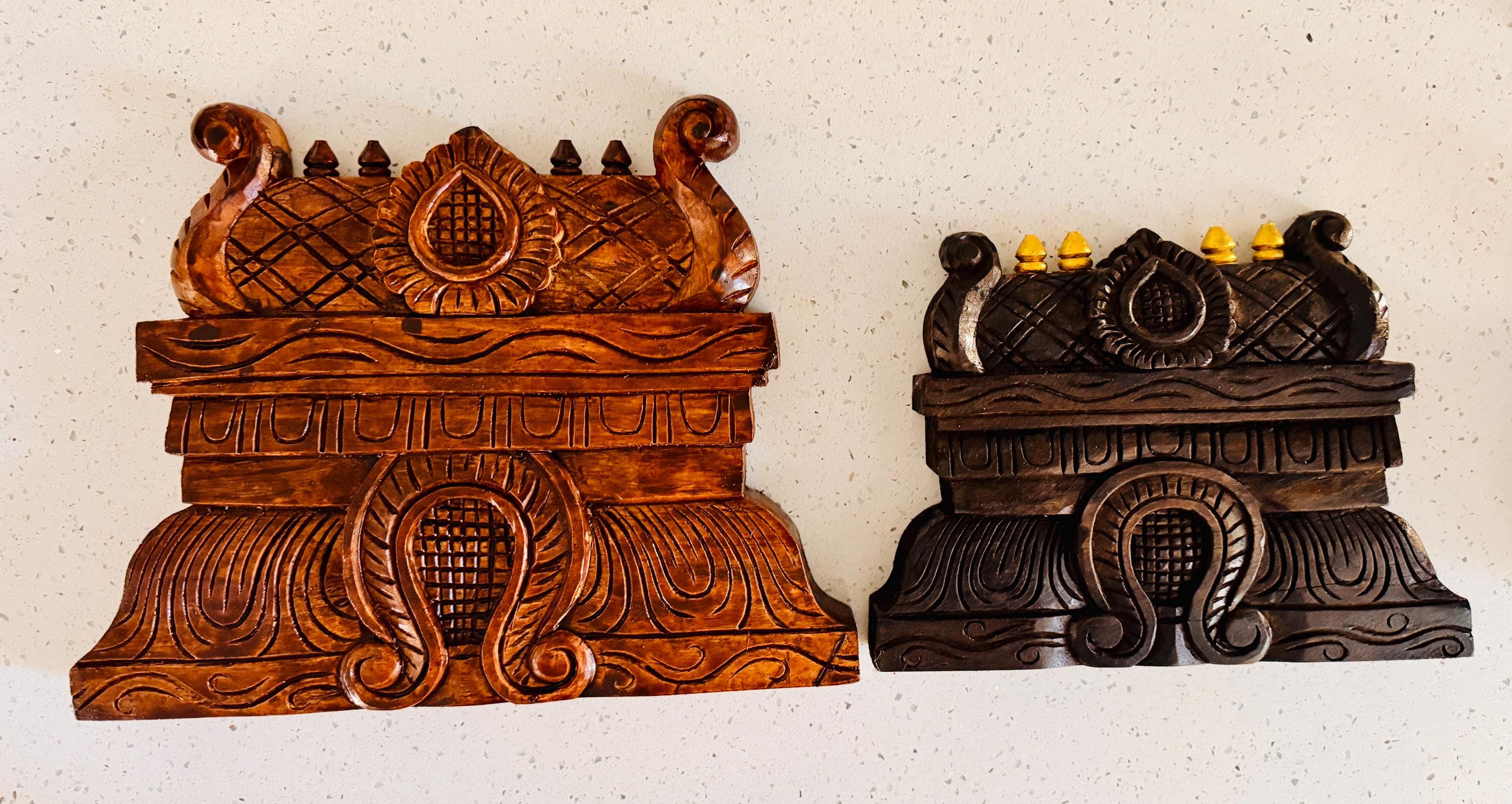 Echoing the majestic rise of temple gopurams, this hand-carved wooden panel brings sacred geometry and storytelling into your home.