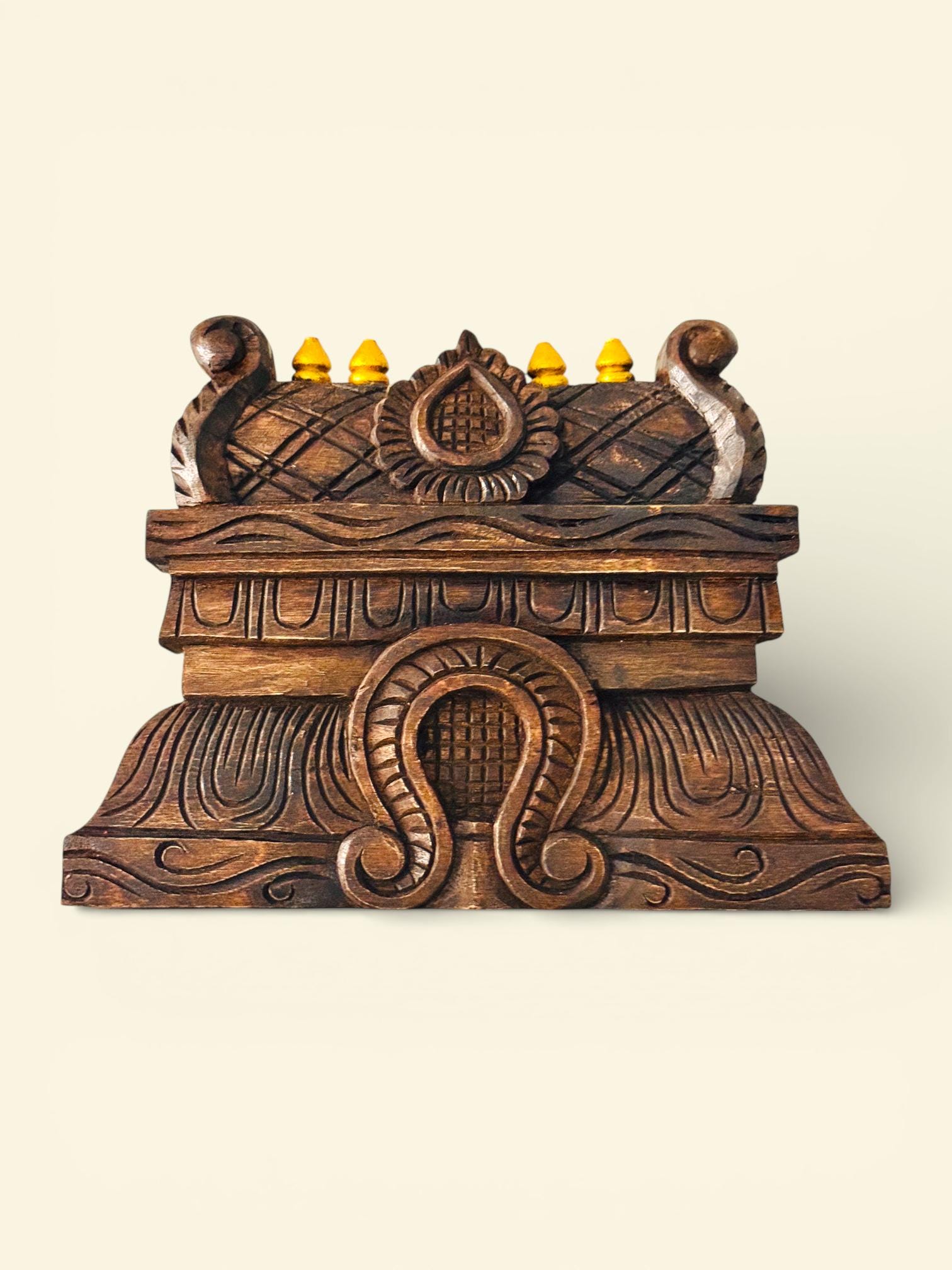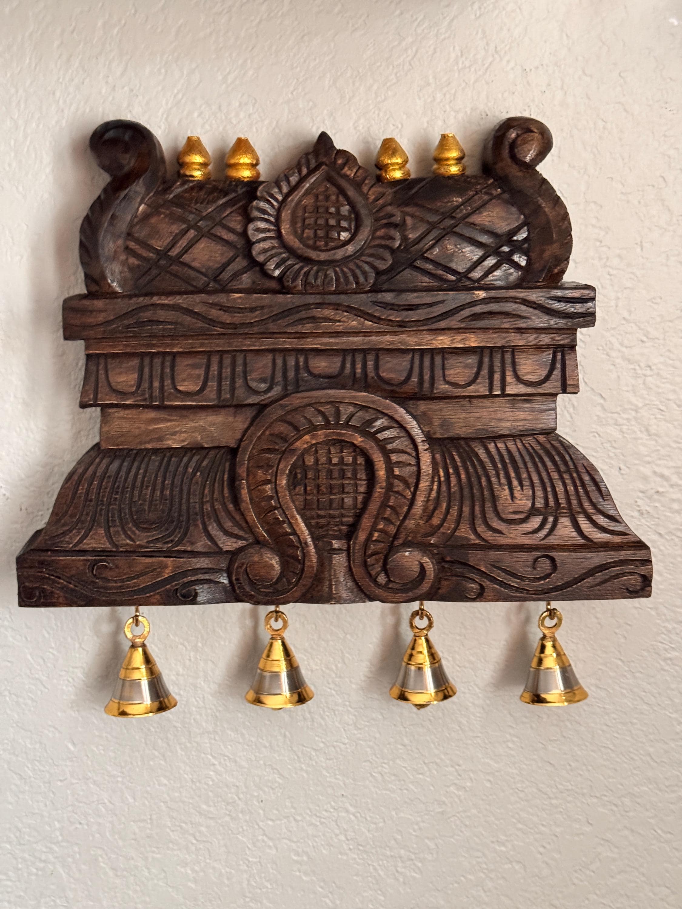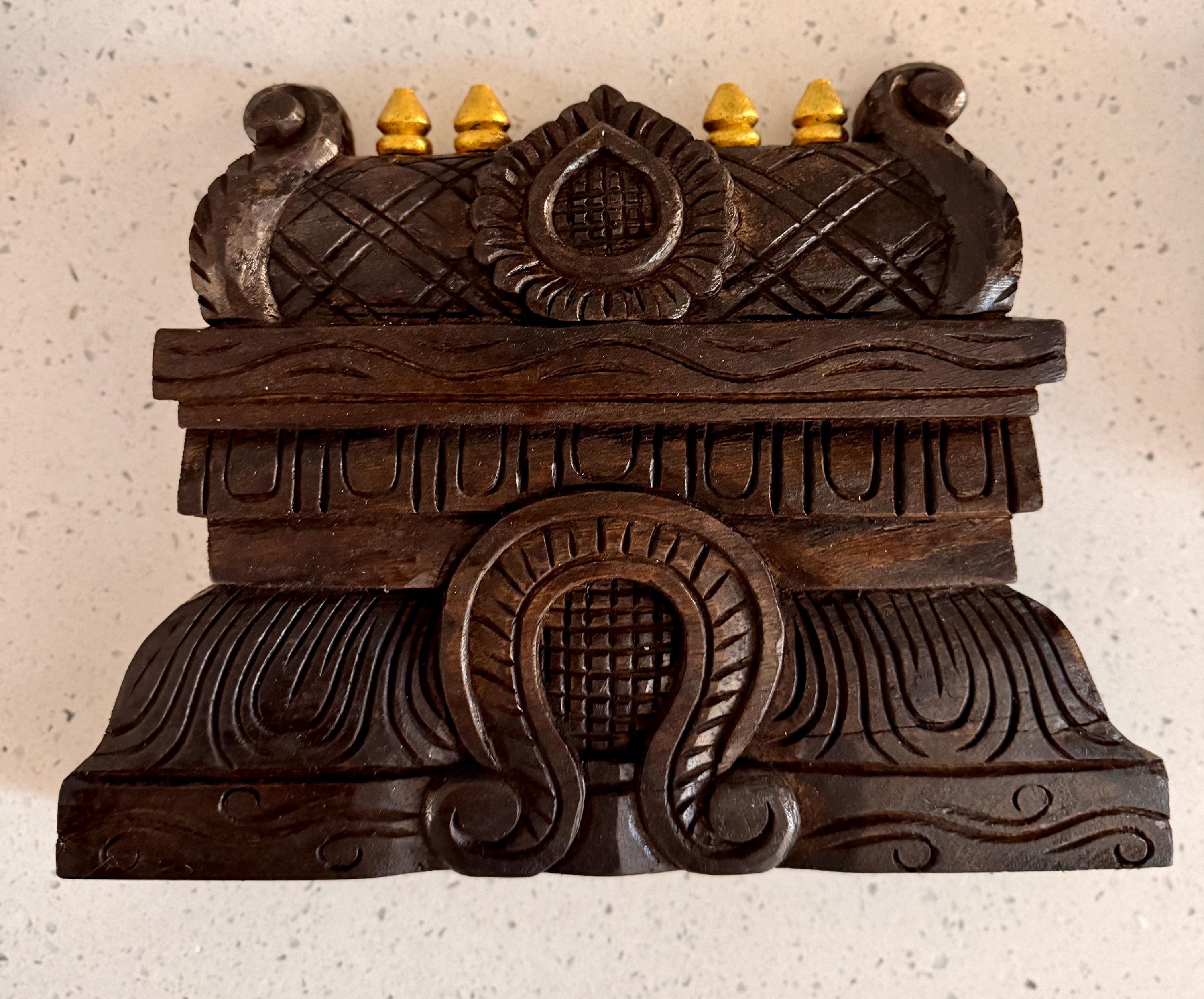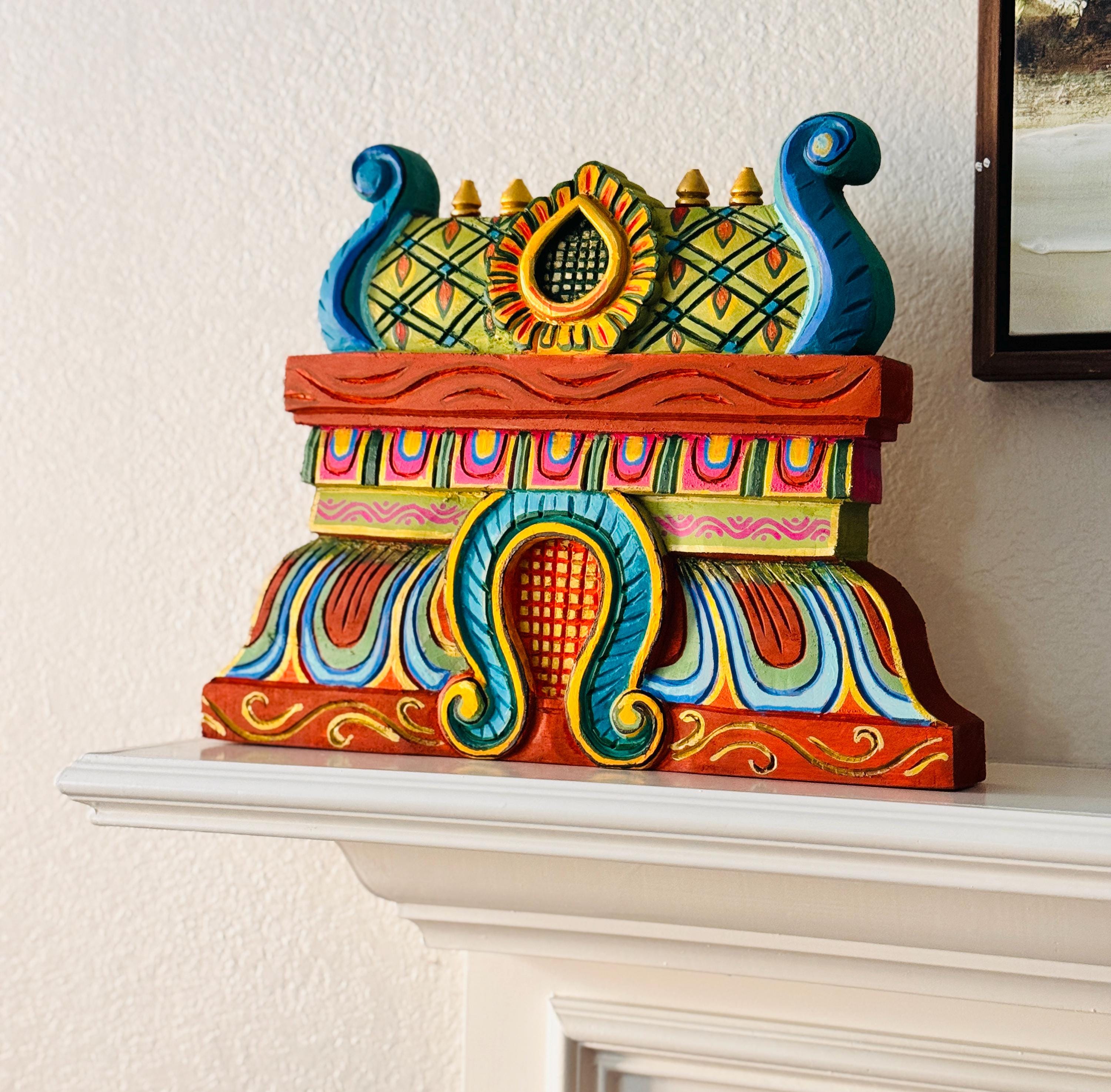 In a home, these gopuram wood carvings are often seen as symbols of protection, grounding energy, and positive beginnings.