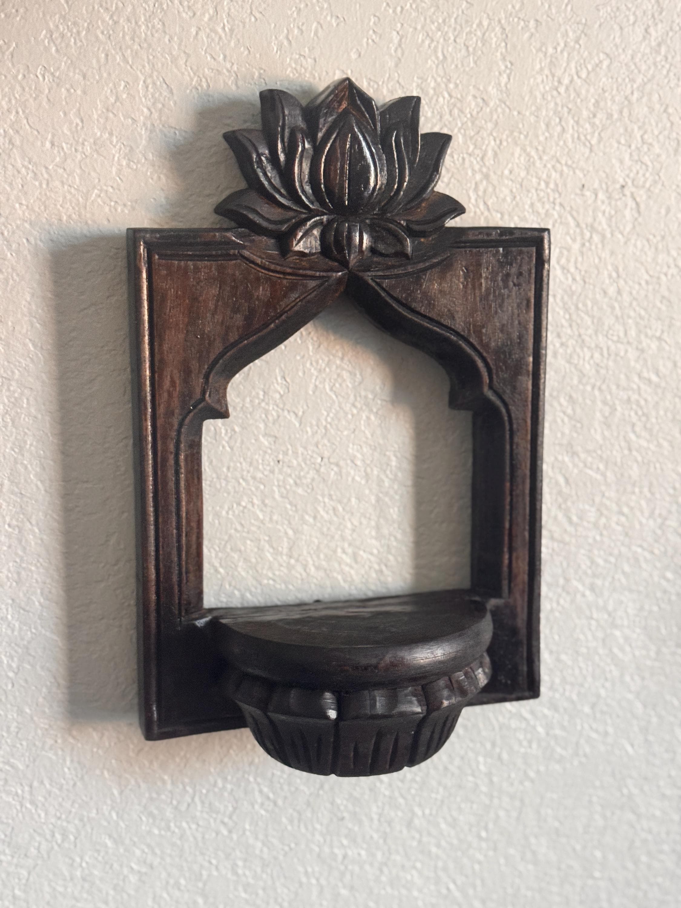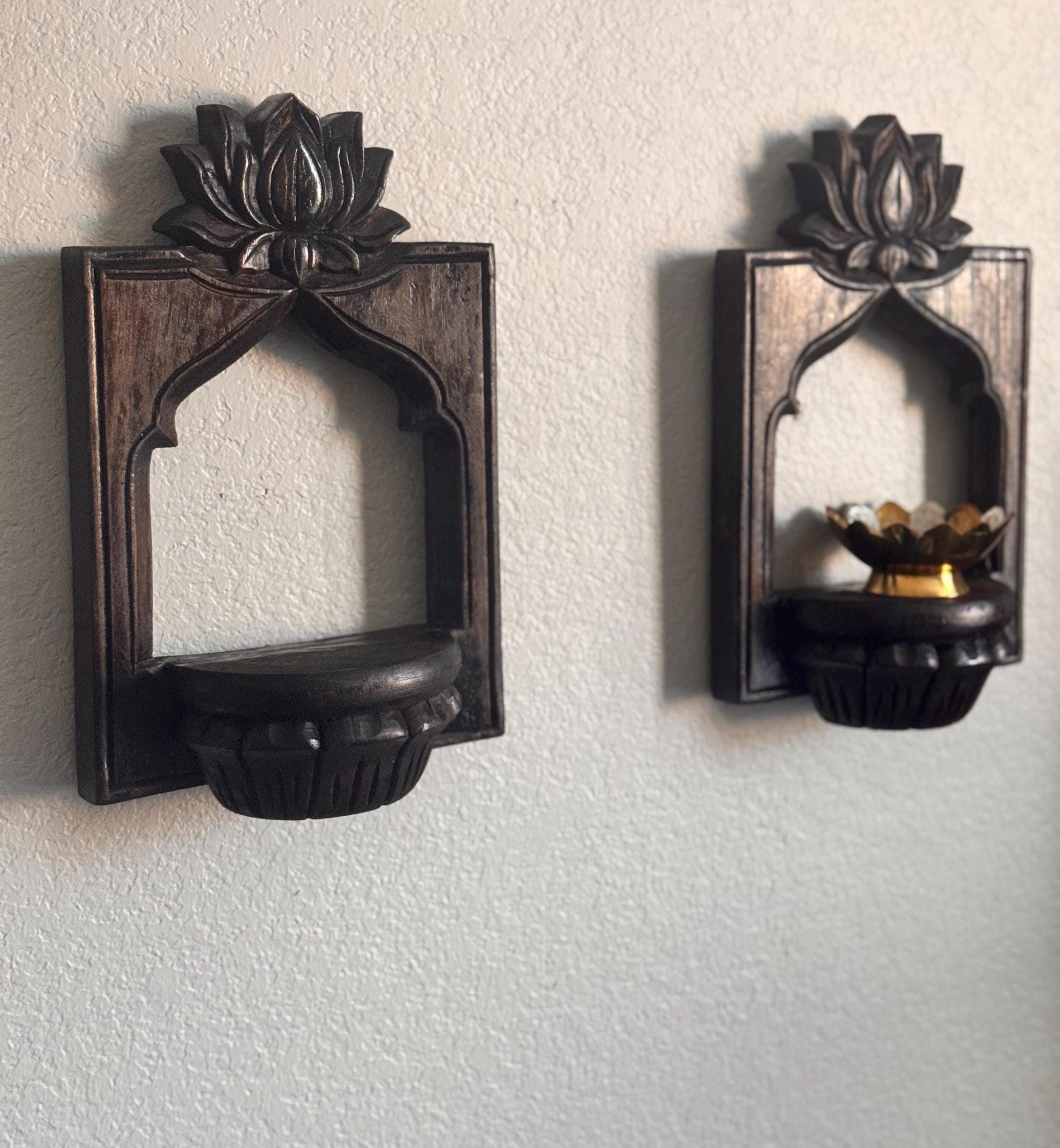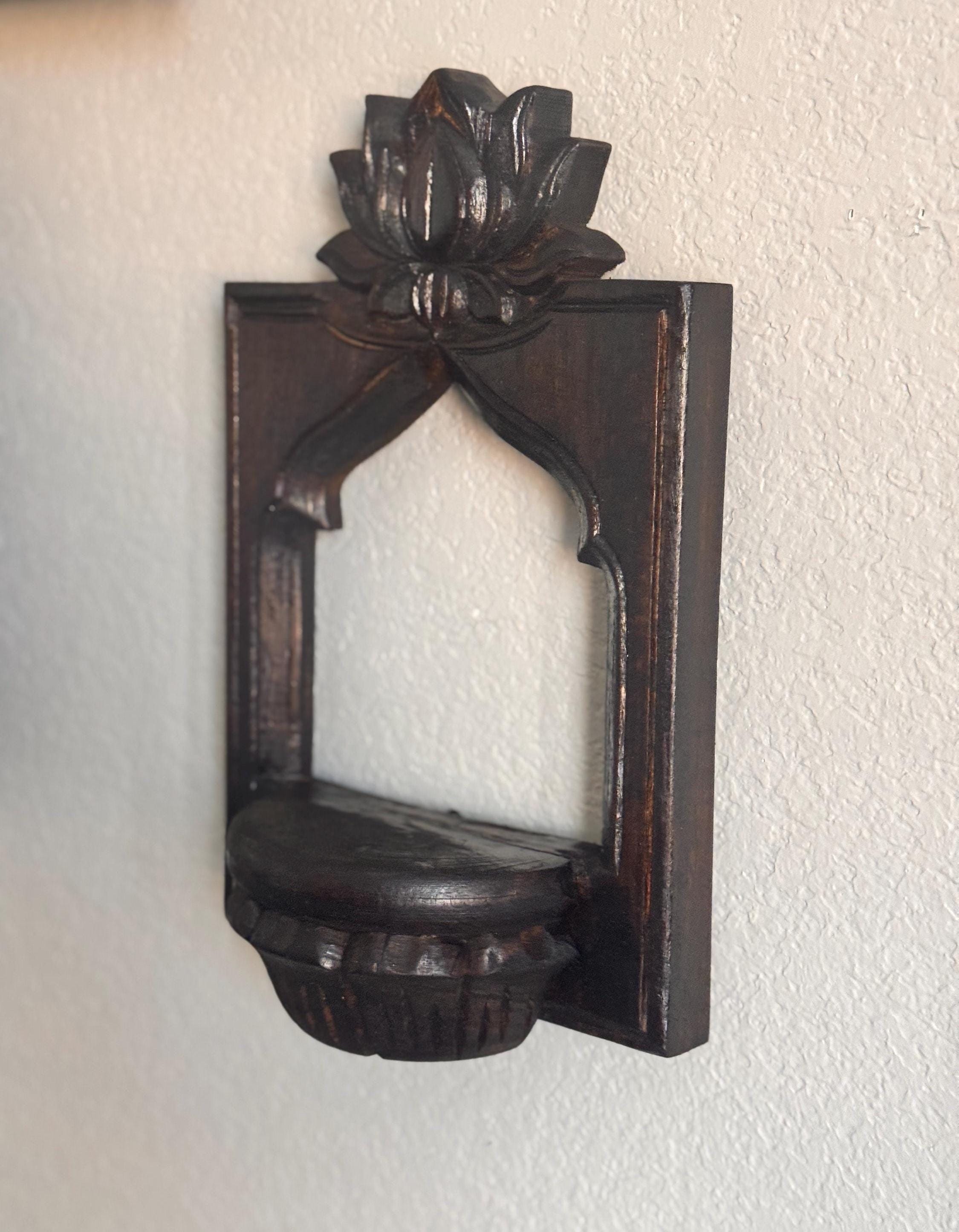 Hand-Carved Lotus Arch Wall Shelves- Vintage-Inspired Wooden Decor