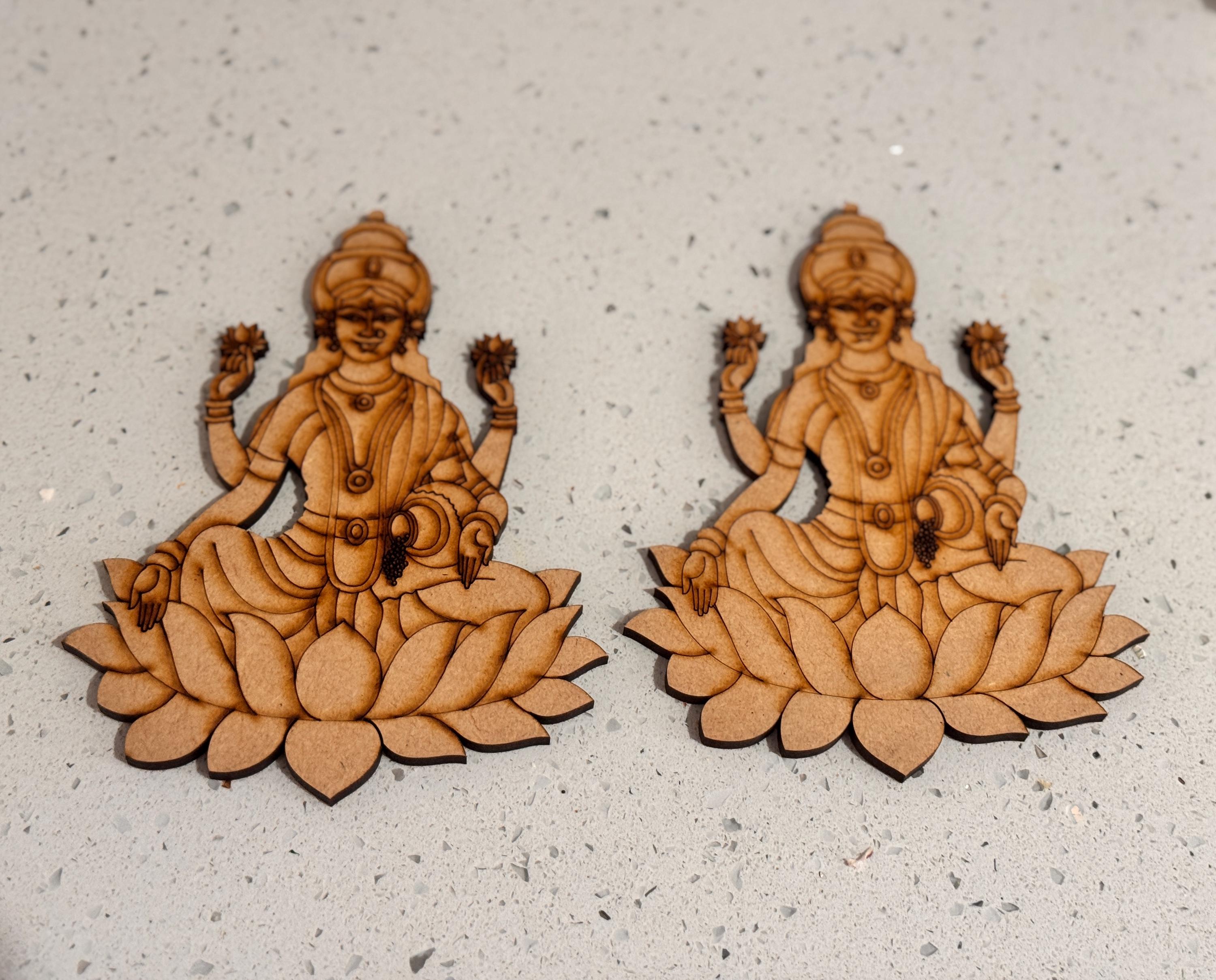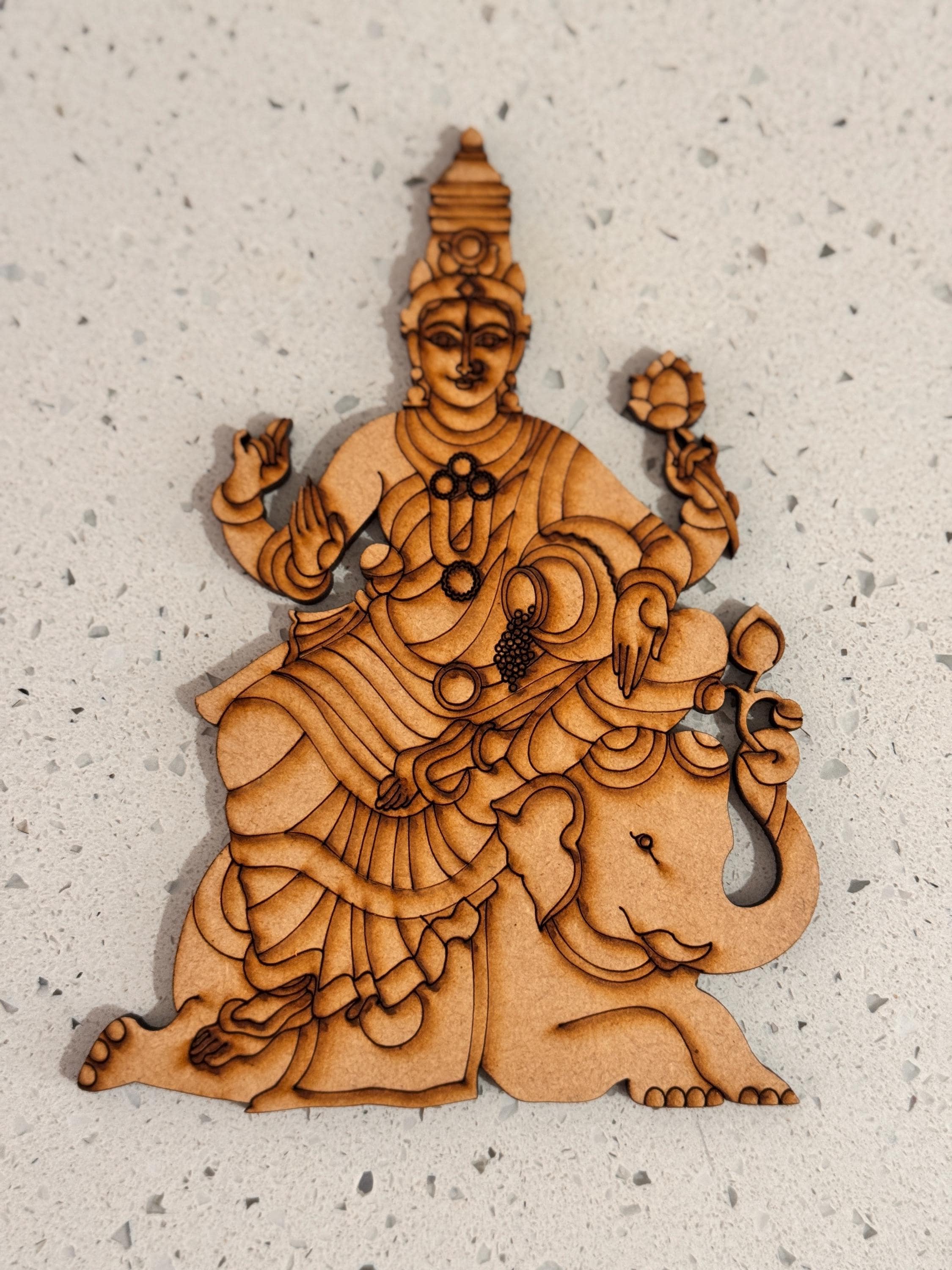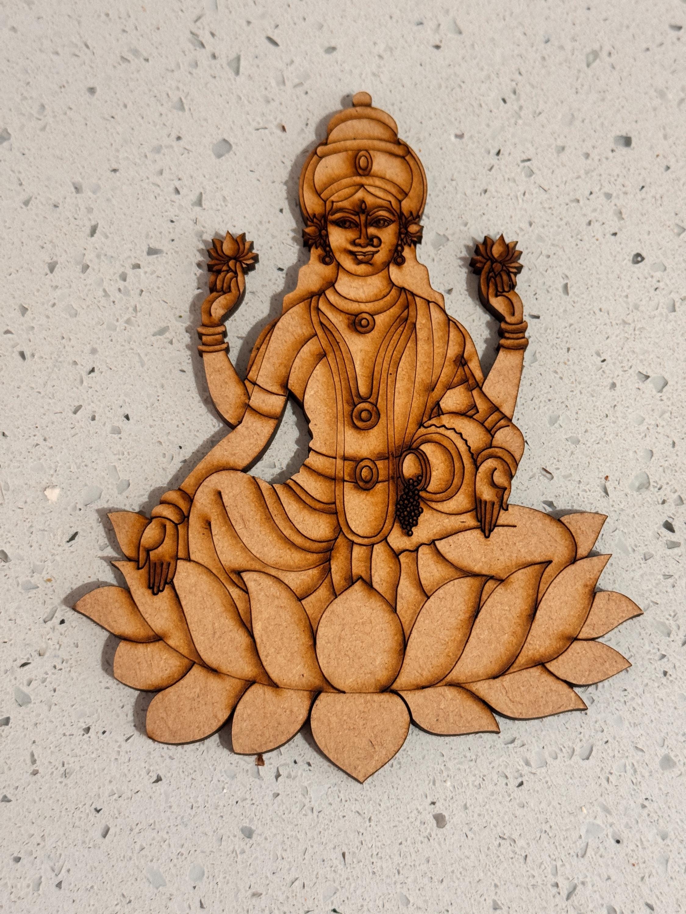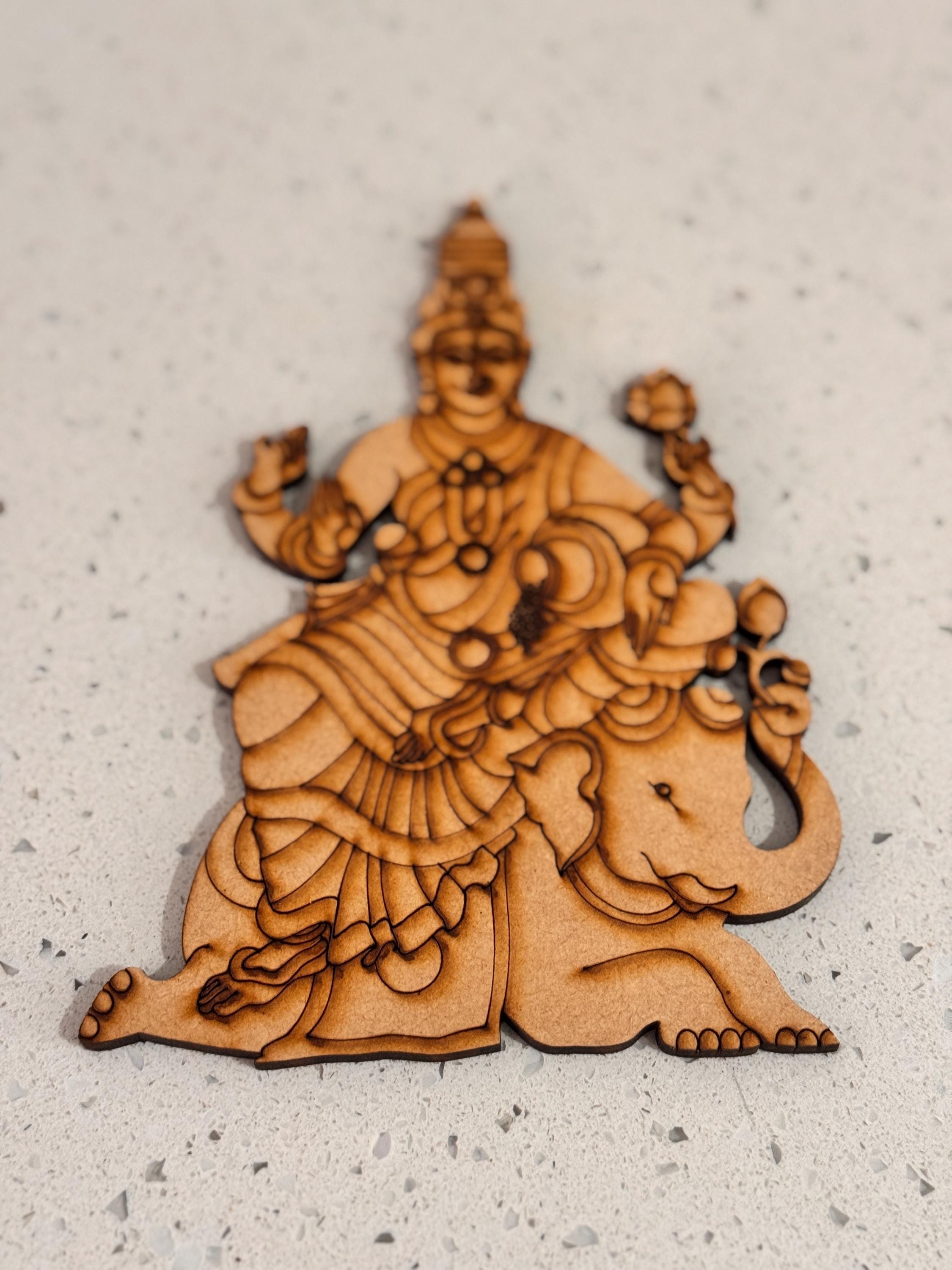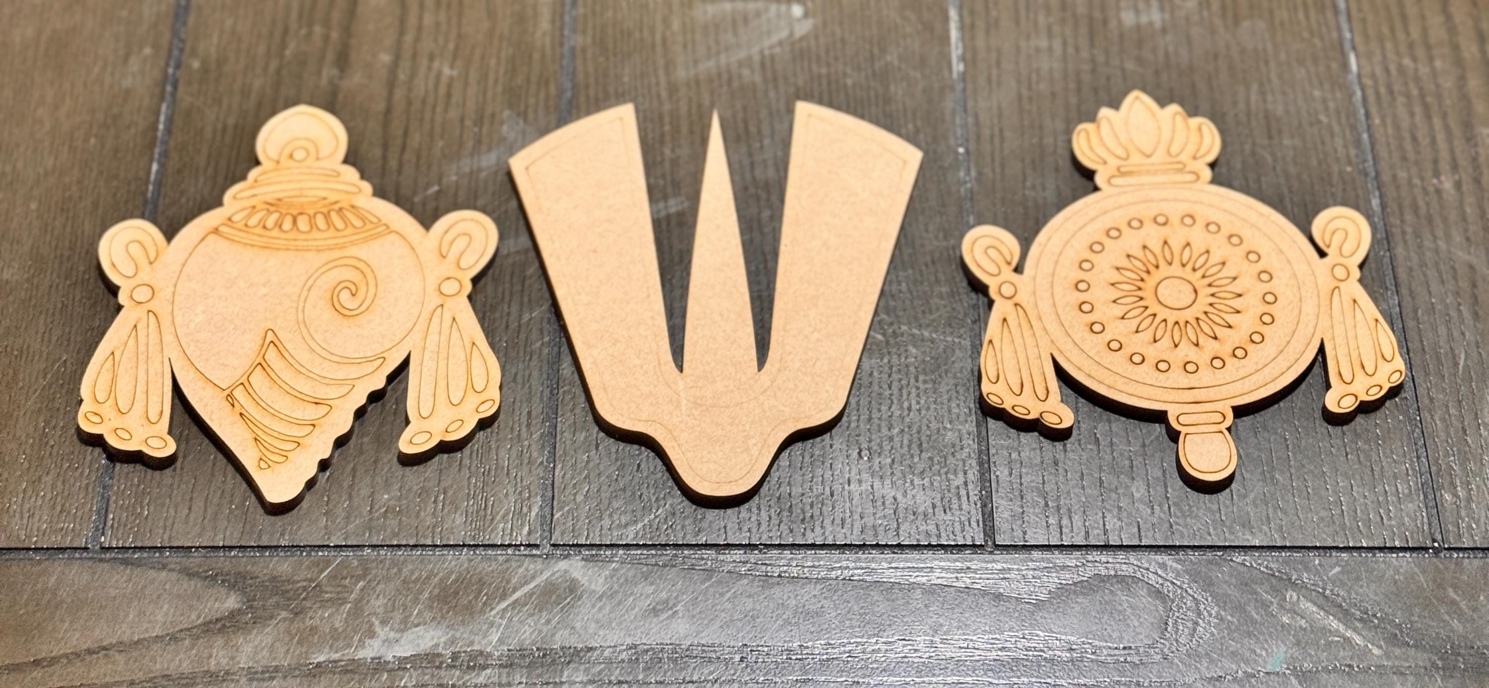 This exquisite pre‑marked MDF cutout showcases a captivating motif of GajaLakshmi / MahaLakshmi / Shanku Chakra Naamam, bringing an aura of sophistication, divinity, and timeless grace to any space.
