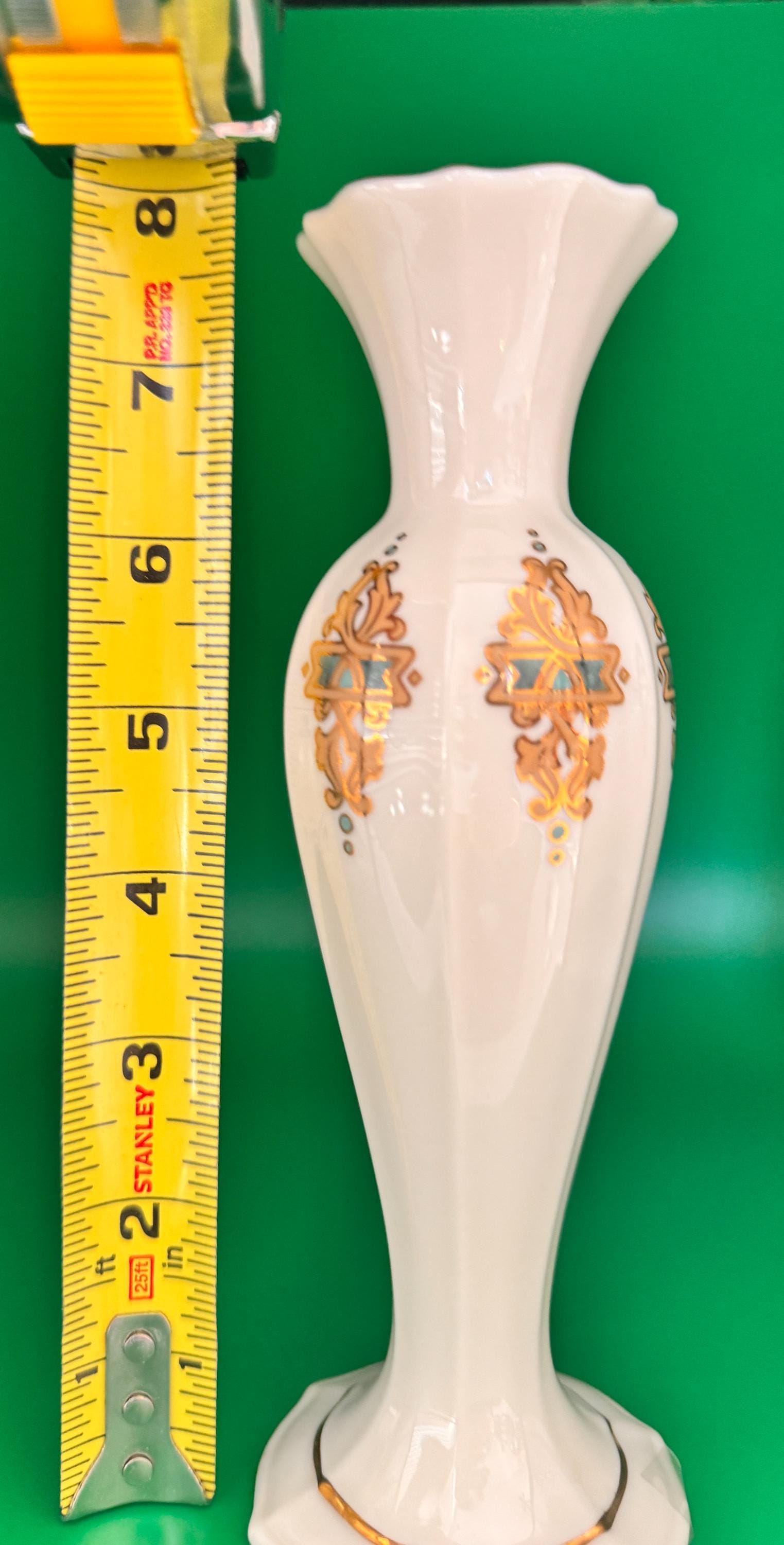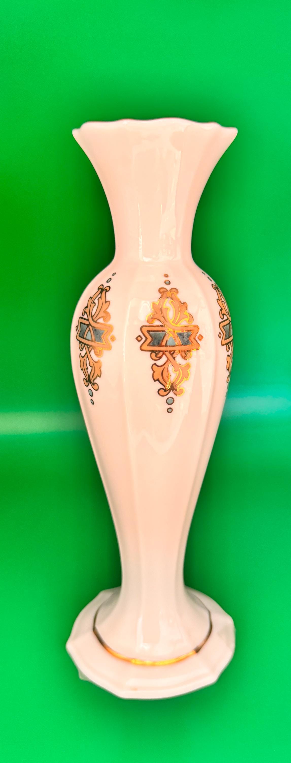 This beautiful Lenox vase is a stunning addition to any collection. The intricate floral pattern and hand painted gold rimmed finish make it a perfect choice for those who appreciate traditional style and fine porcelain craftsmanship. A great choice for anyone looking for a decorative piece that can be used to display flowers or other items. Perfect condition, made in the USA. Please view photos for detail.