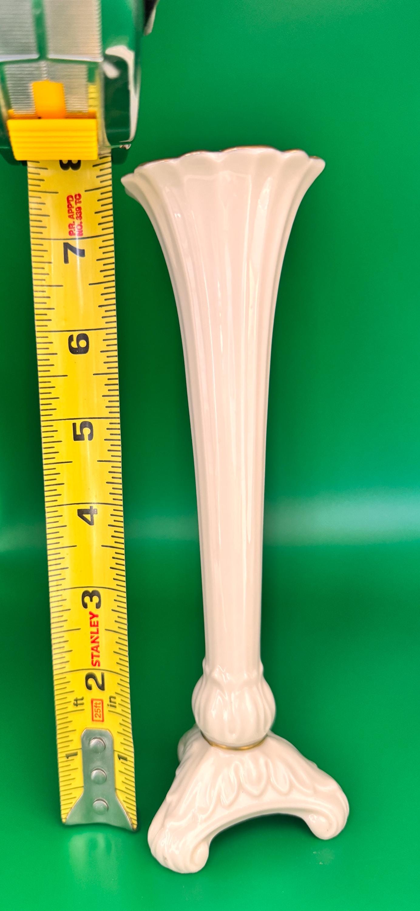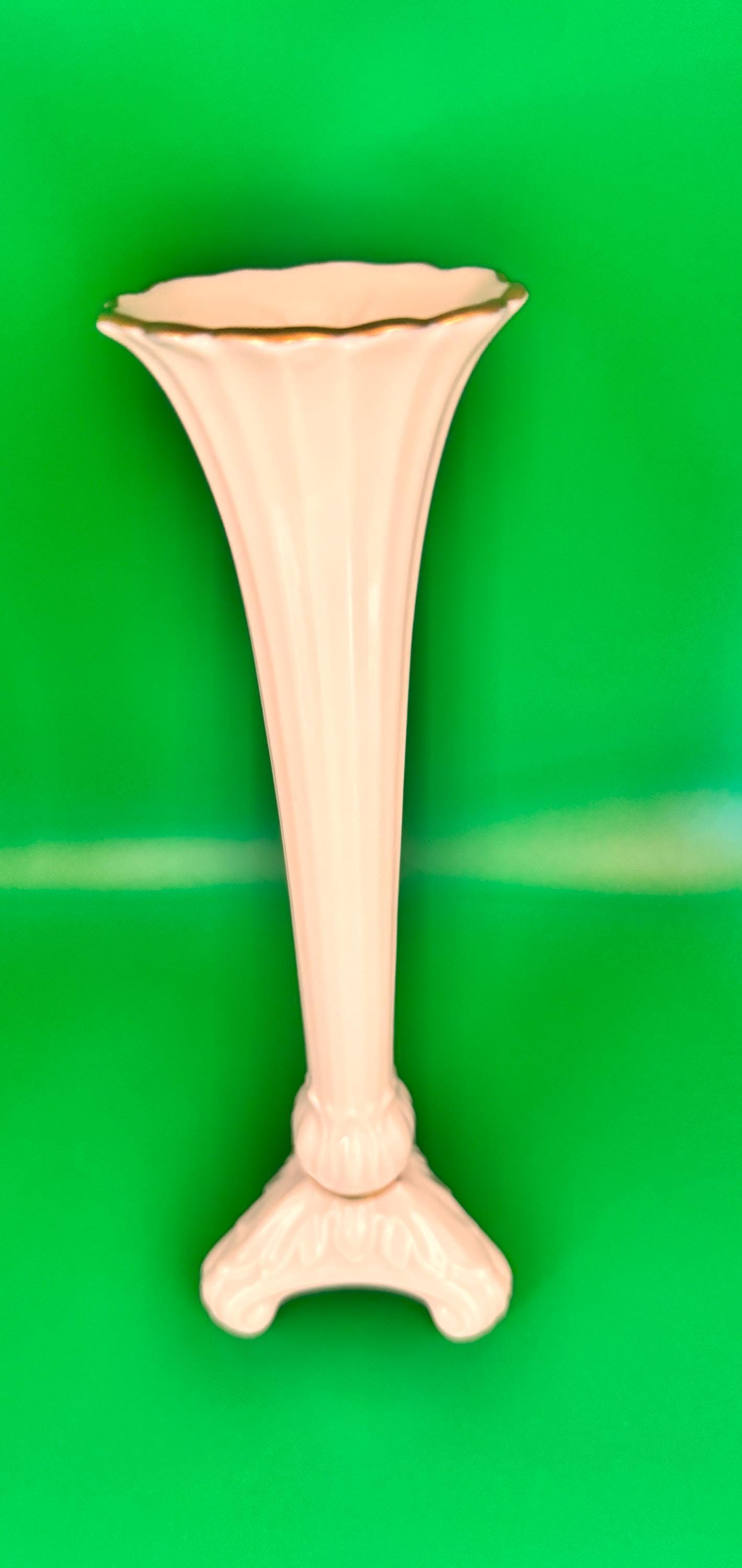 This beautiful Lenox vase is a stunning addition to any collection. The intricate pattern and hand painted gold rimmed finish make it a perfect choice for those who appreciate traditional style and fine porcelain craftsmanship. A great choice for anyone looking for a decorative piece that can be used to display flowers or other items. Perfect condition, made in the USA. Please view photos for detail.