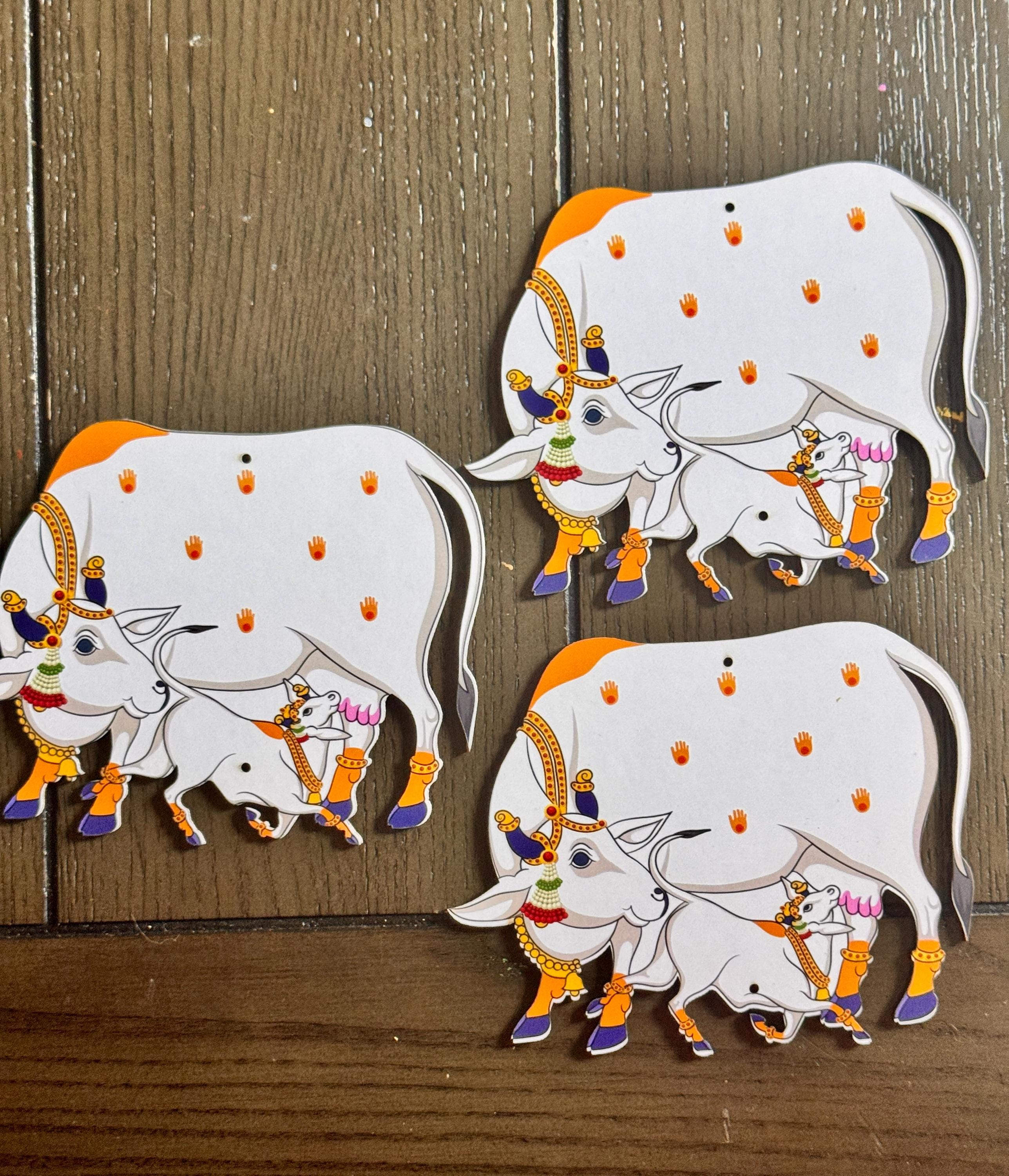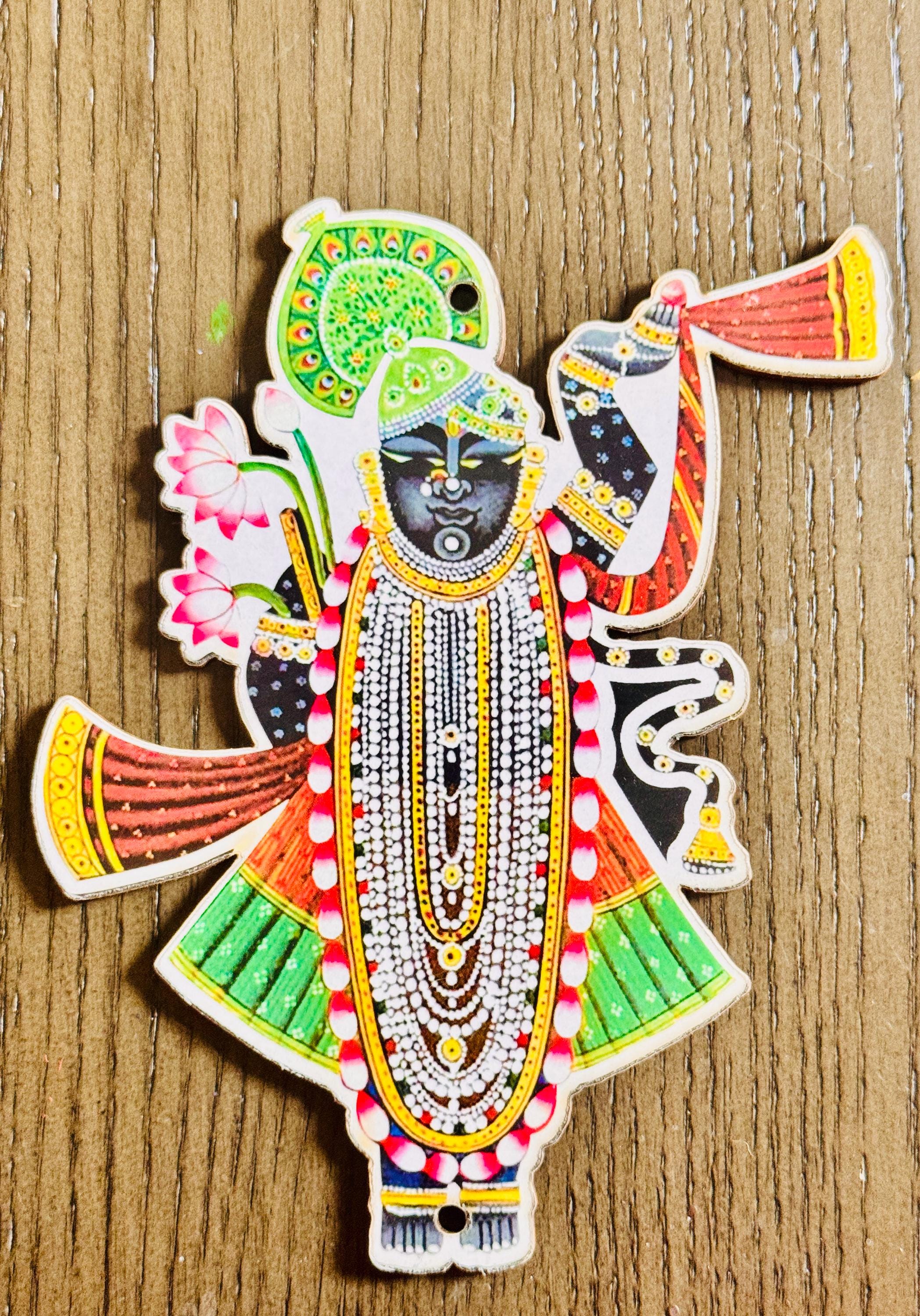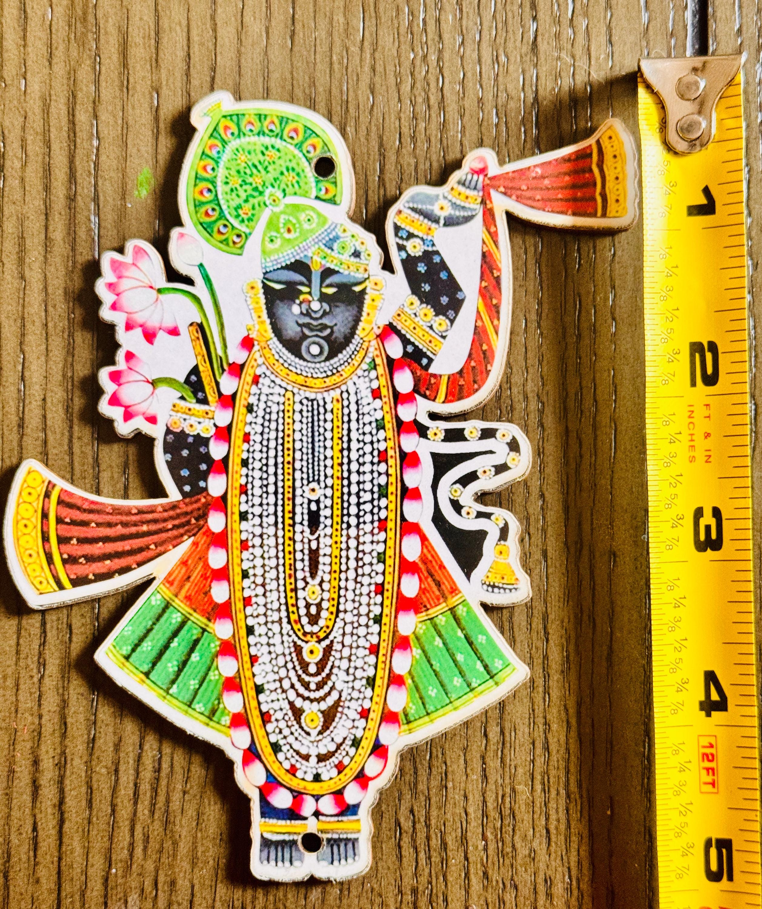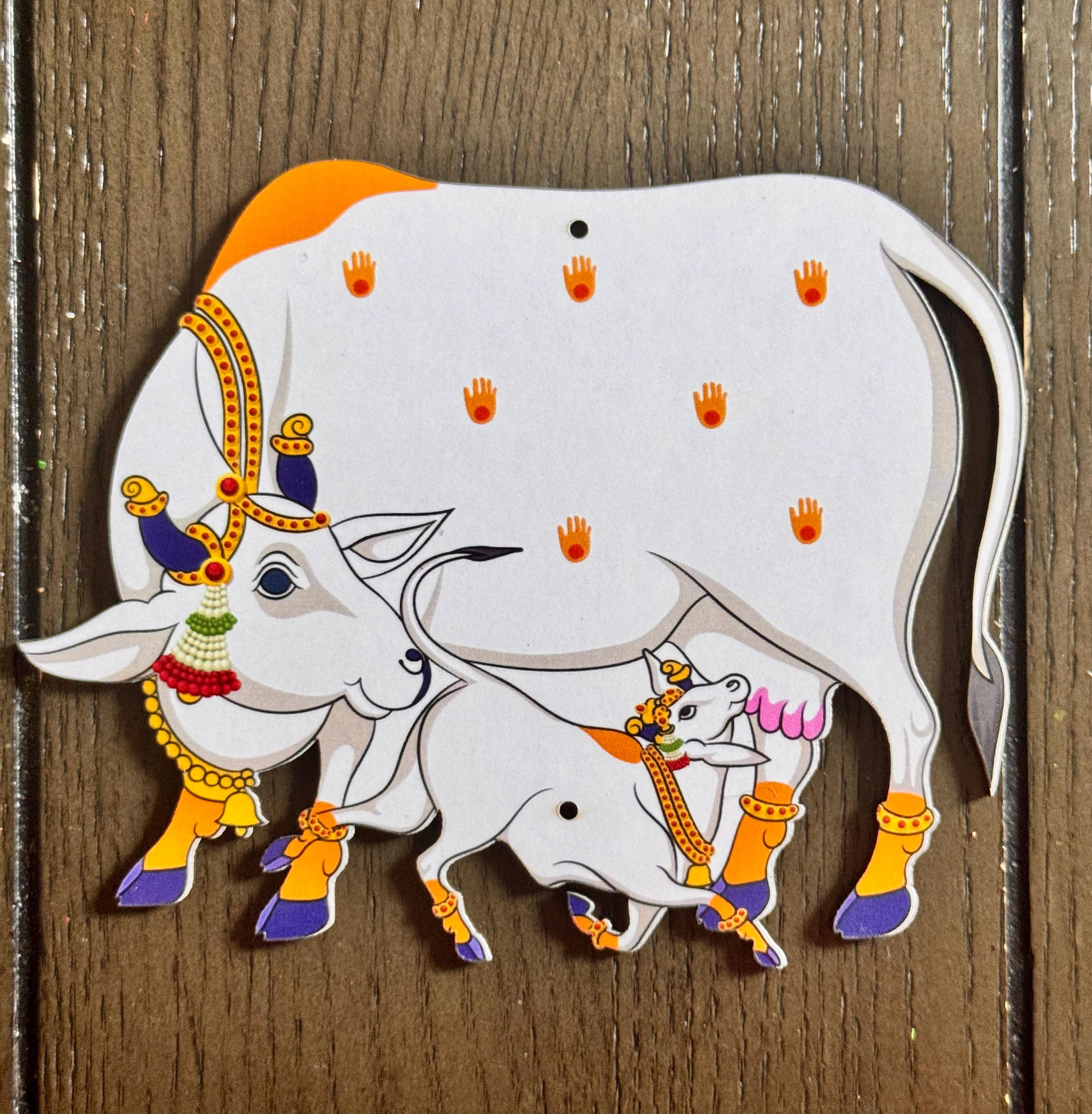 This exquisite pre‑marked MDF cutout showcases a captivating laminated motif of Srinathji and various cow designs, bringing an aura of sophistication, divinity, and timeless grace to any space.