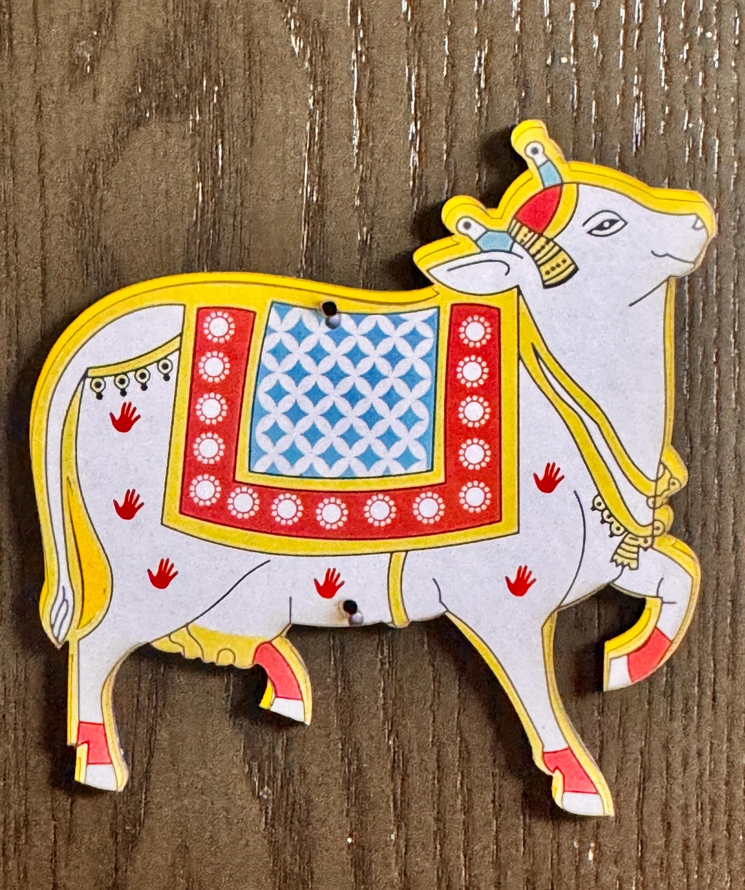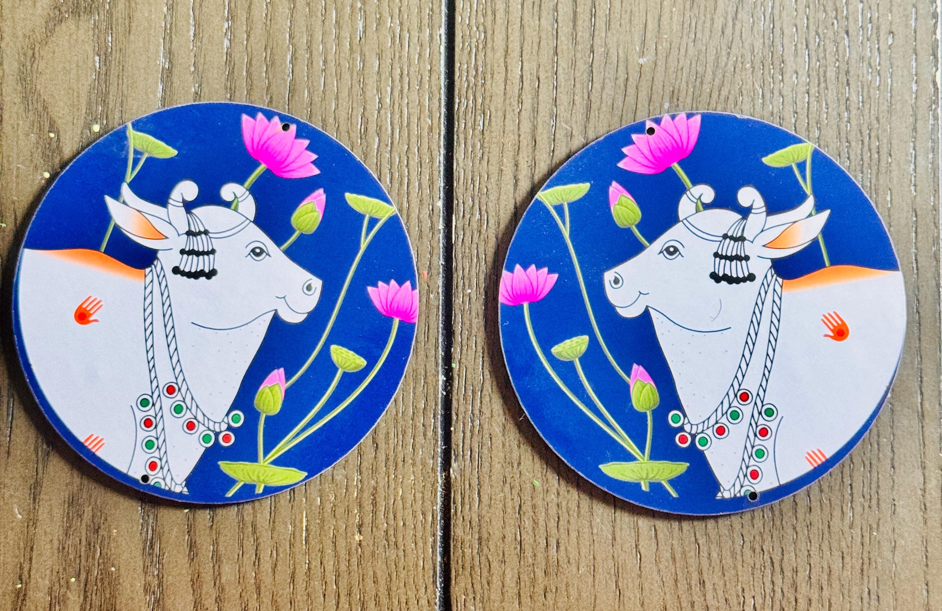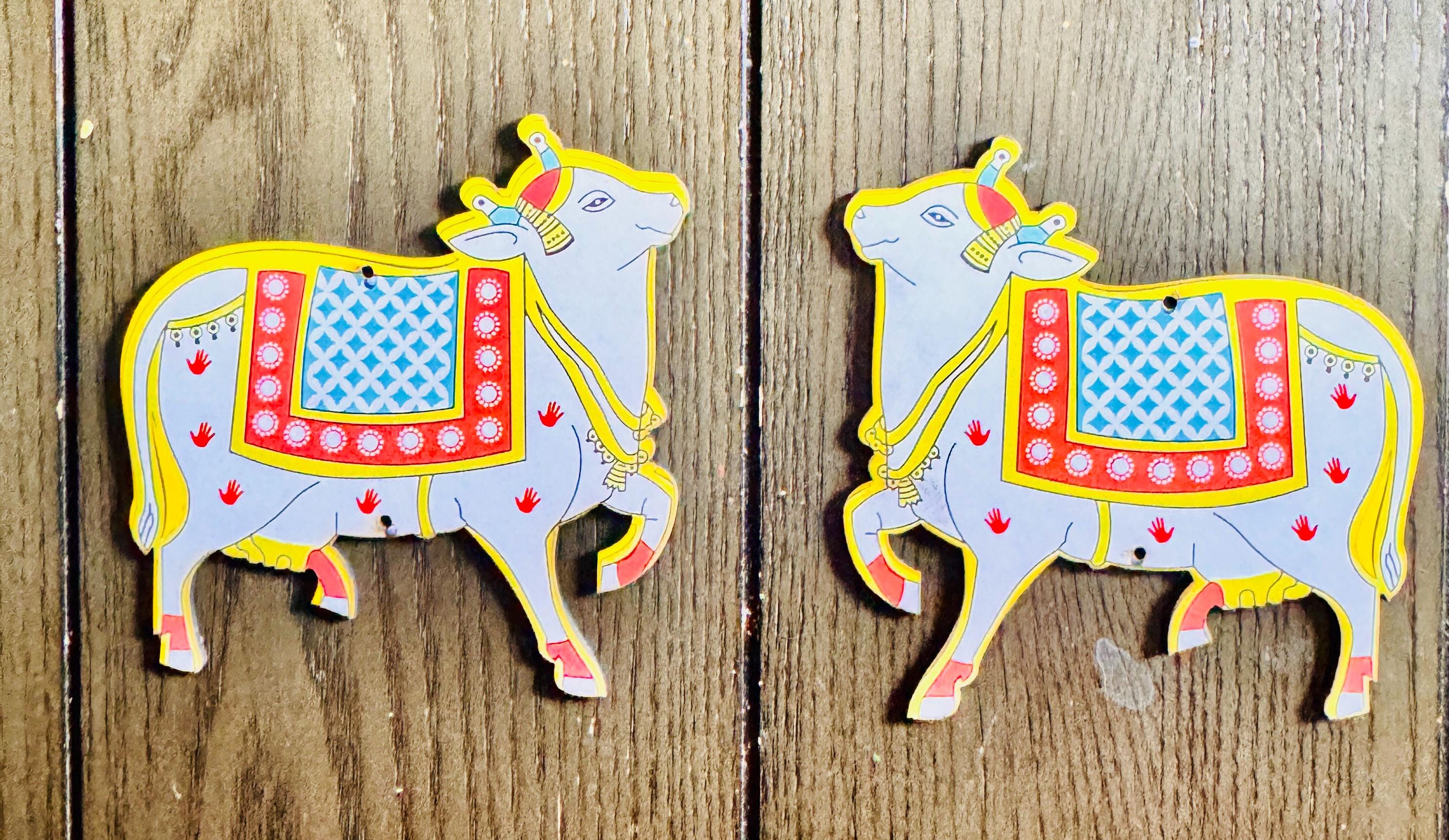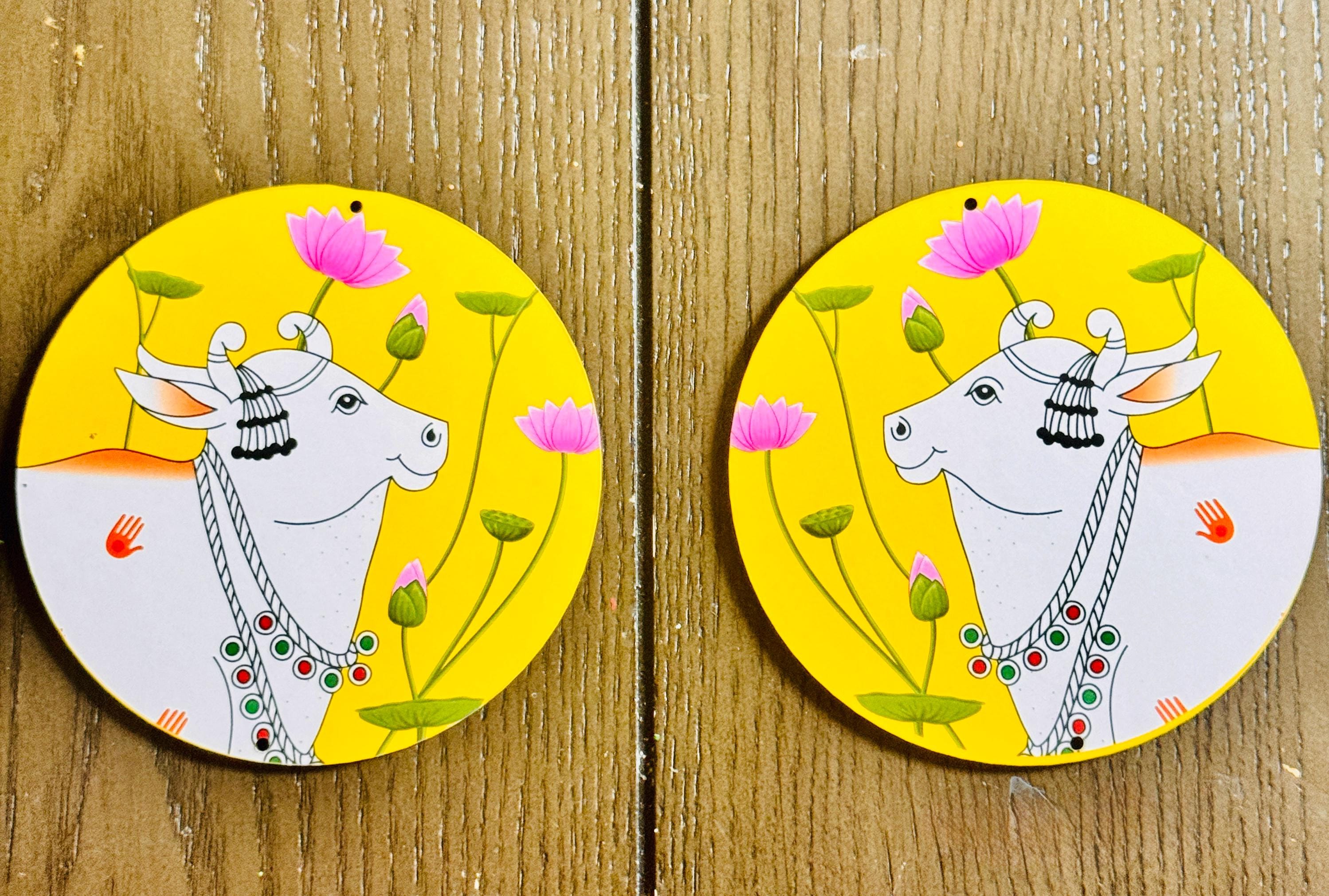 This exquisite pre‑marked MDF cutout showcases a captivating laminated motif of Srinathji and various cow designs, bringing an aura of sophistication, divinity, and timeless grace to any space.