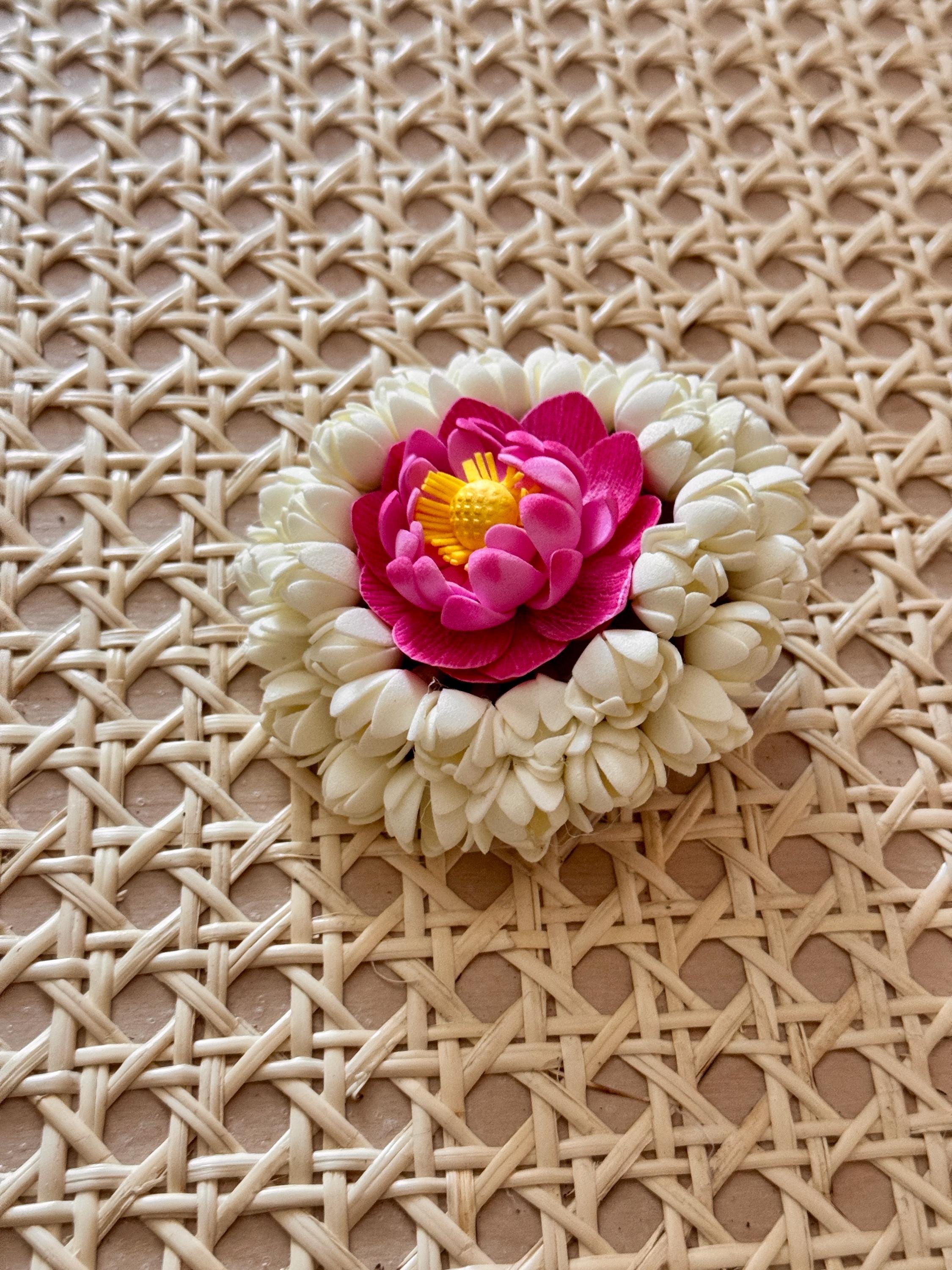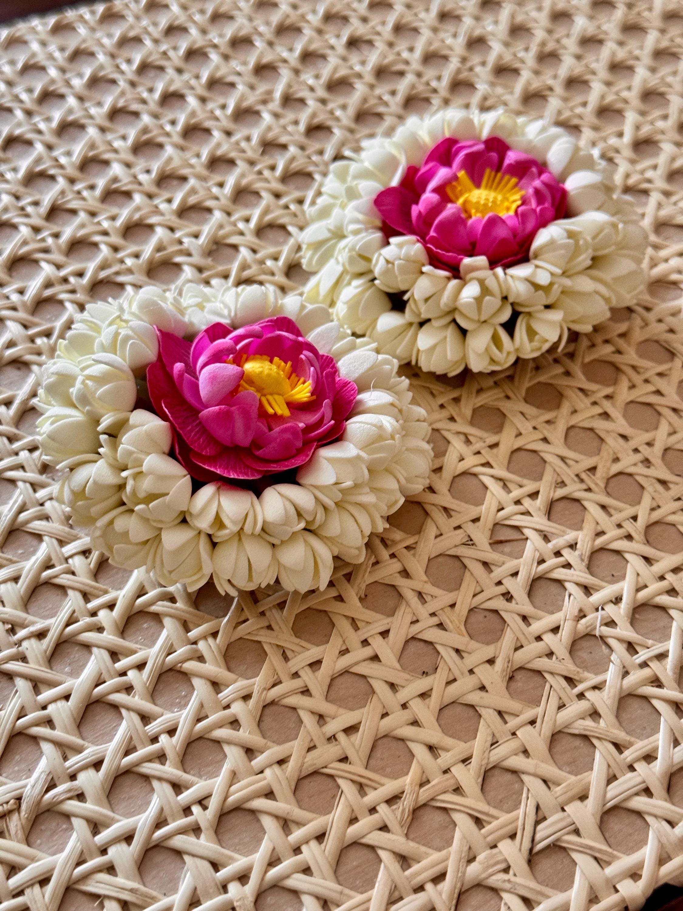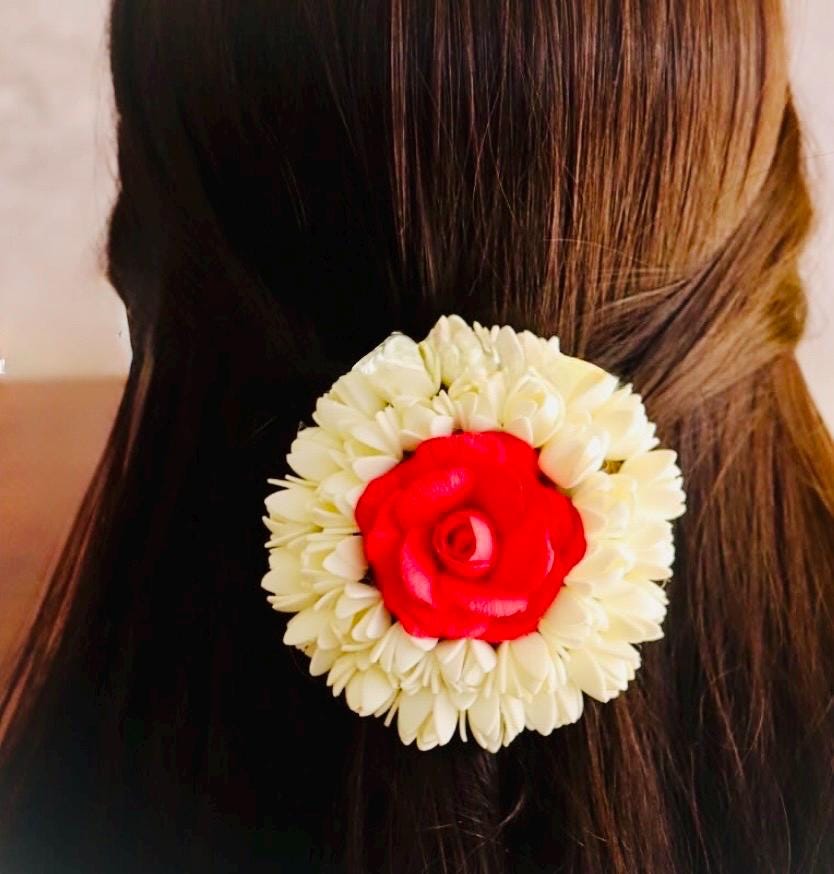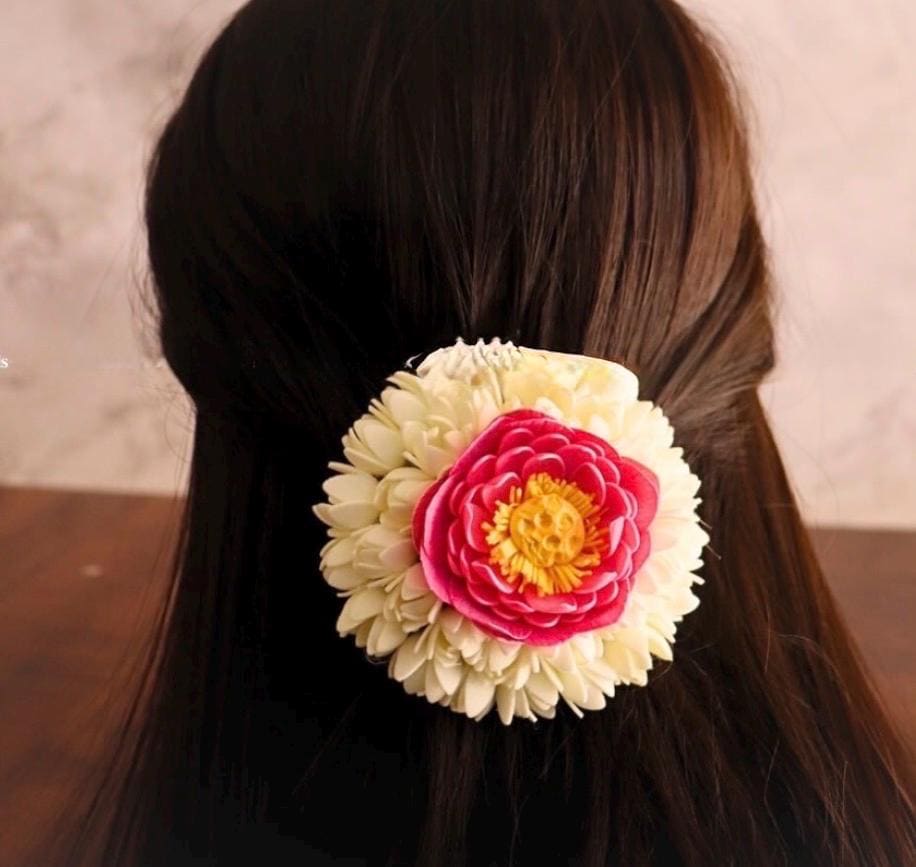 Elegant hair accessory- jasmine and lotus or rose flowers combo. Can be used in hair buns, braids and much more. Perfect for daily use.
