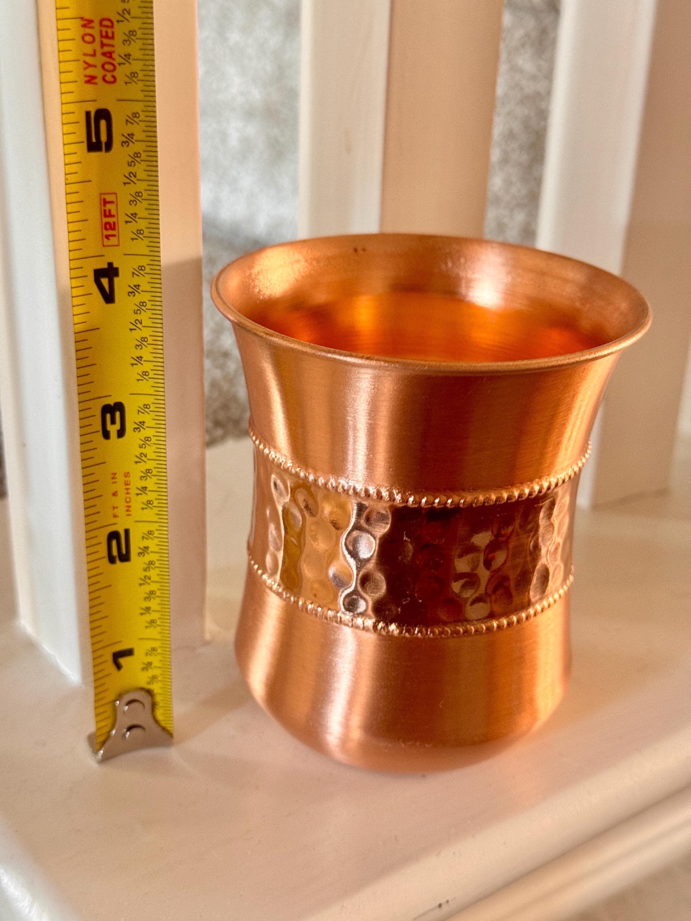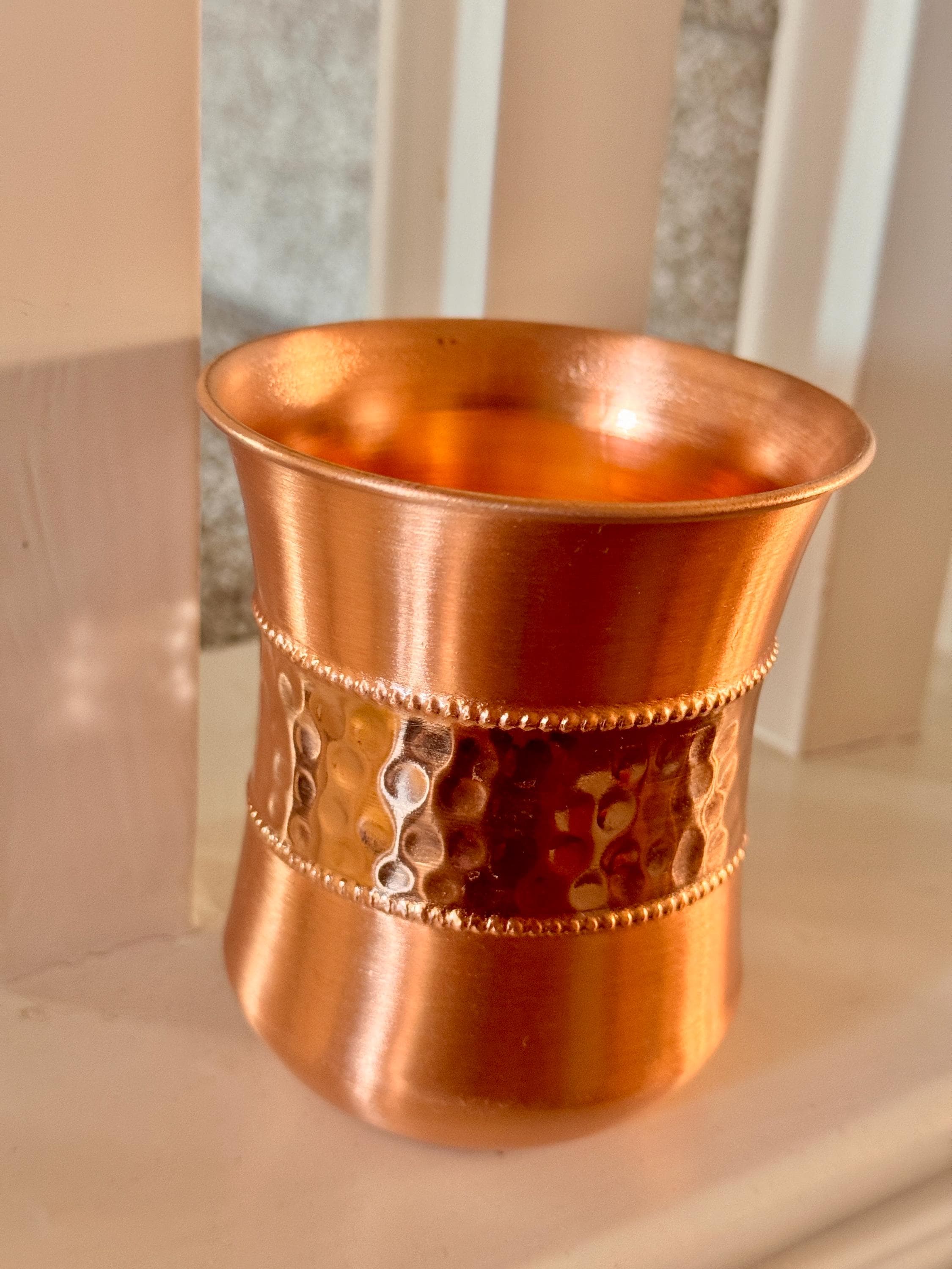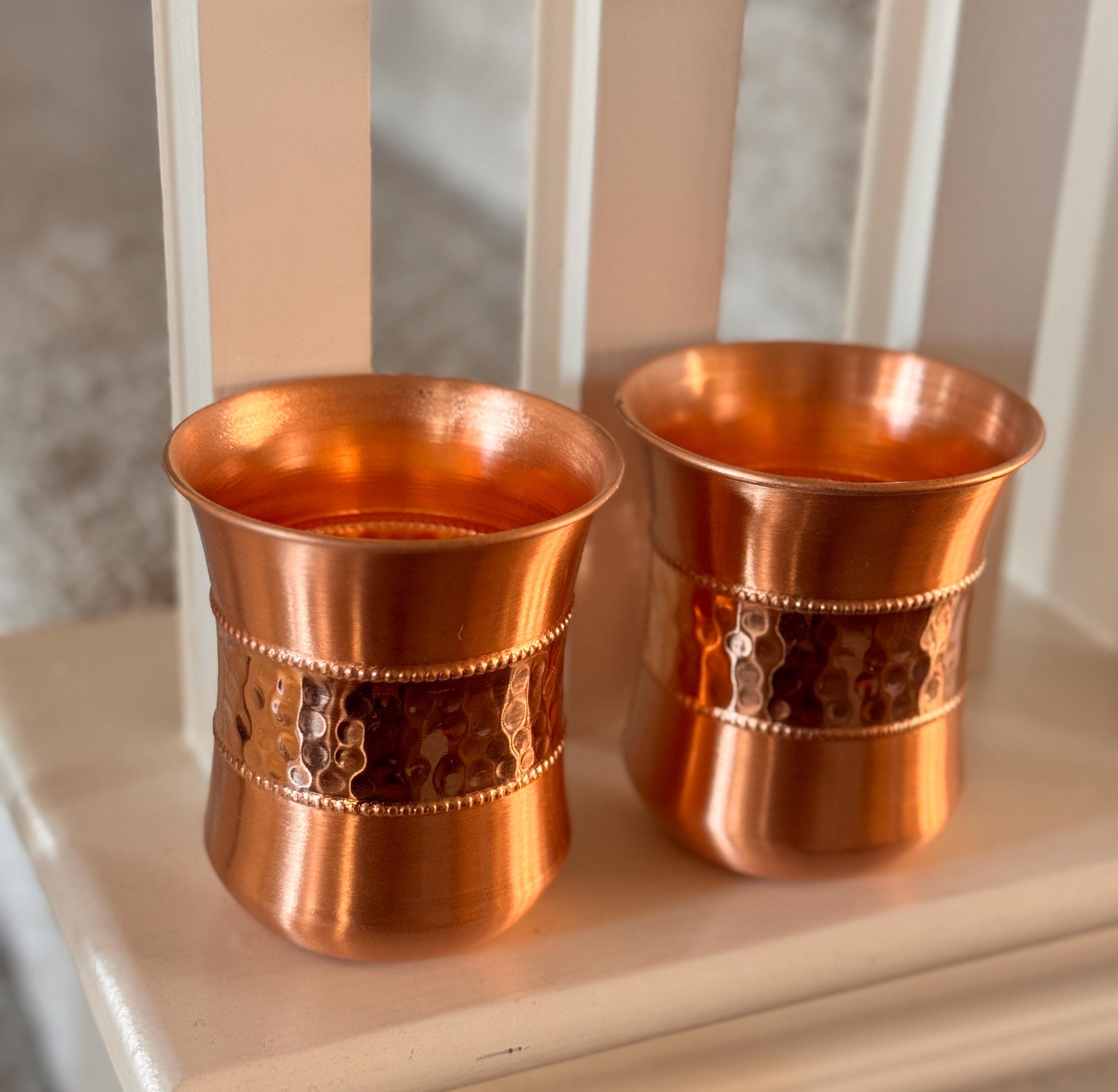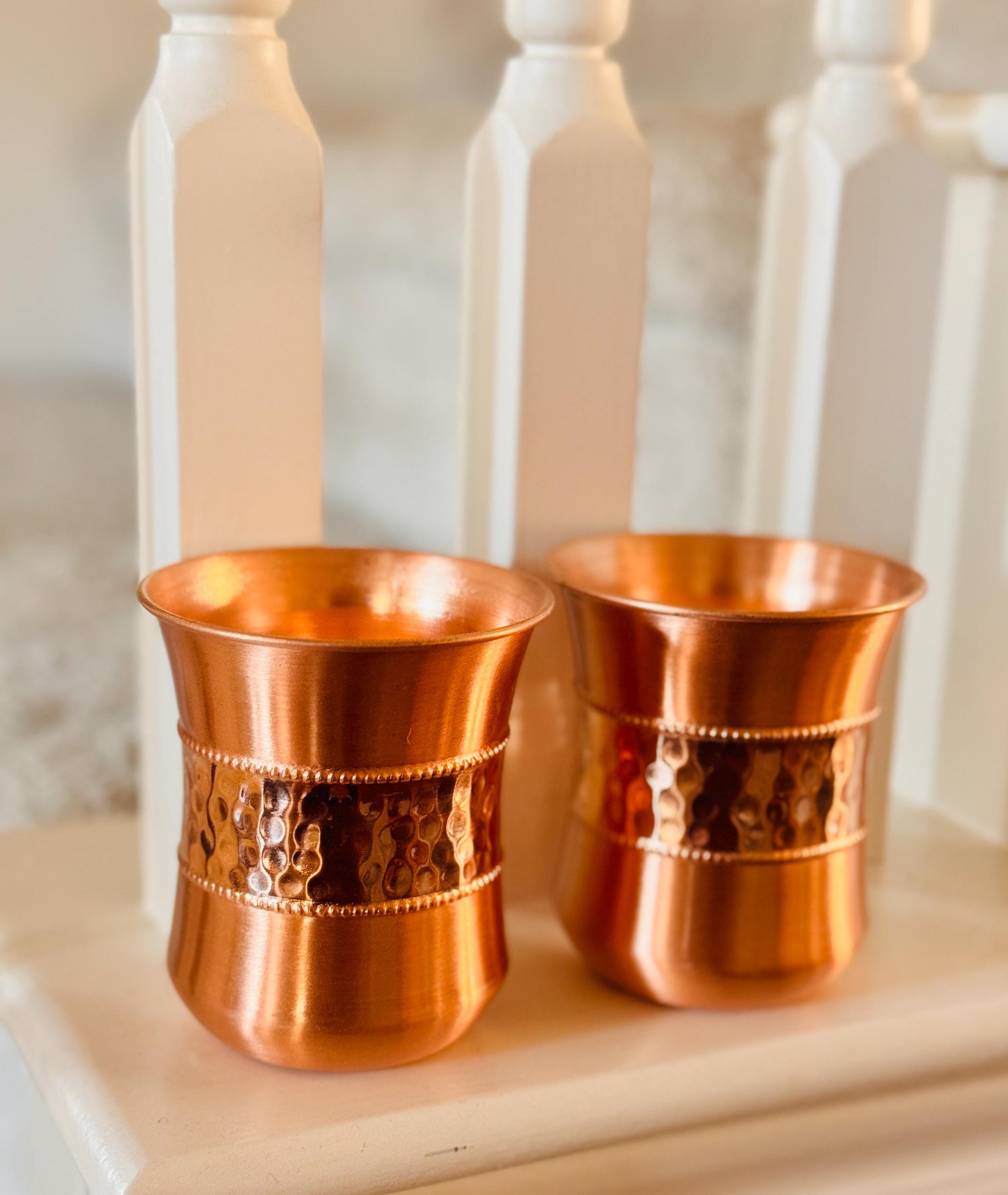 Hand‑hammered with a soft, organic texture, the copper cups bring a little everyday luxury to your routine. No coatings, no plating—just genuine, well‑made copper shaped and textured by skilled hands.