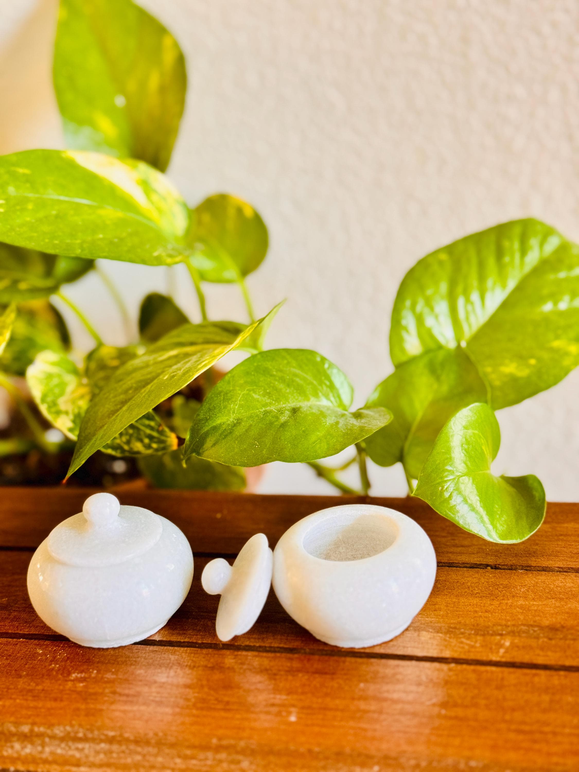 White Marble small Trinket Box/Kumkum holder (3in)